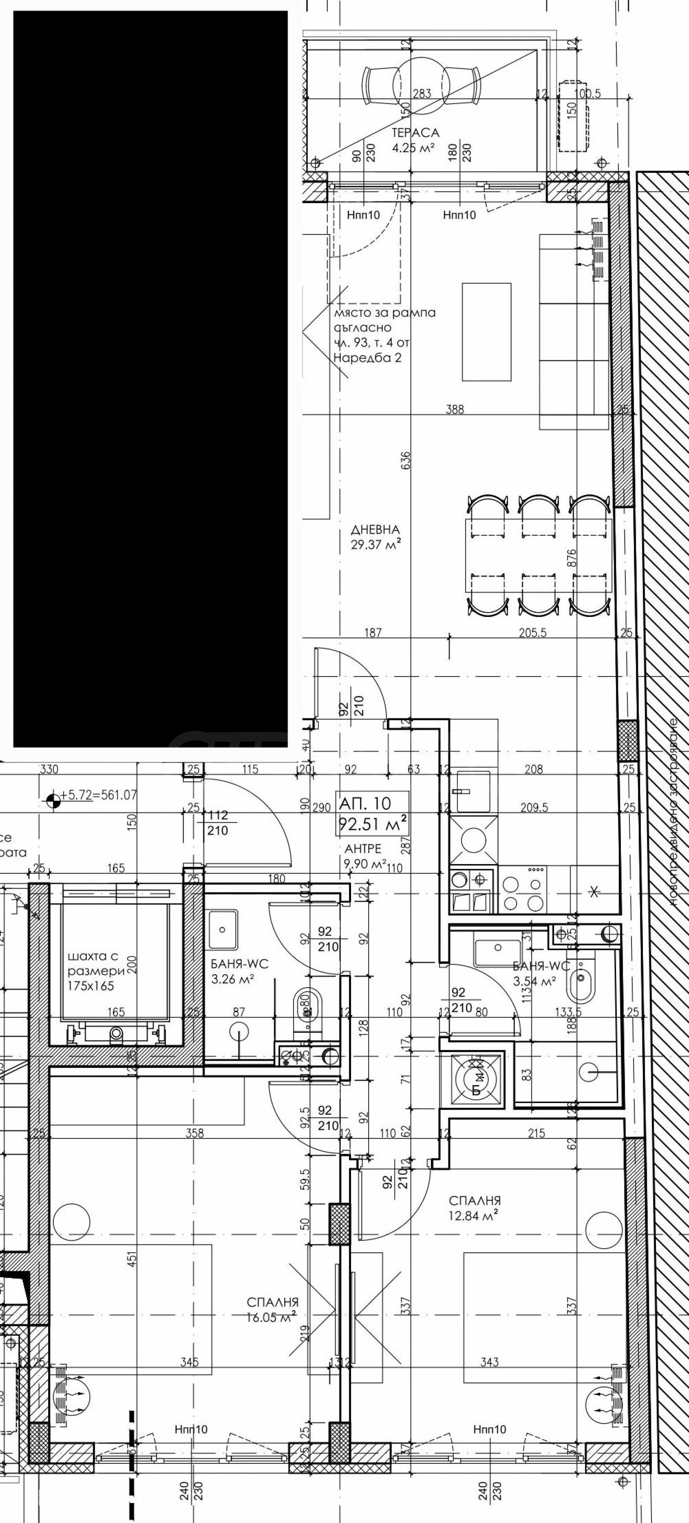 The apartment is offered for sale with high-quality finishing according to Bulgarian Standards, with plaster and screed.