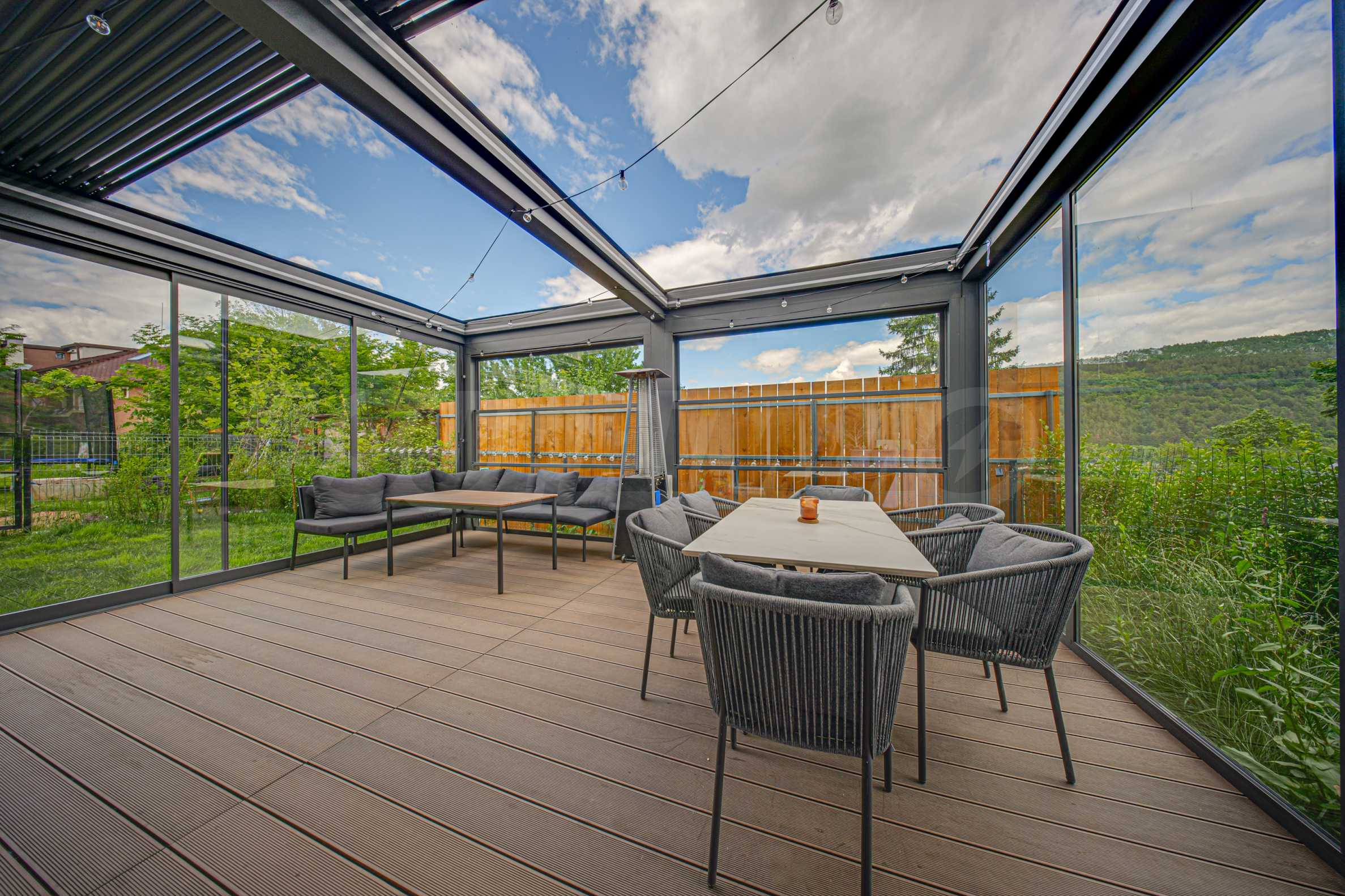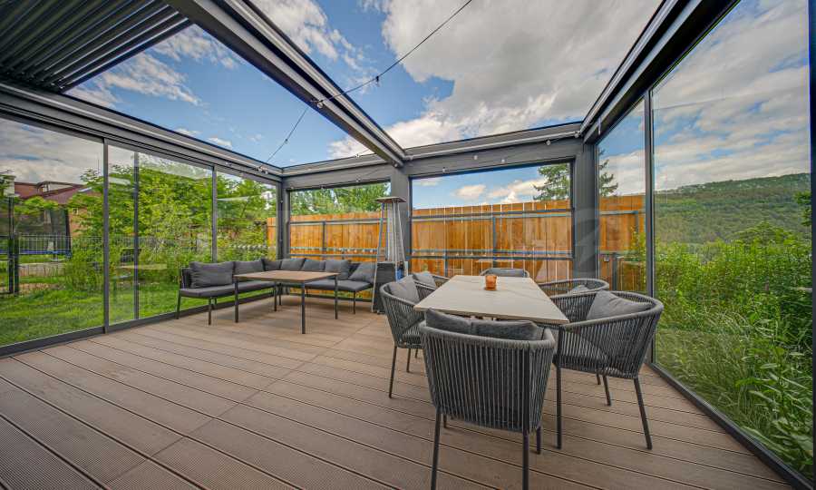 The property has a private landscaped yard with an area of 130 sq m, a bio-climatic pergola with an opening roof and a 30 sq m decking terrace, a luxurious outdoor area for all seasons.