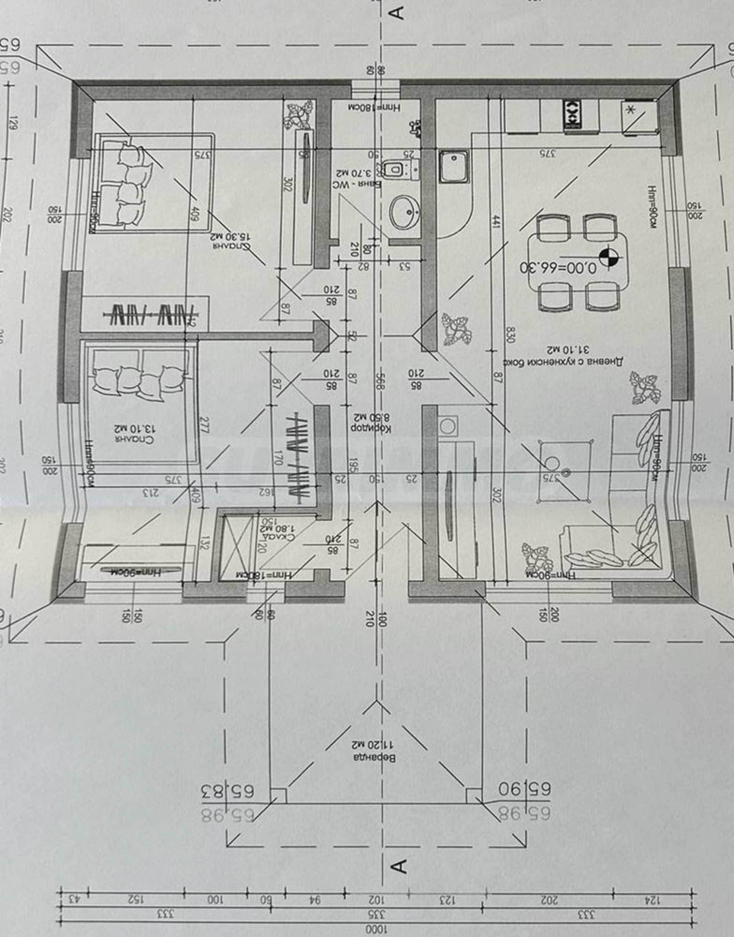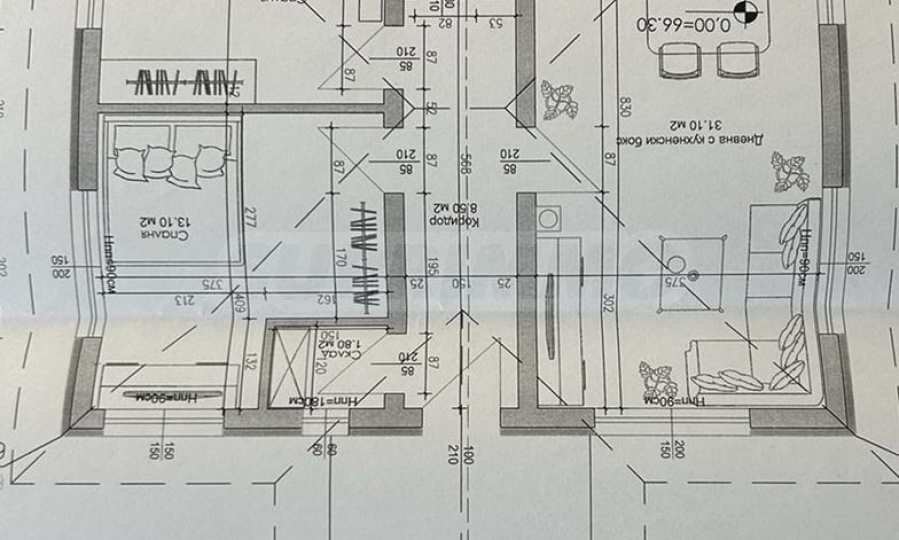 The property is offered under Bulgarian Civil Code, with plaster and screed.