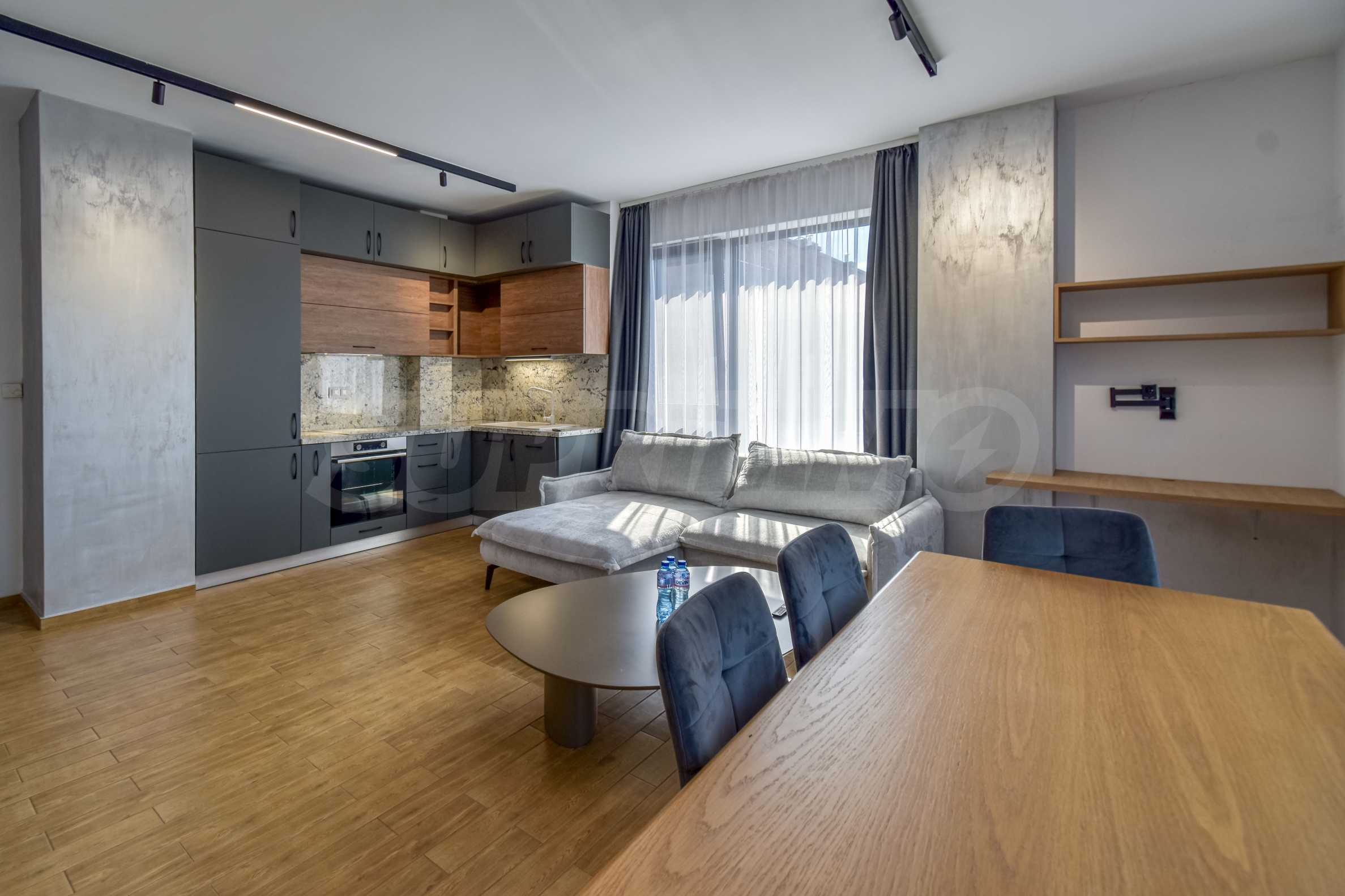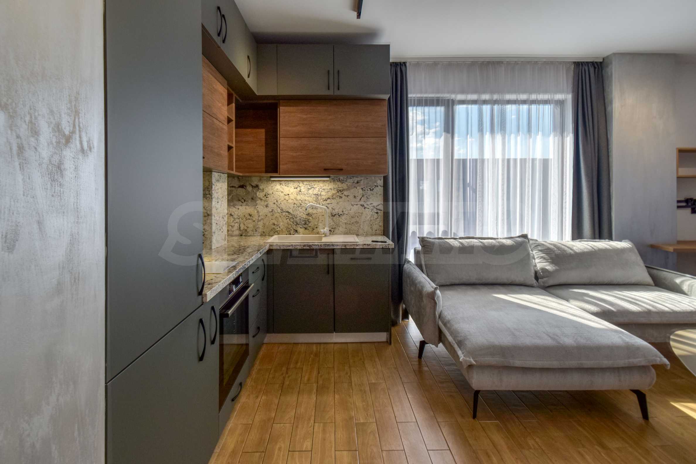 The apartment is being rented fully furnished. The interior is in warm, earthy colors, the rooms have French windows, are spacious and bright, providing complete comfort.