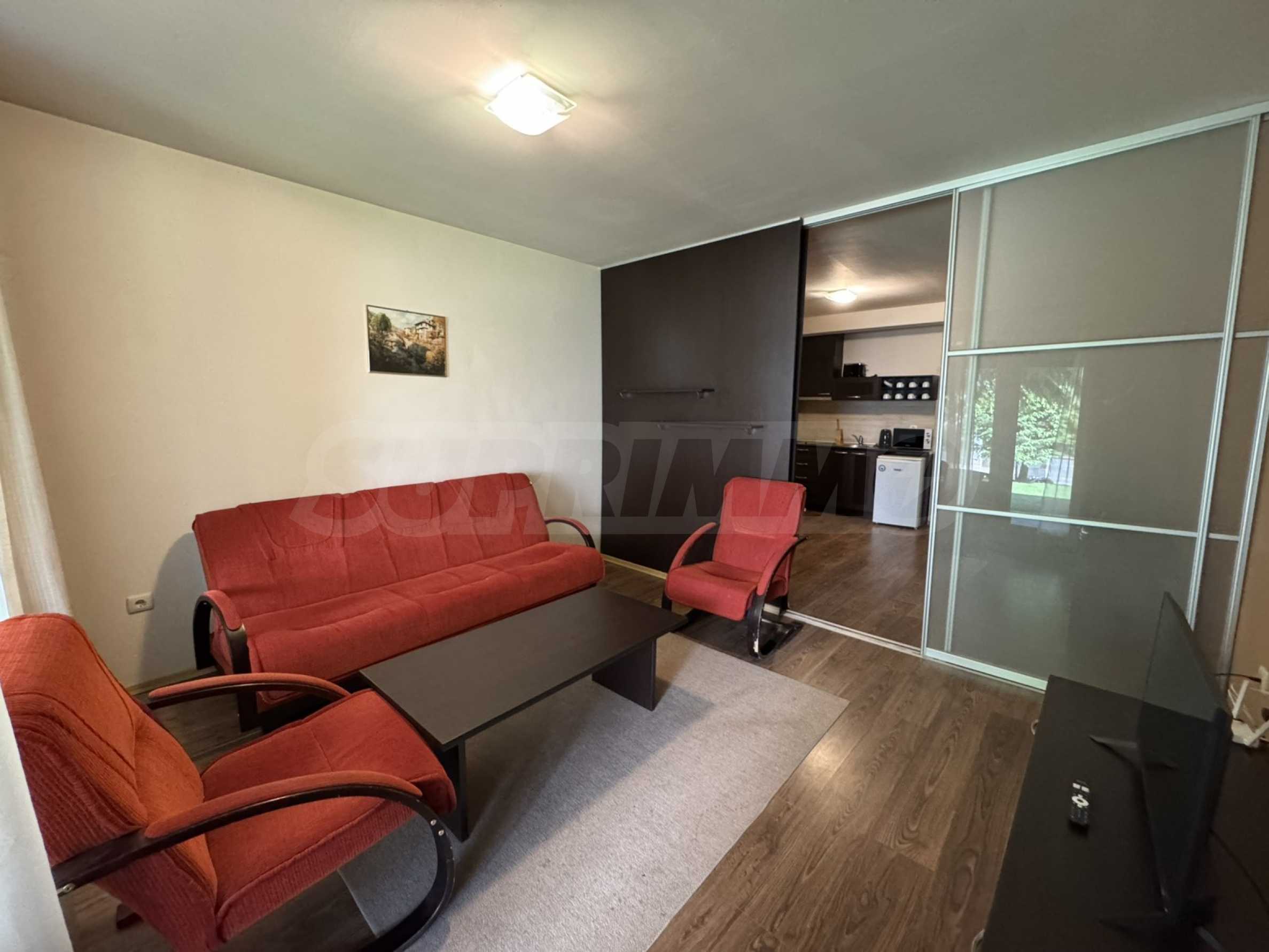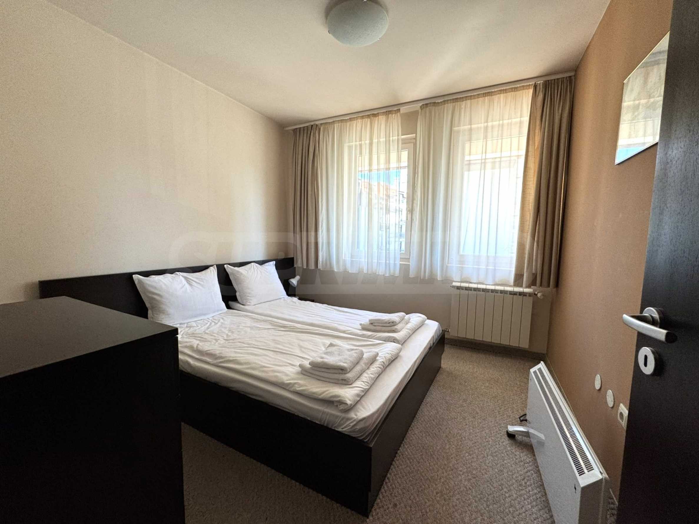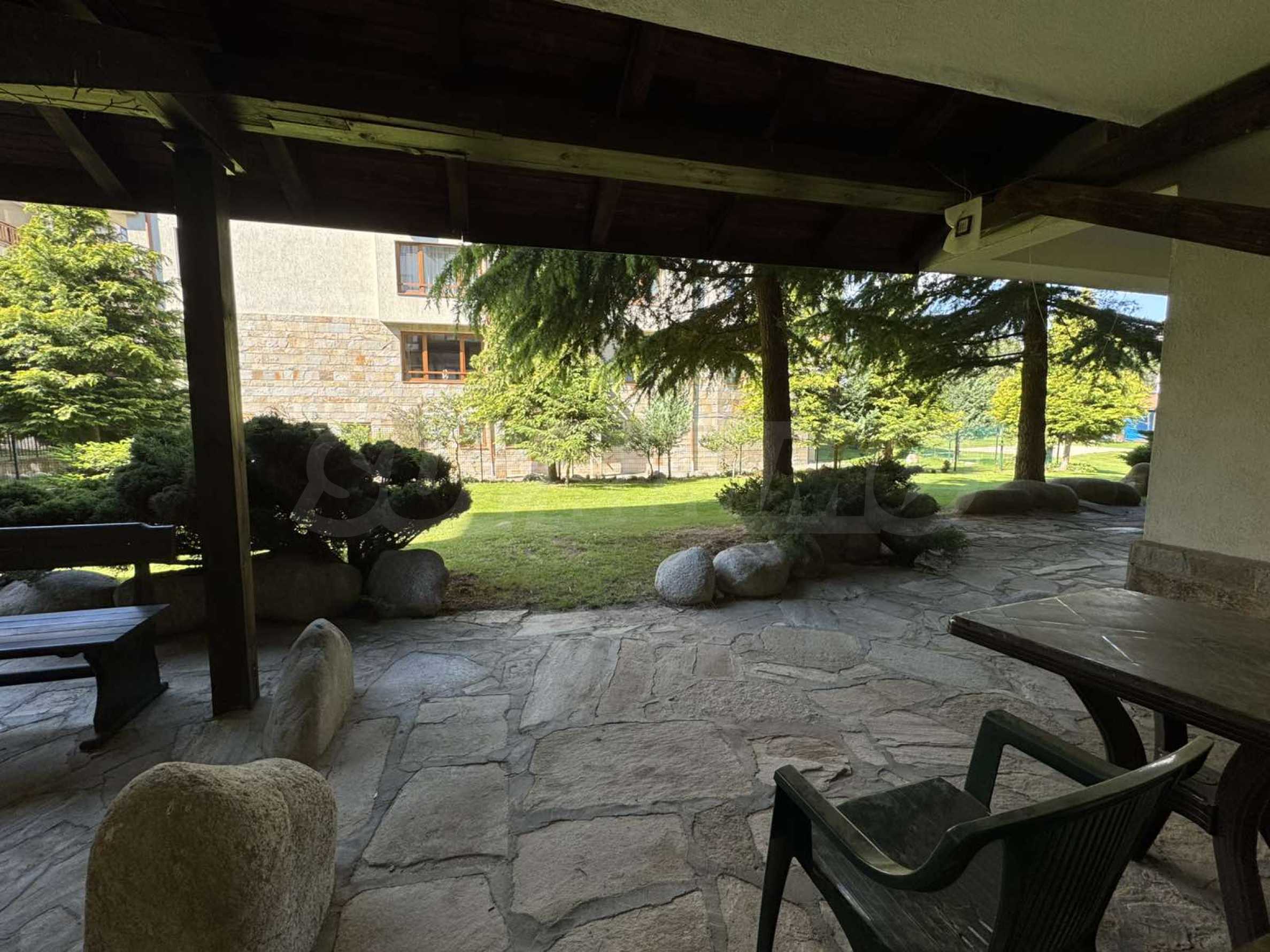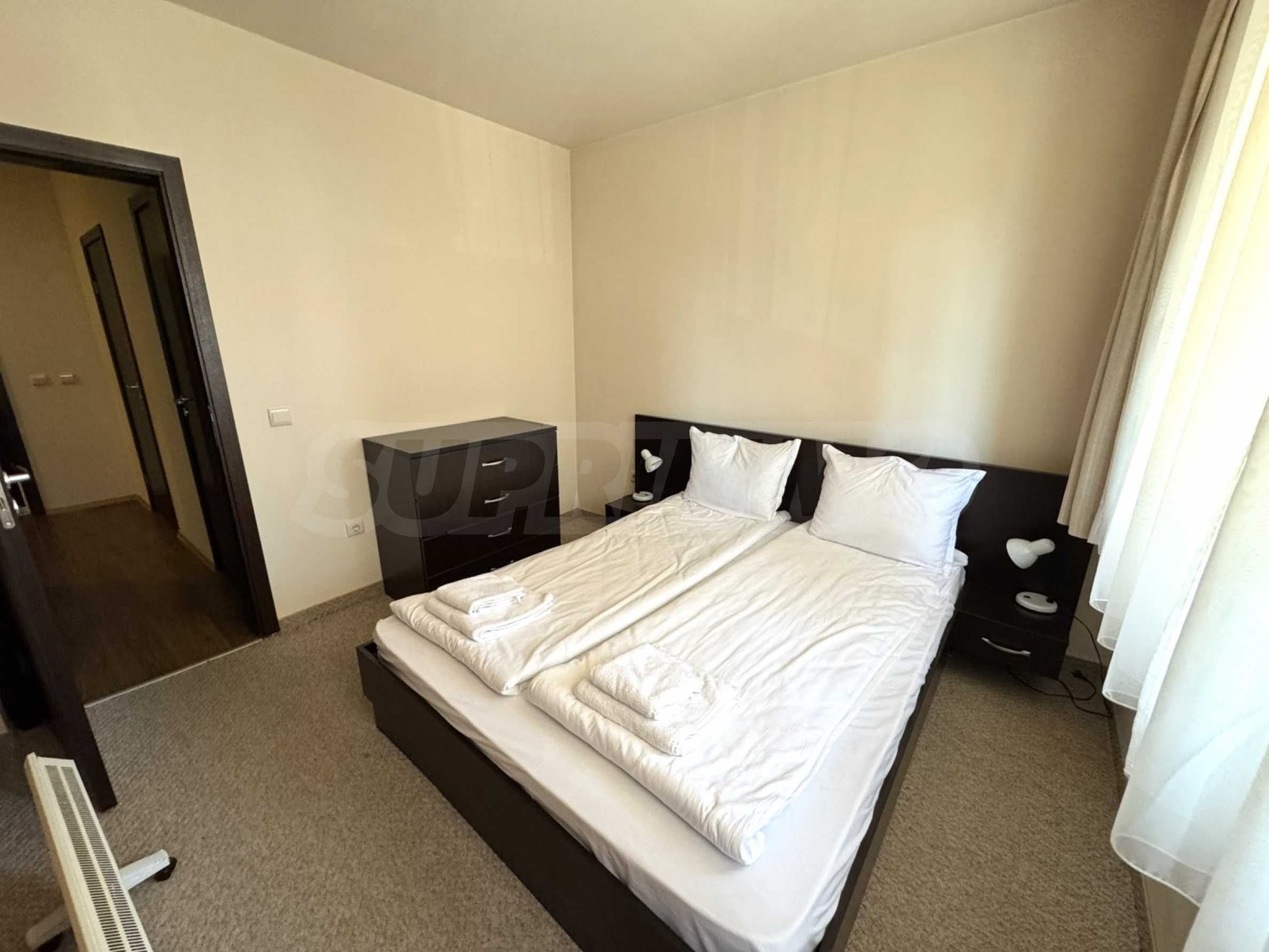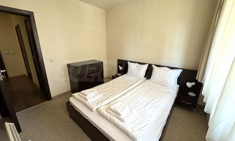 A wonderful offer from the real estate market - sale of a completely south-facing one-bedroom apartment with magnificent views of the Pirin Mountain and the slopes in the gated complex Bansko Royal Towers with a 5,000 m2 meadow with a children's playground and an outdoor pool, 100 meters from the gondola lift.