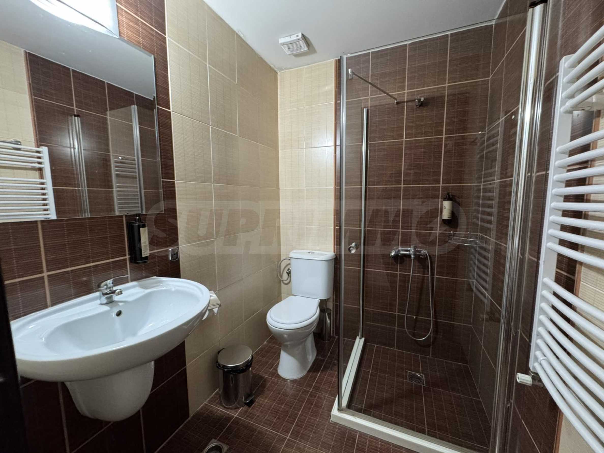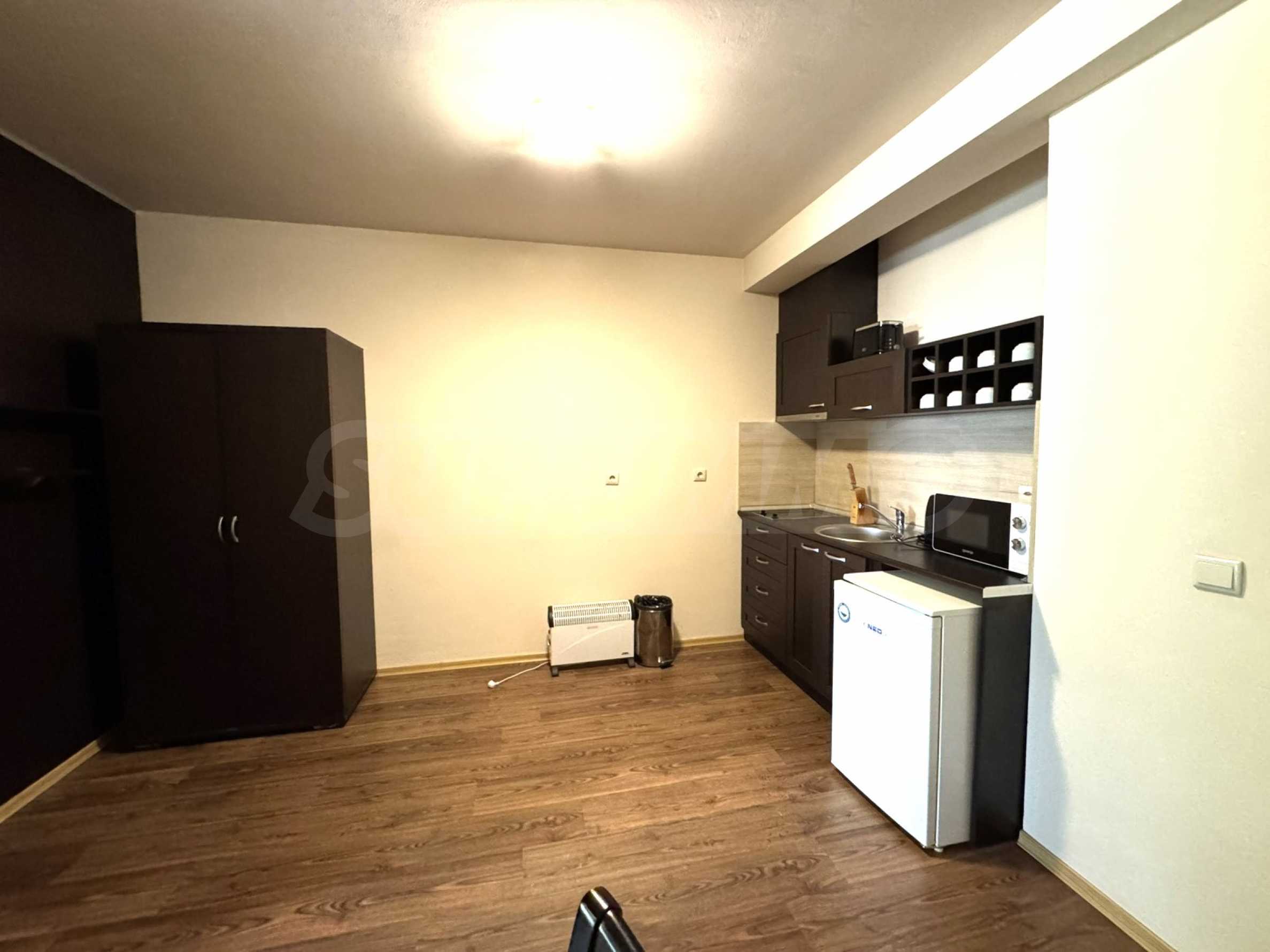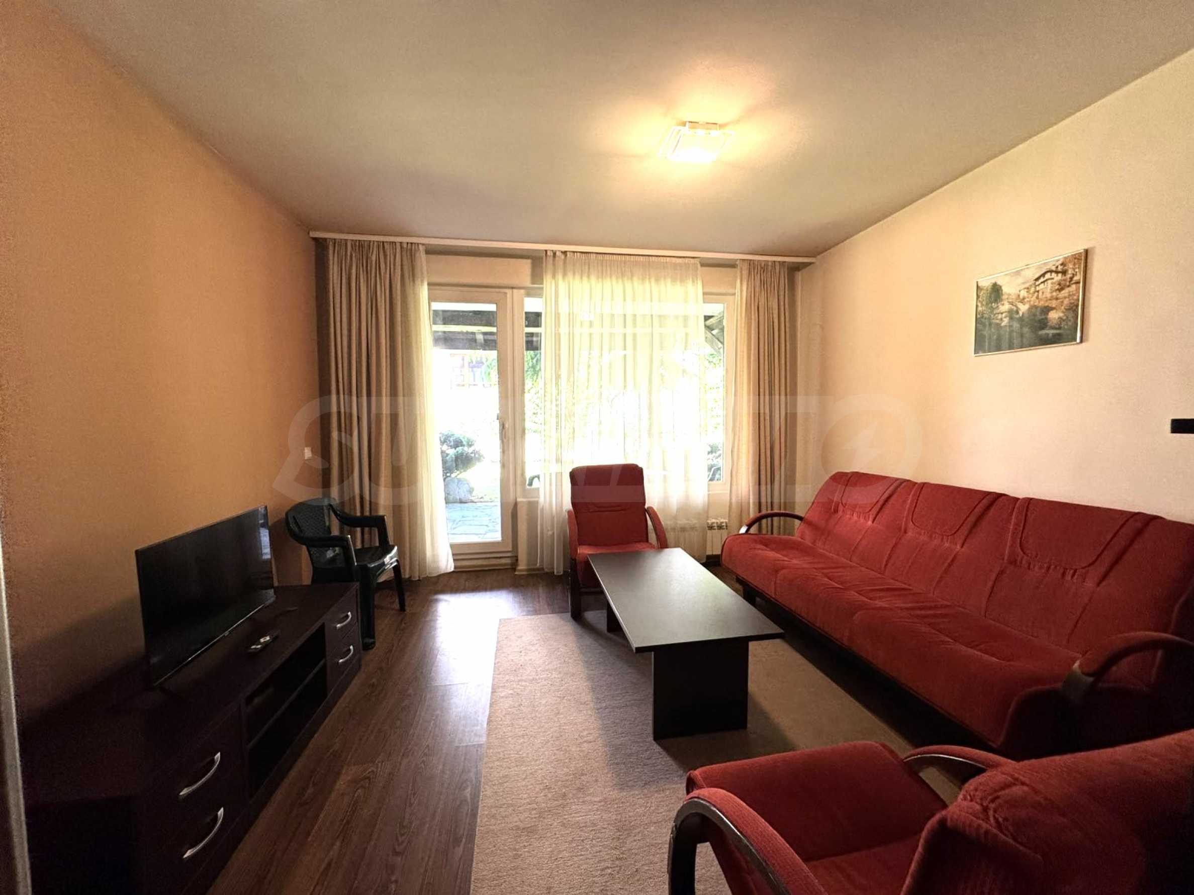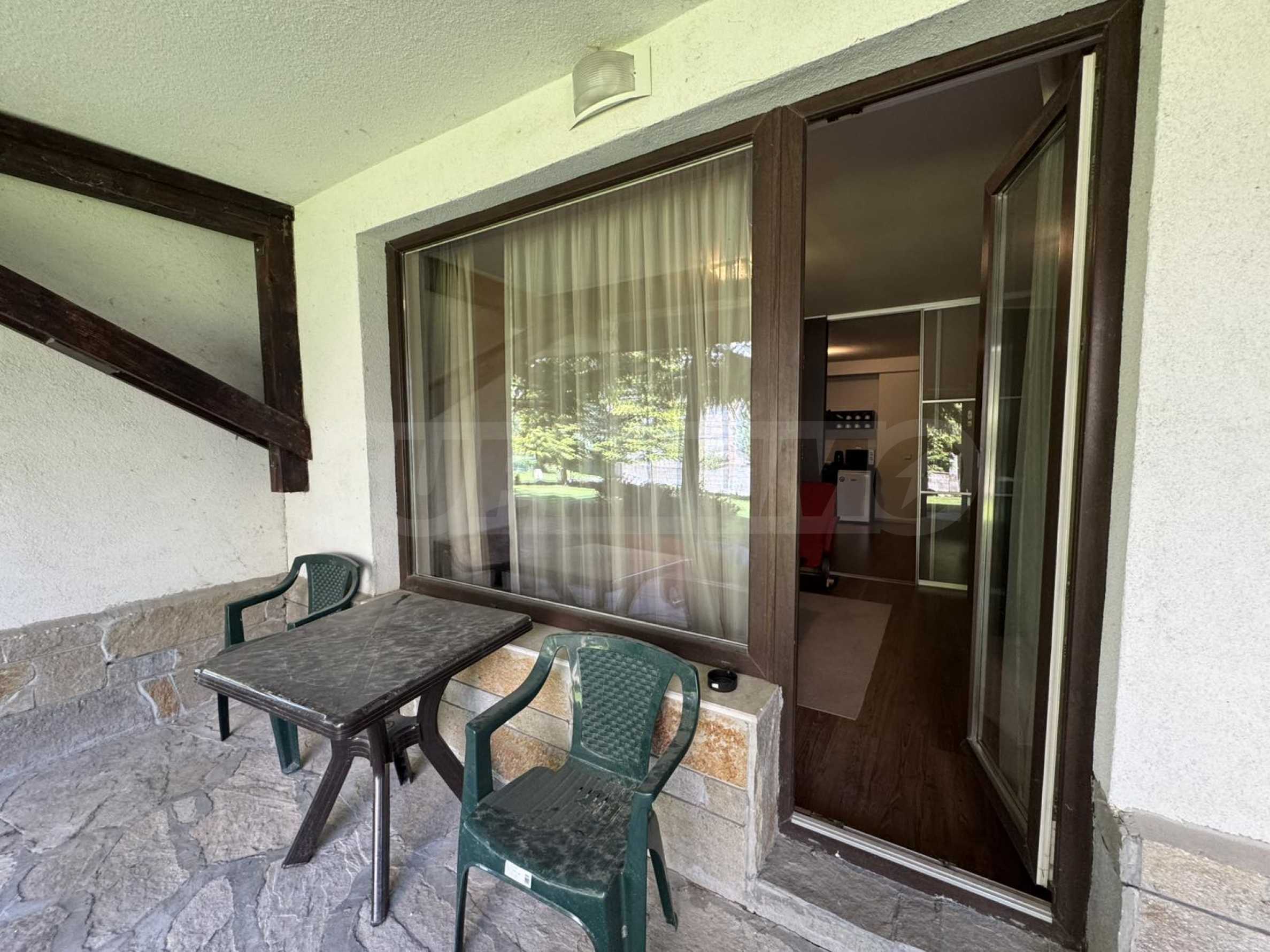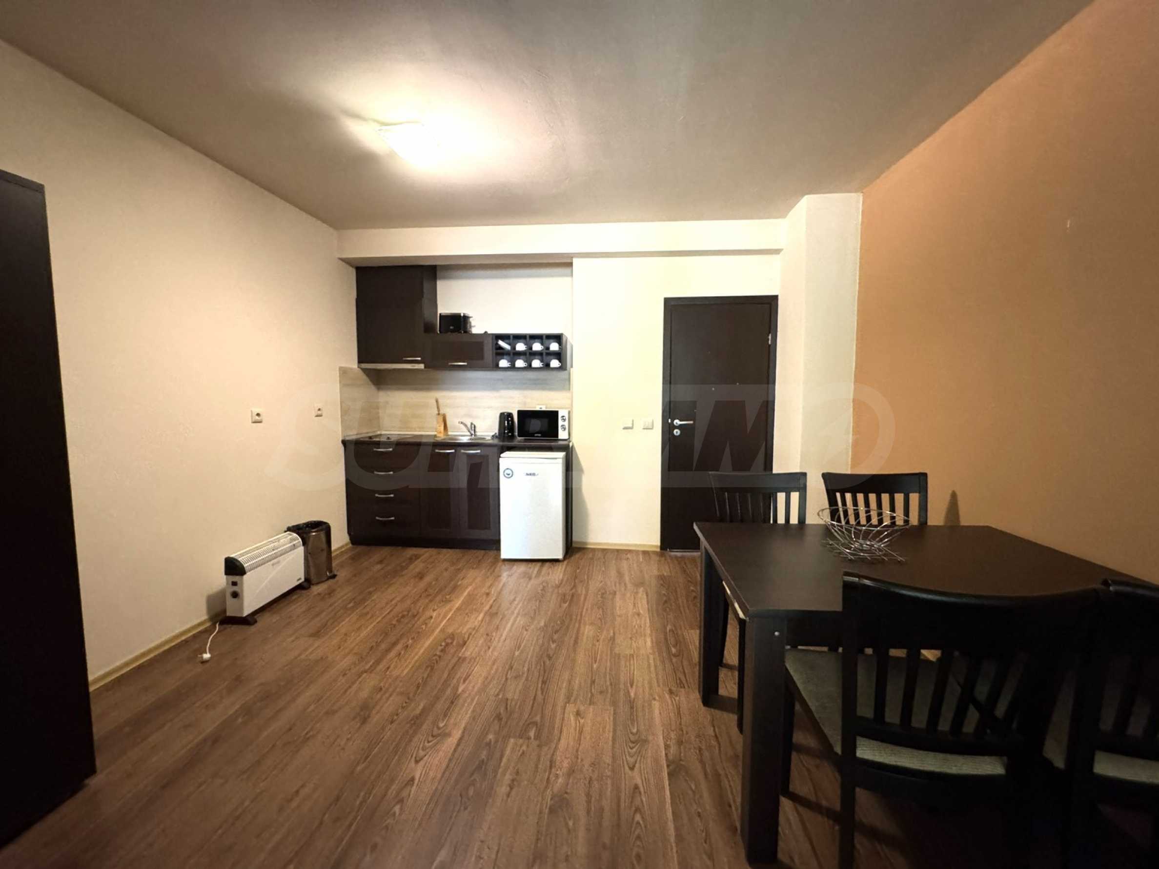 A wonderful offer from the real estate market - sale of a completely south-facing one-bedroom apartment with magnificent views of the Pirin Mountain and the slopes in the gated complex Bansko Royal Towers with a 5,000 m2 meadow with a children's playground and an outdoor pool, 100 meters from the gondola lift.
