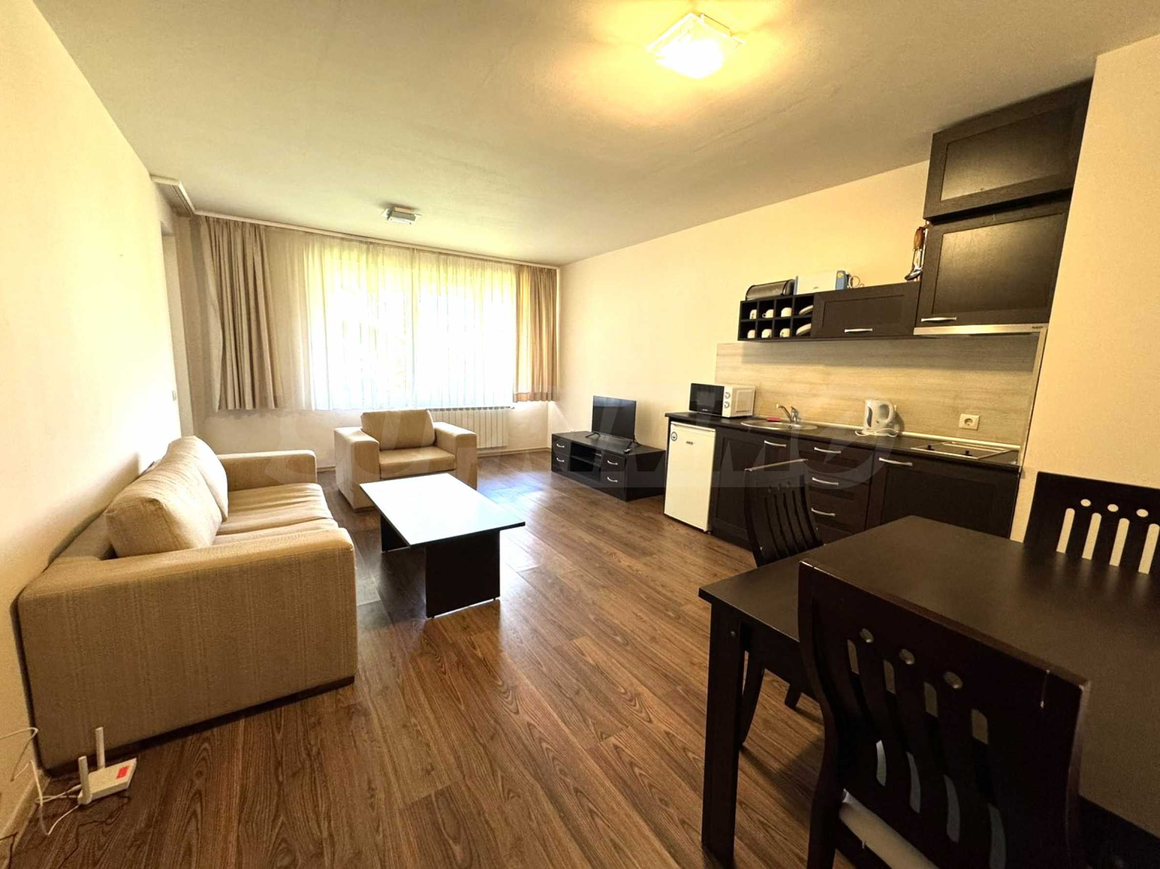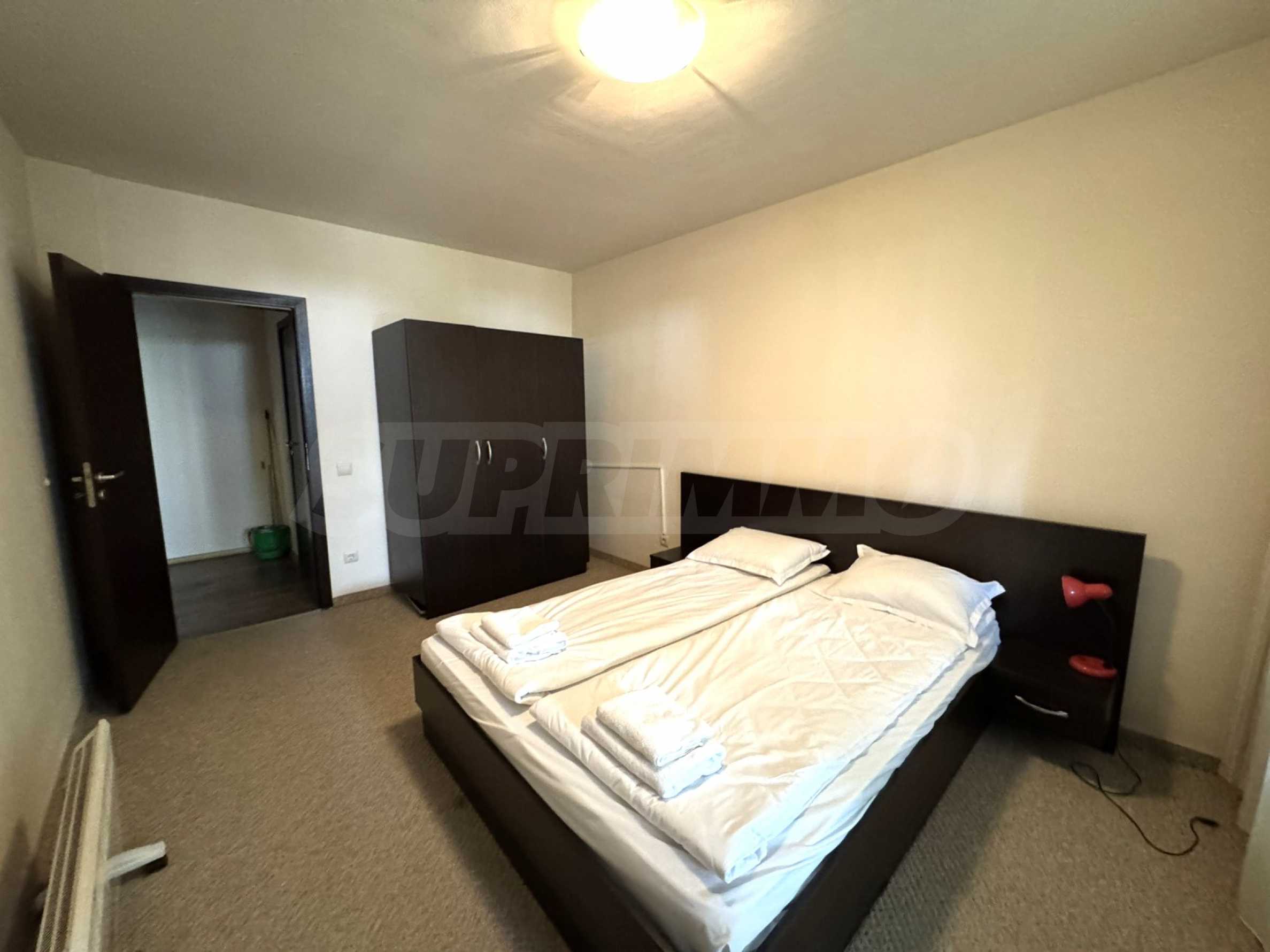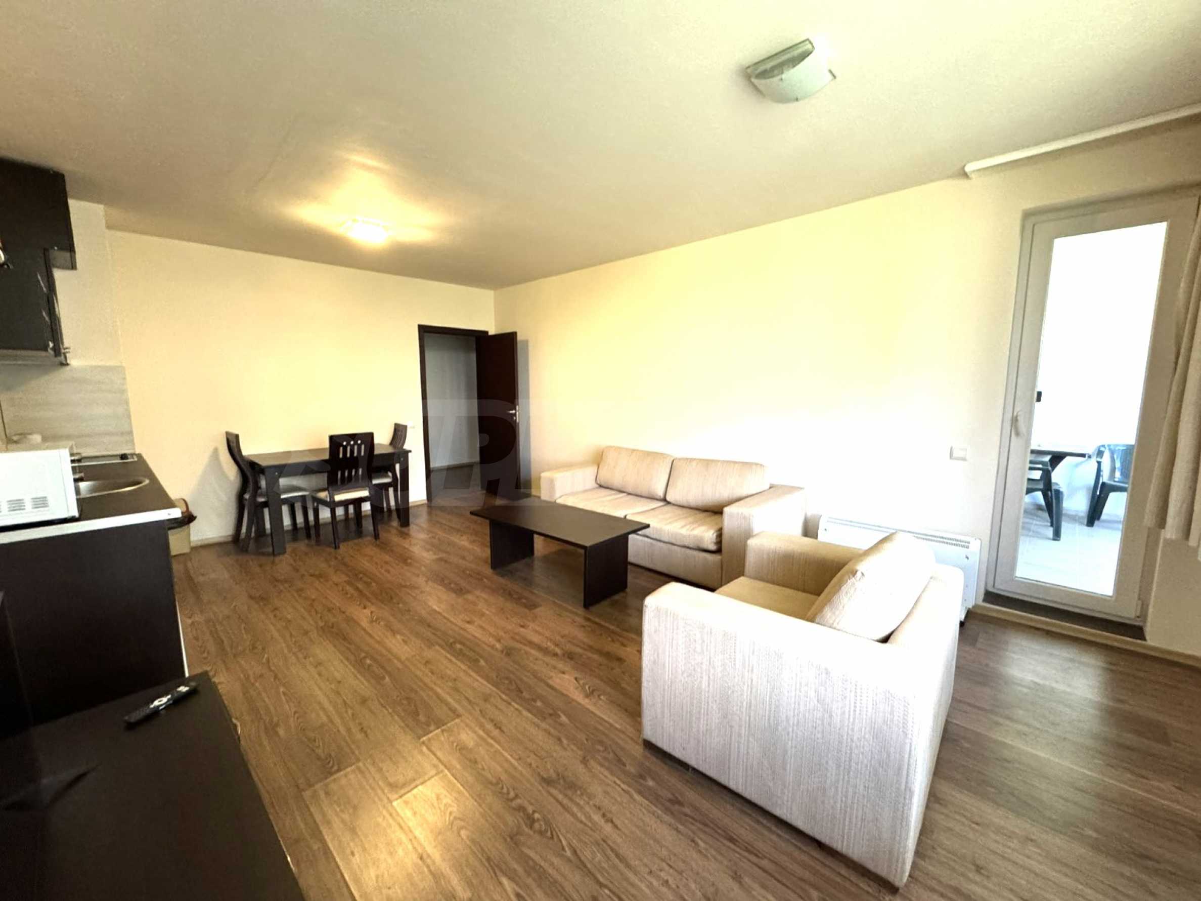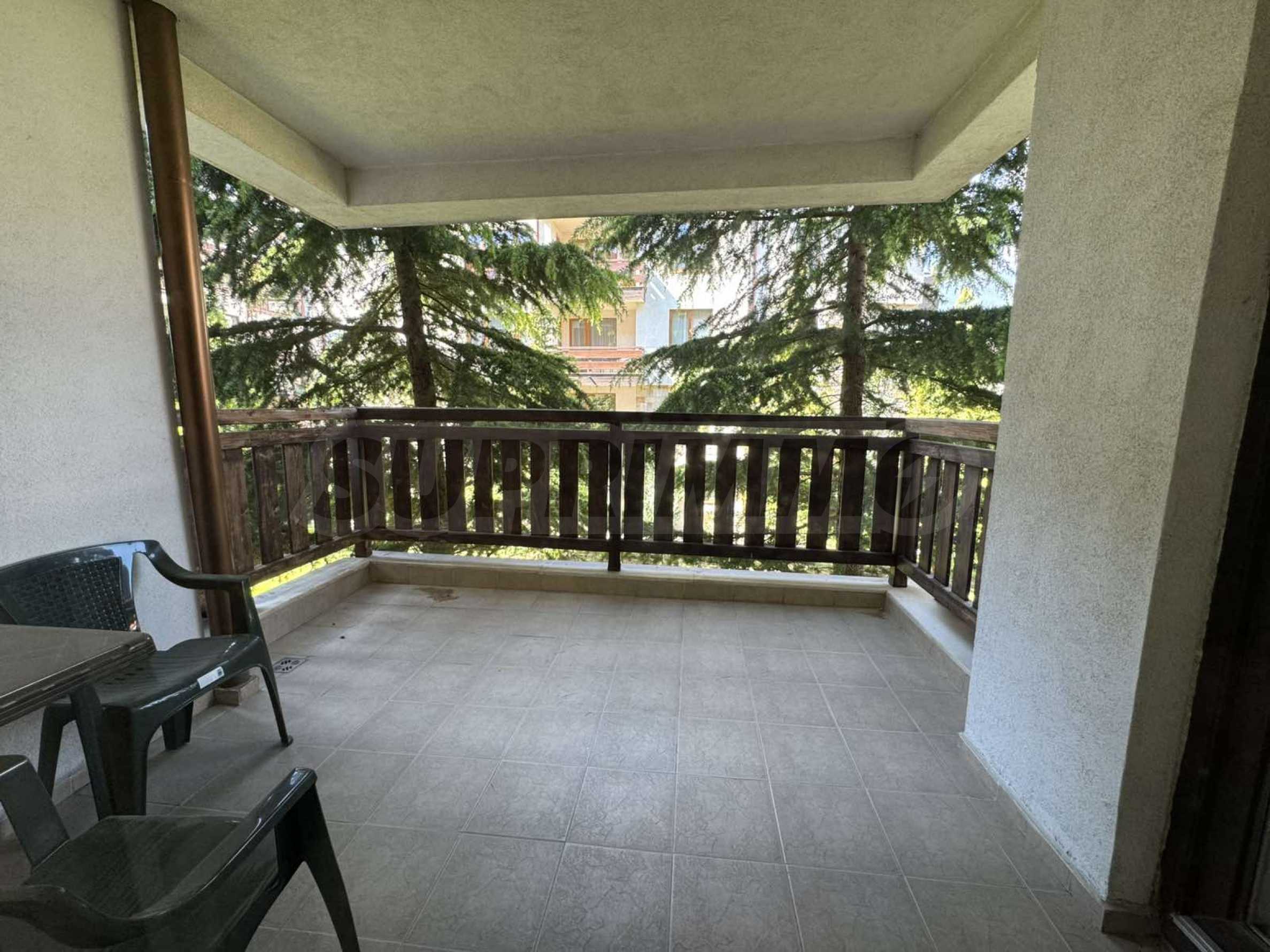 A wonderful offer from the real estate market - sale of a completely south-facing one-bedroom apartment with magnificent views of the Pirin Mountain and the slopes in the gated complex Bansko Royal Towers with a 5,000 m2 meadow with a children's playground and an outdoor pool, 100 meters from the gondola lift.