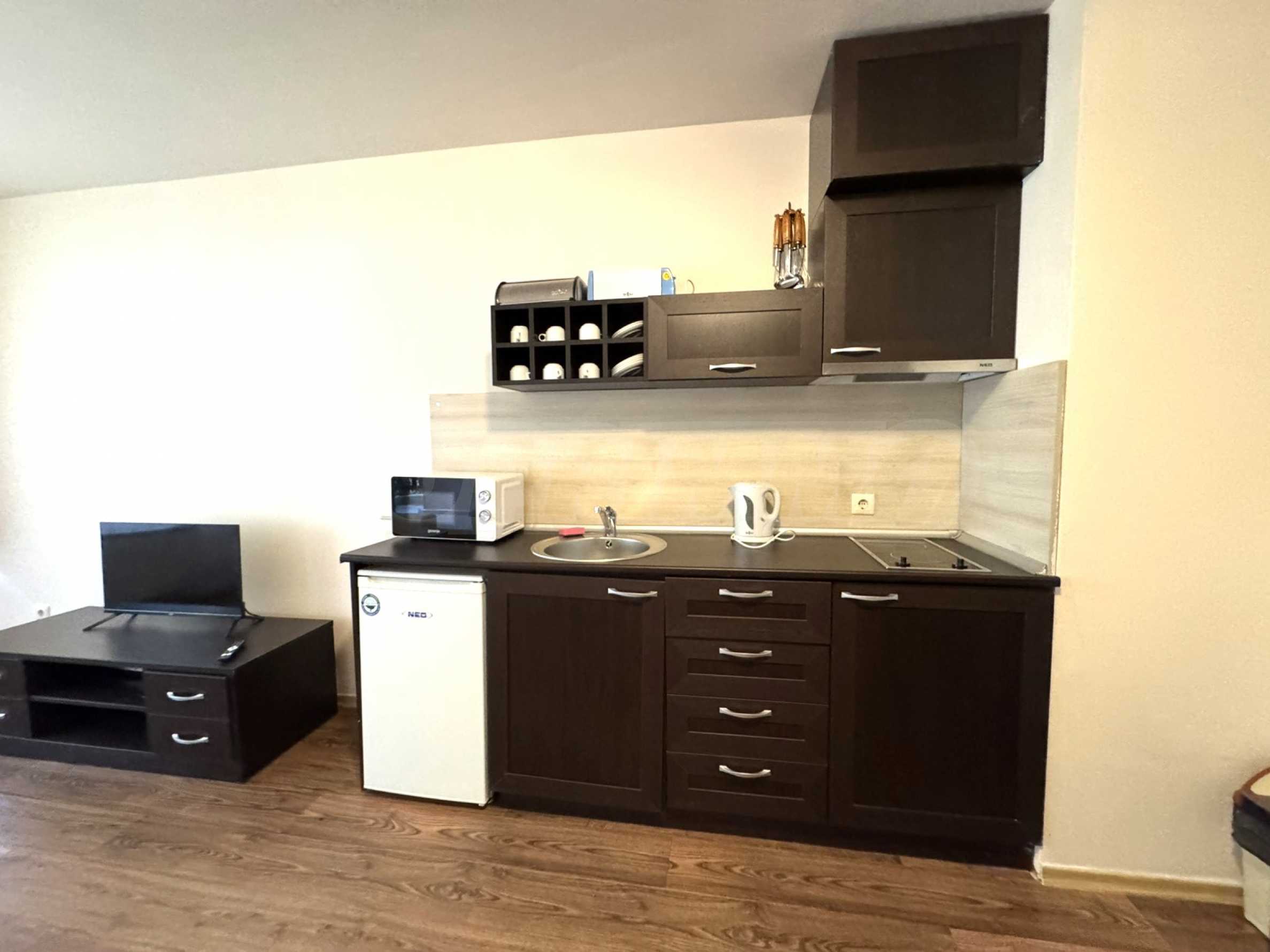 It is located right next to the ski area, restaurants, shops, pharmacies and a short distance from the center of Bansko.