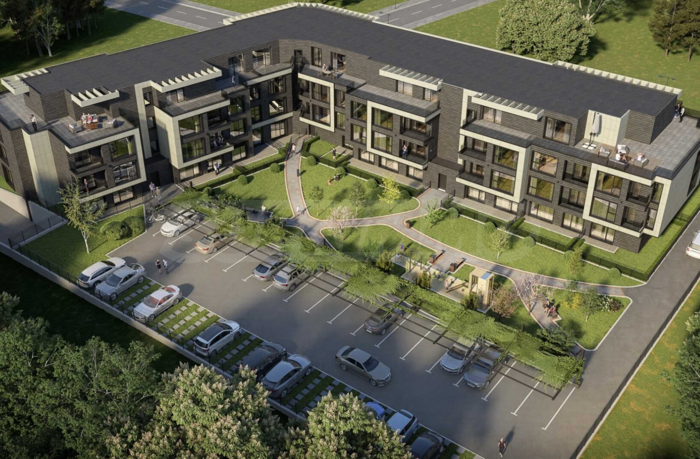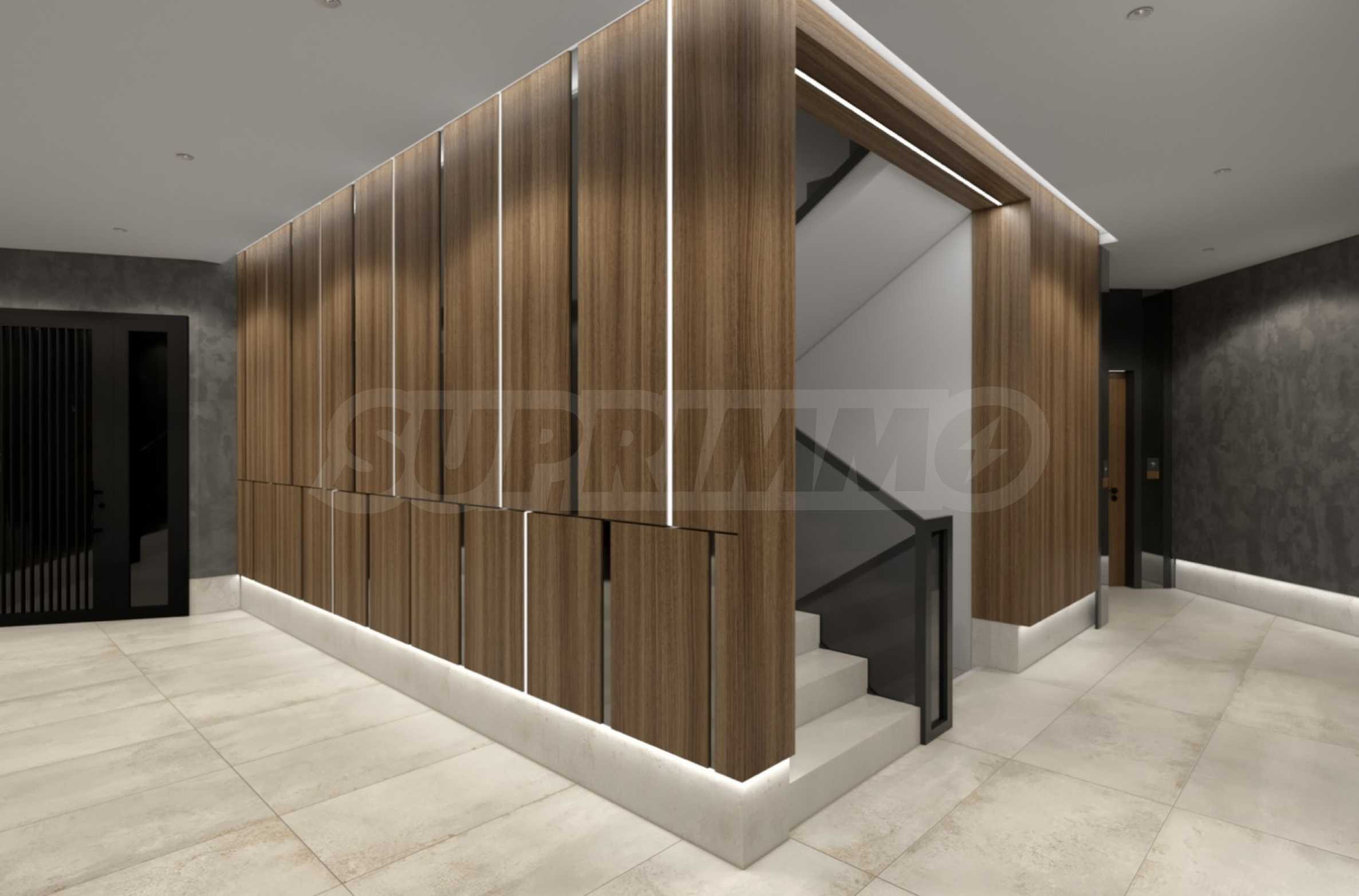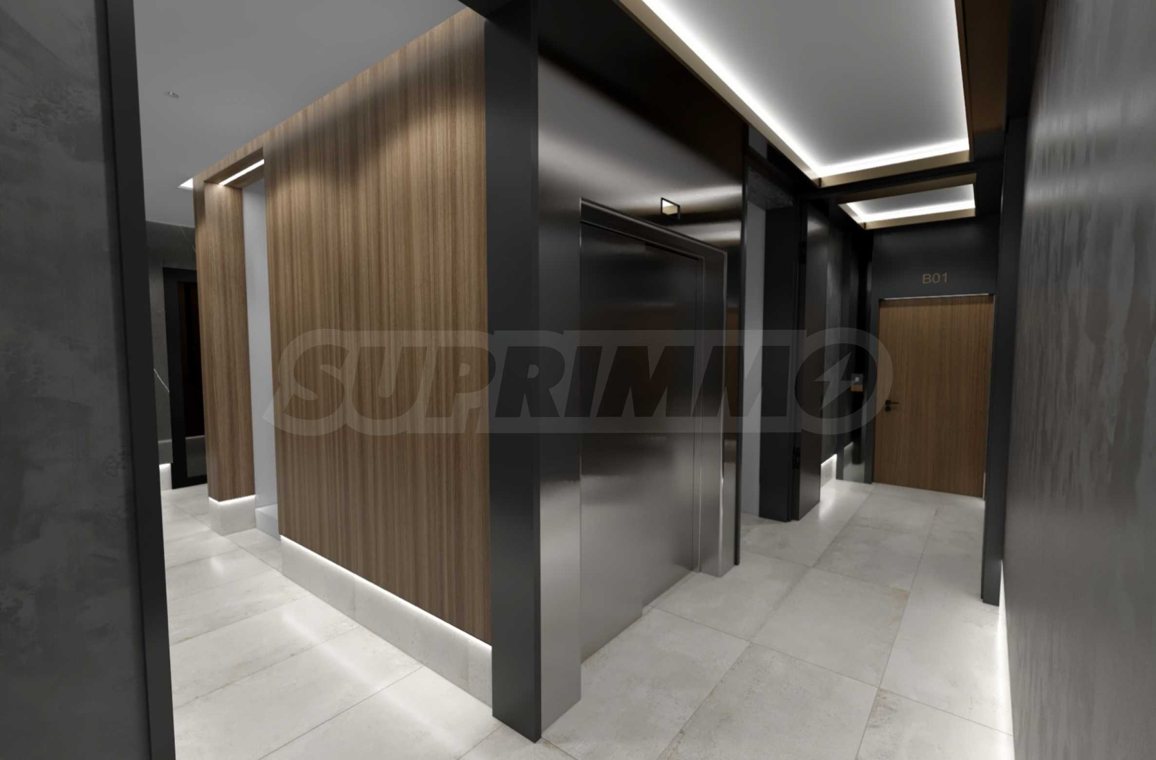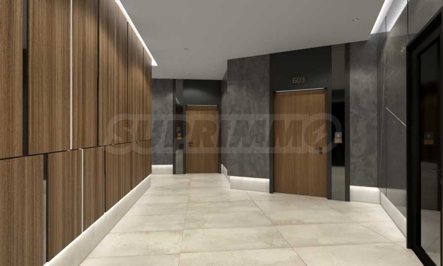 The entrance doors are armored SOLID Smart Doors, manufactured in Bulgaria, with two independent locking systems, automatic locking, fingerprint unlocking and even the ability to control via mobile phone, including a built-in alarm system. For even greater comfort, the entrance doors of the building are equipped with GEZE automation, guaranteeing smooth and silent opening and closing.
