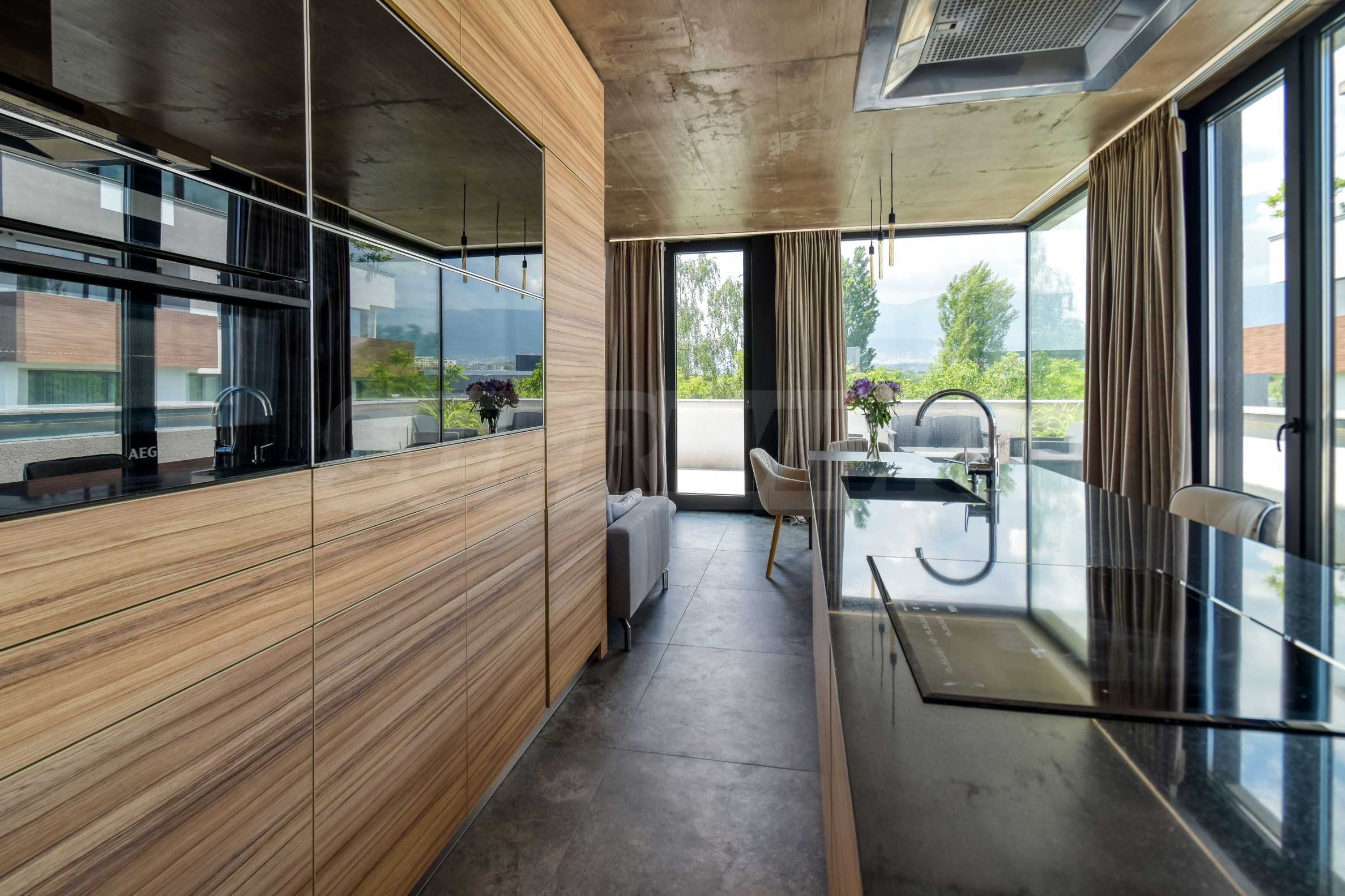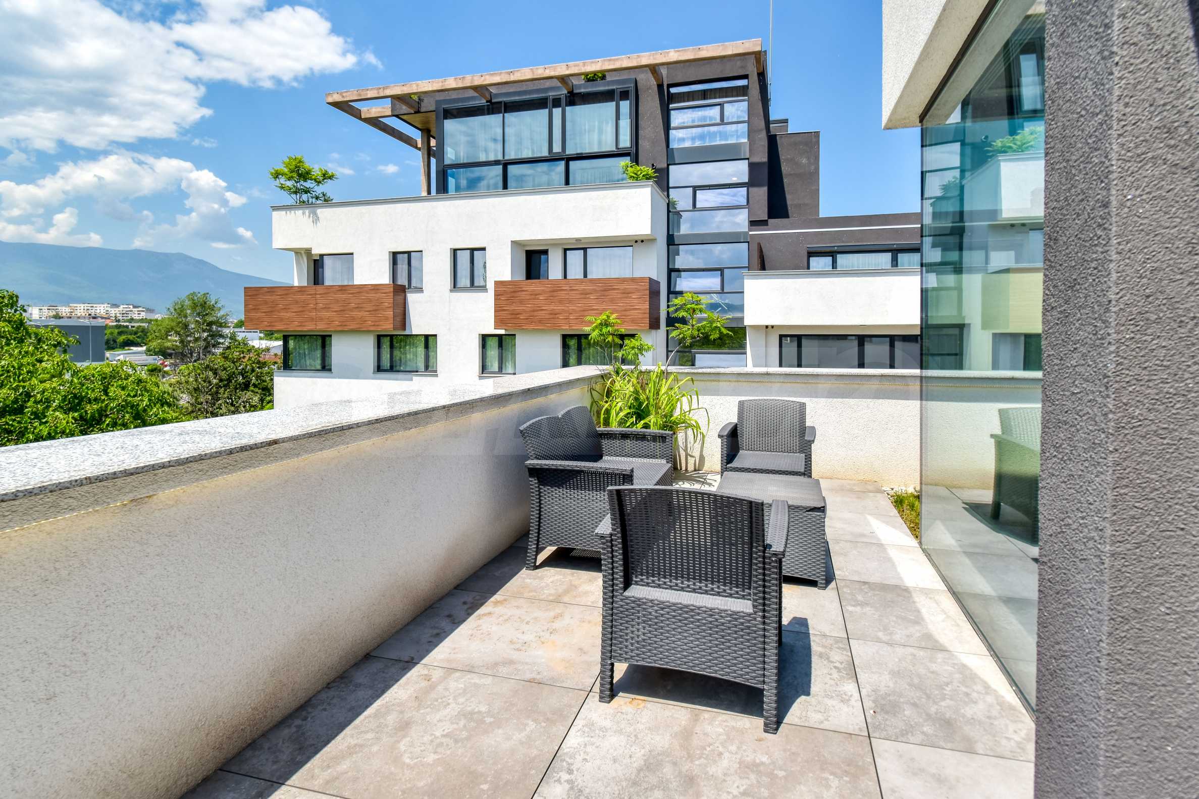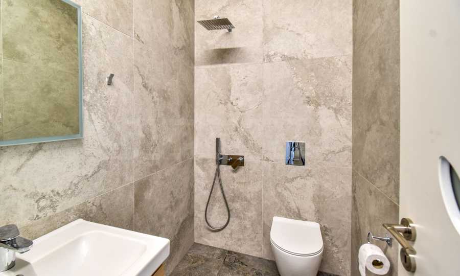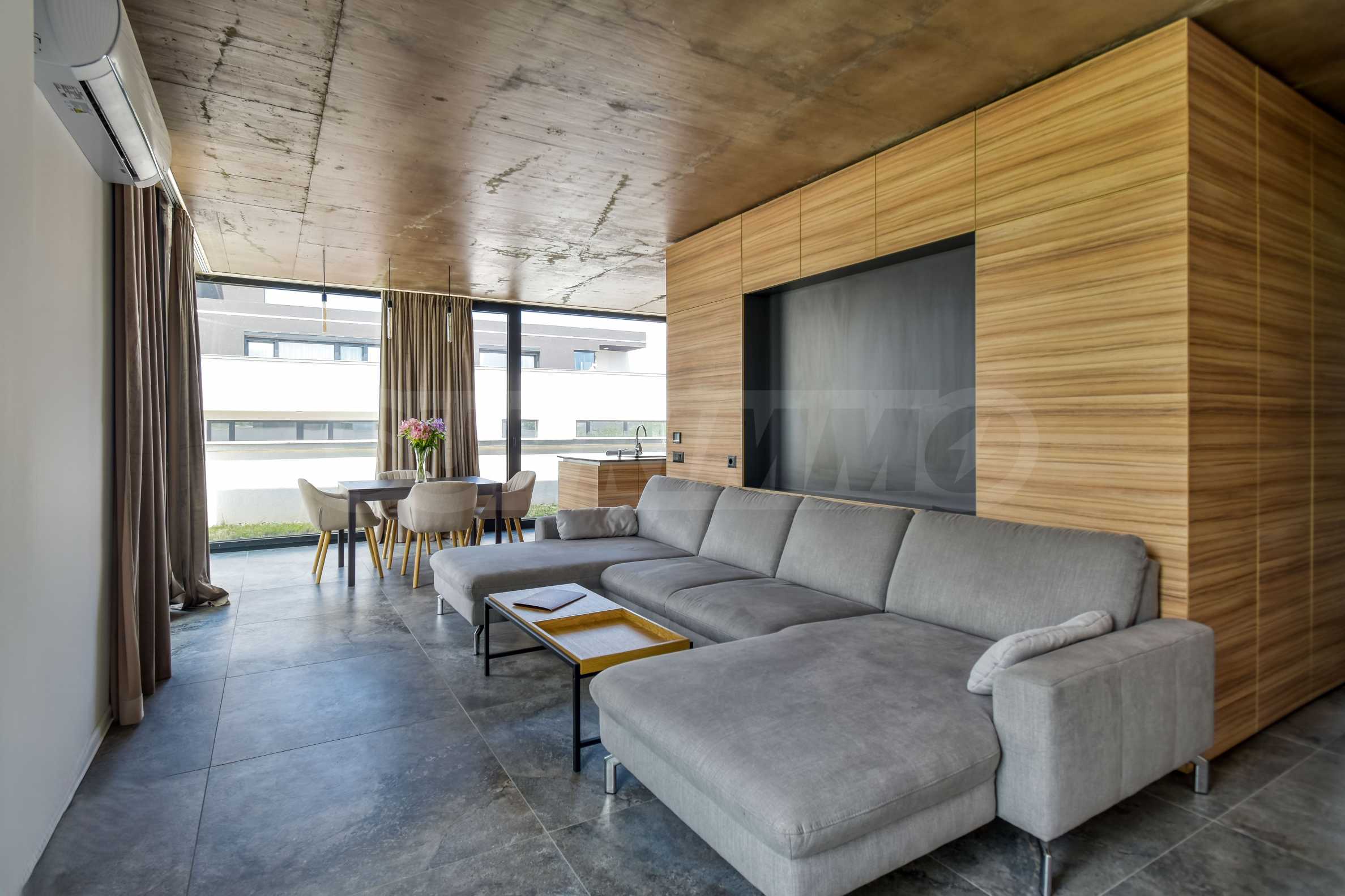 The layout is functional and well thought out: entrance hall, spacious living area with separate kitchenette and dining area, two comfortable bedrooms, two bathrooms with toilet, utility room and a terrace with a pleasant view of the green and quiet surroundings. The interior is stylishly finished, combining elegance, coziness and practicality.