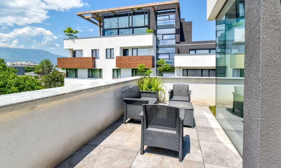 We offer for rent a spacious and extremely bright two-bedroom apartment, located in a quiet and well-landscaped part of the Gorublyane district. The property has an area of 120 m2. and occupies the top, fourth floor of a well-maintained building, which provides peace, privacy and a comfortable living environment - an excellent choice for a family.