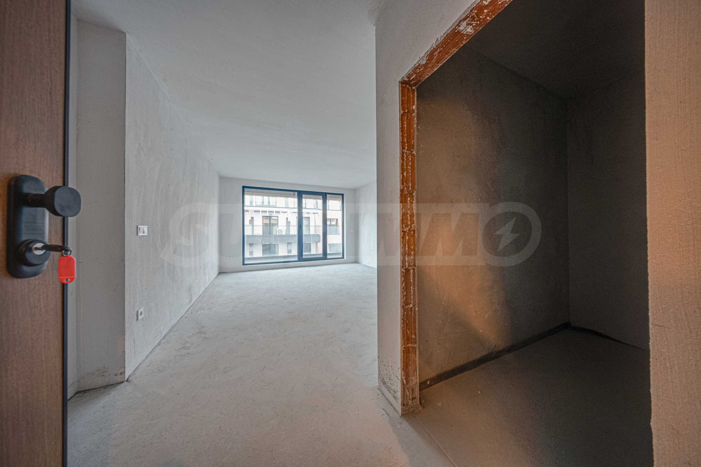 The property is being let in the following form: all installations in the apartment have been built and laid, including electrical installation, plumbing, pipework for heating and air conditioning of individual gas boiler, heat pump or multi-split system with freon air conditioners, according to the buyer's preferences. The stands for the outdoor units have been installed in previously designated, discreet places on the balconies, in order to preserve the external aesthetics of the building and its facade. Schneider Electric sockets and switches have been installed. An Italian Dierre armored entrance door has been installed.