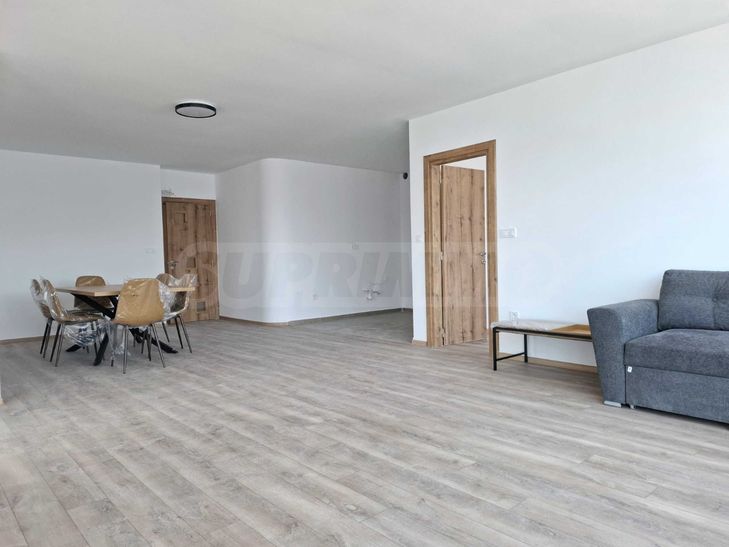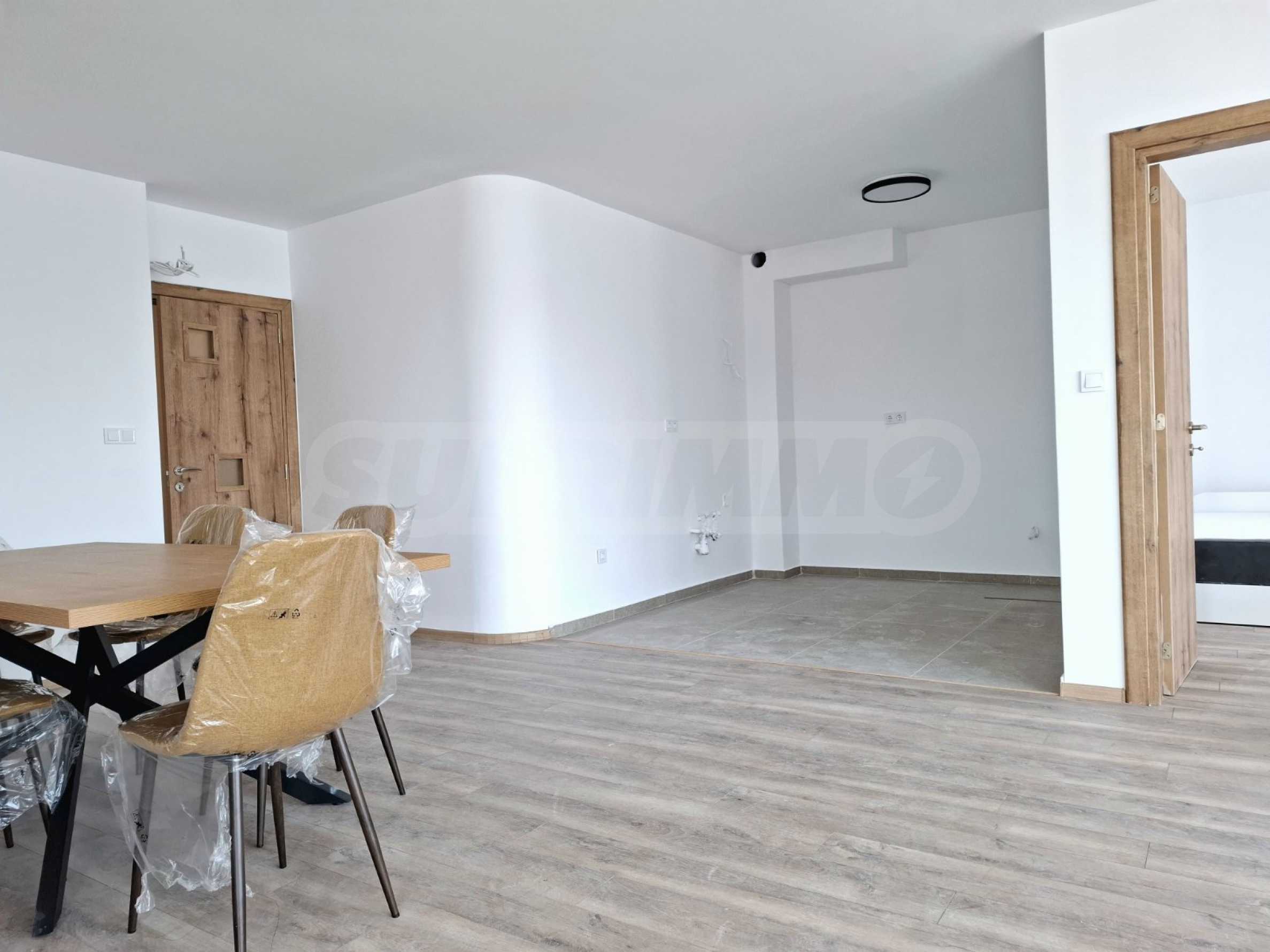The apartment is bright, functional and cozy, with panoramic views of the mountains and the airport, which gives character and a feeling of freedom. It is fully furnished, with everything you need for living, with quality electrical appliances. The floors are with granite tiles and parquet, walls - latex. The entrance doors are armored, with natural veneer.