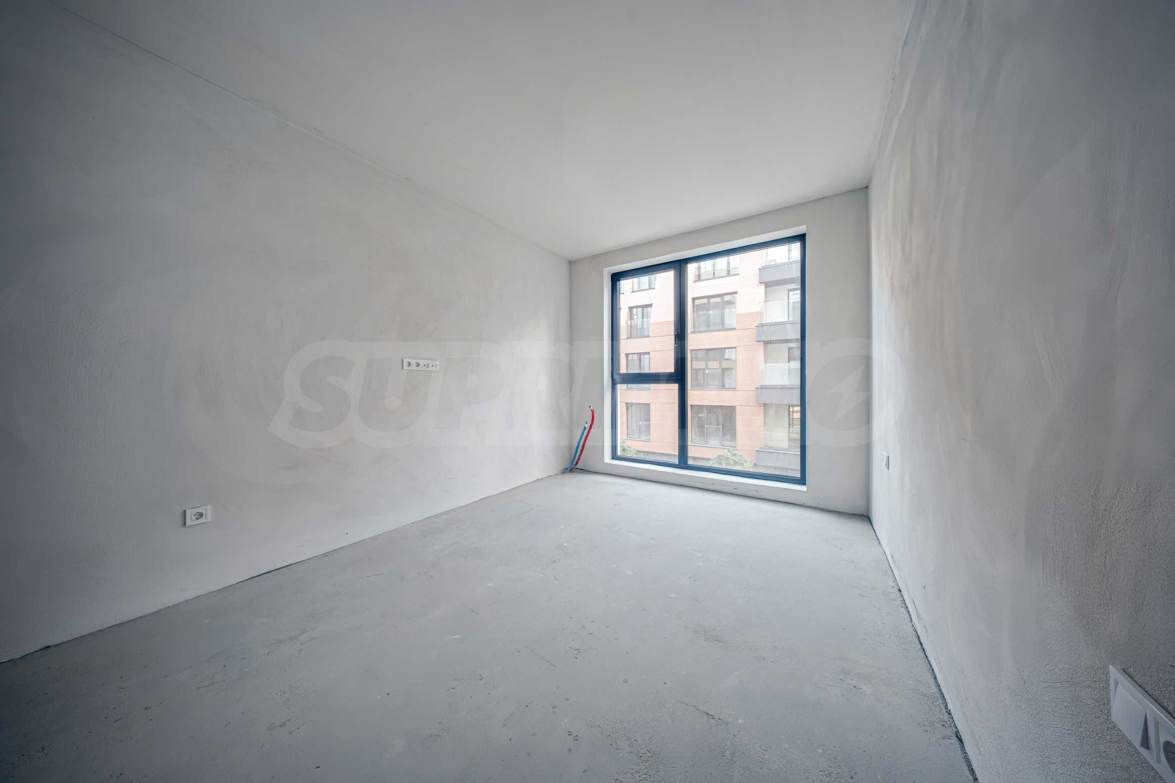 The property is being let in the following form: all installations in the apartment have been built and laid, including electrical installation, plumbing, pipework for heating and air conditioning of individual gas boiler, heat pump or multi-split system with freon air conditioners, according to the buyer's preferences. The stands for the outdoor units have been installed in previously designated, discreet places on the balconies, in order to preserve the external aesthetics of the building and its facade. Schneider Electric sockets and switches have been installed. An Italian Dierre armored entrance door has been installed.