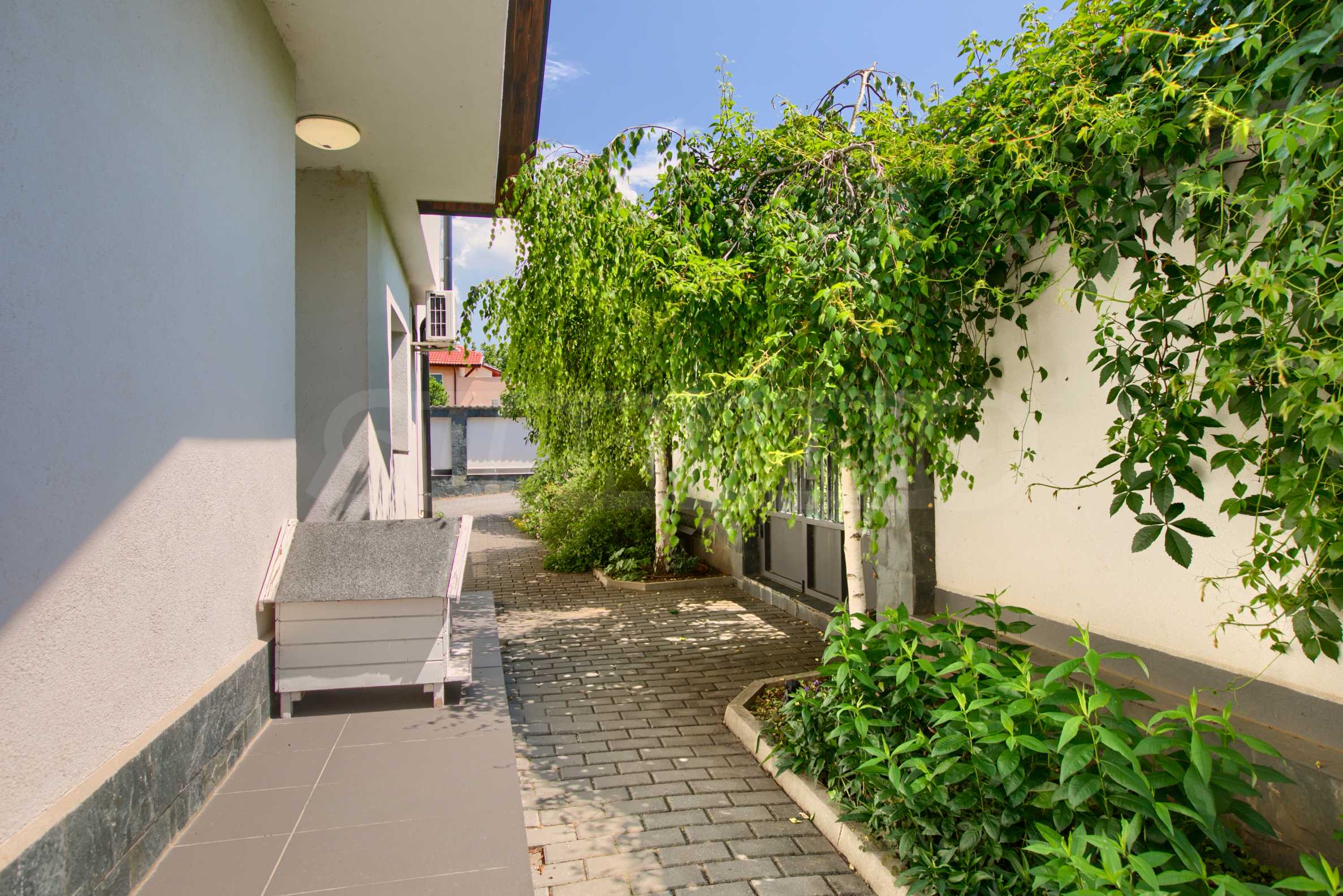 • Massive fence along the street, complemented by a hedge of wild vines;