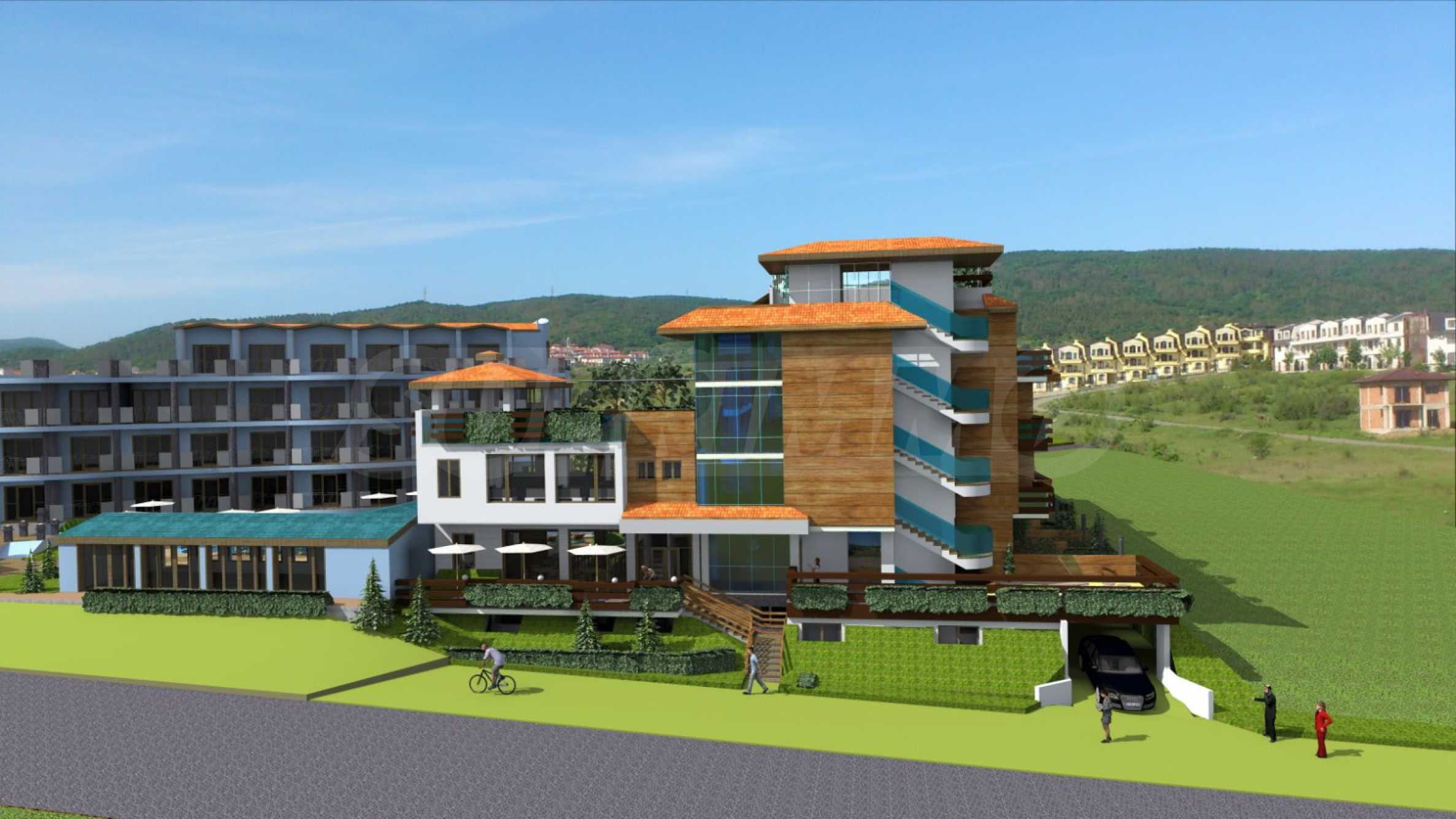 The complex is designed for year-round living, with a swimming pool and barbecue area on its territory. The building is designed on 4 floors with 20 apartments, including studios, one- and two-bedroom apartments with an area of 54.54 m2. to 119.12 m2. and adjacent storage rooms.