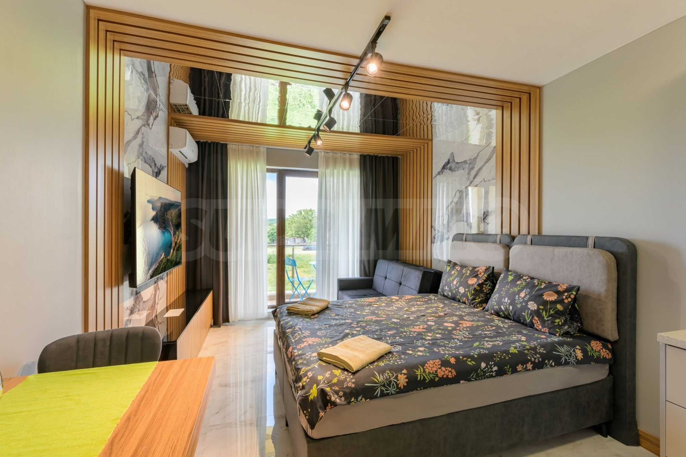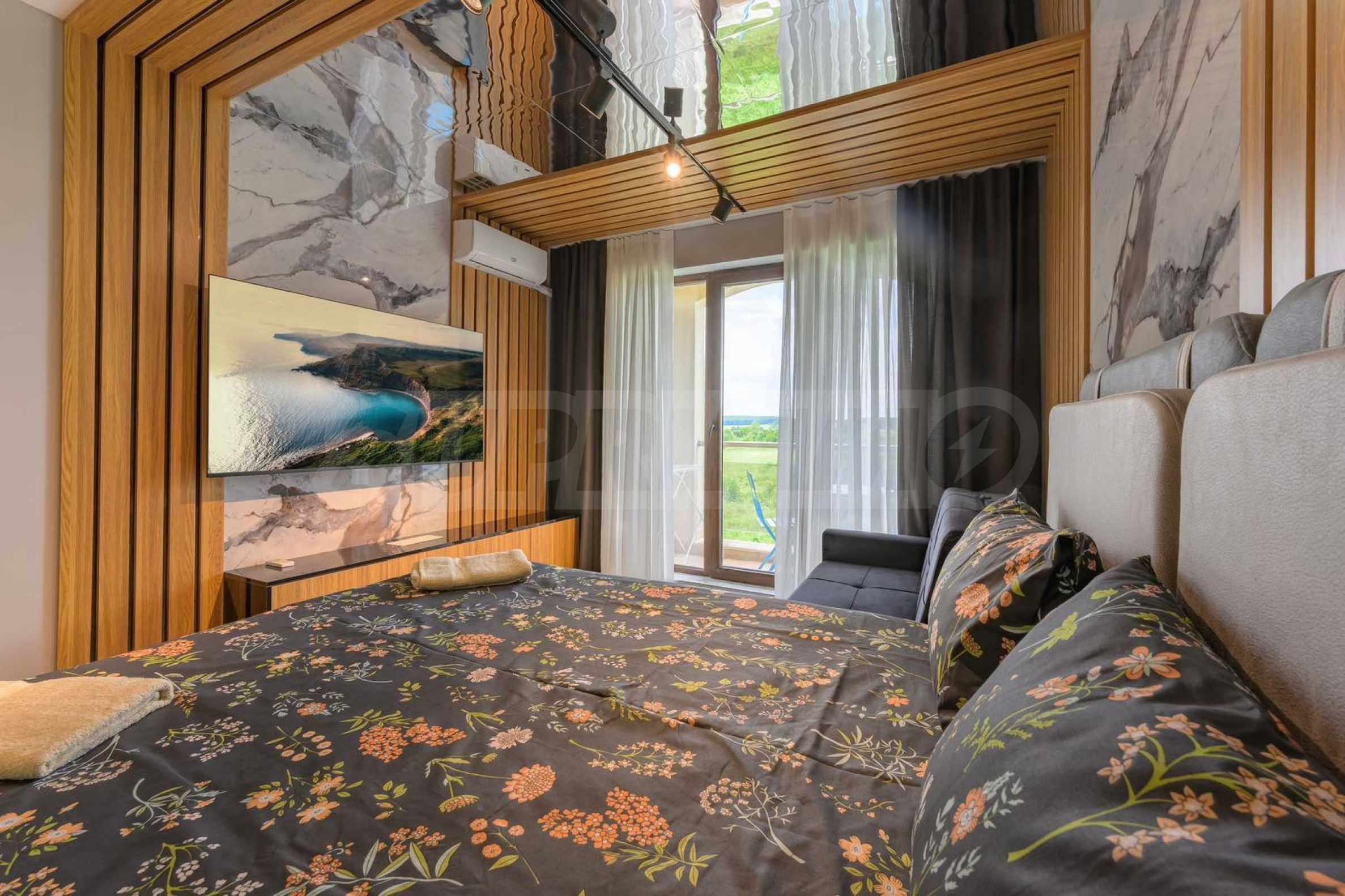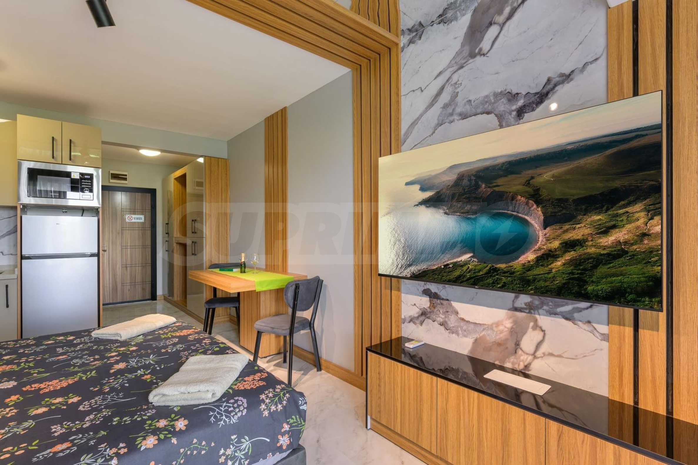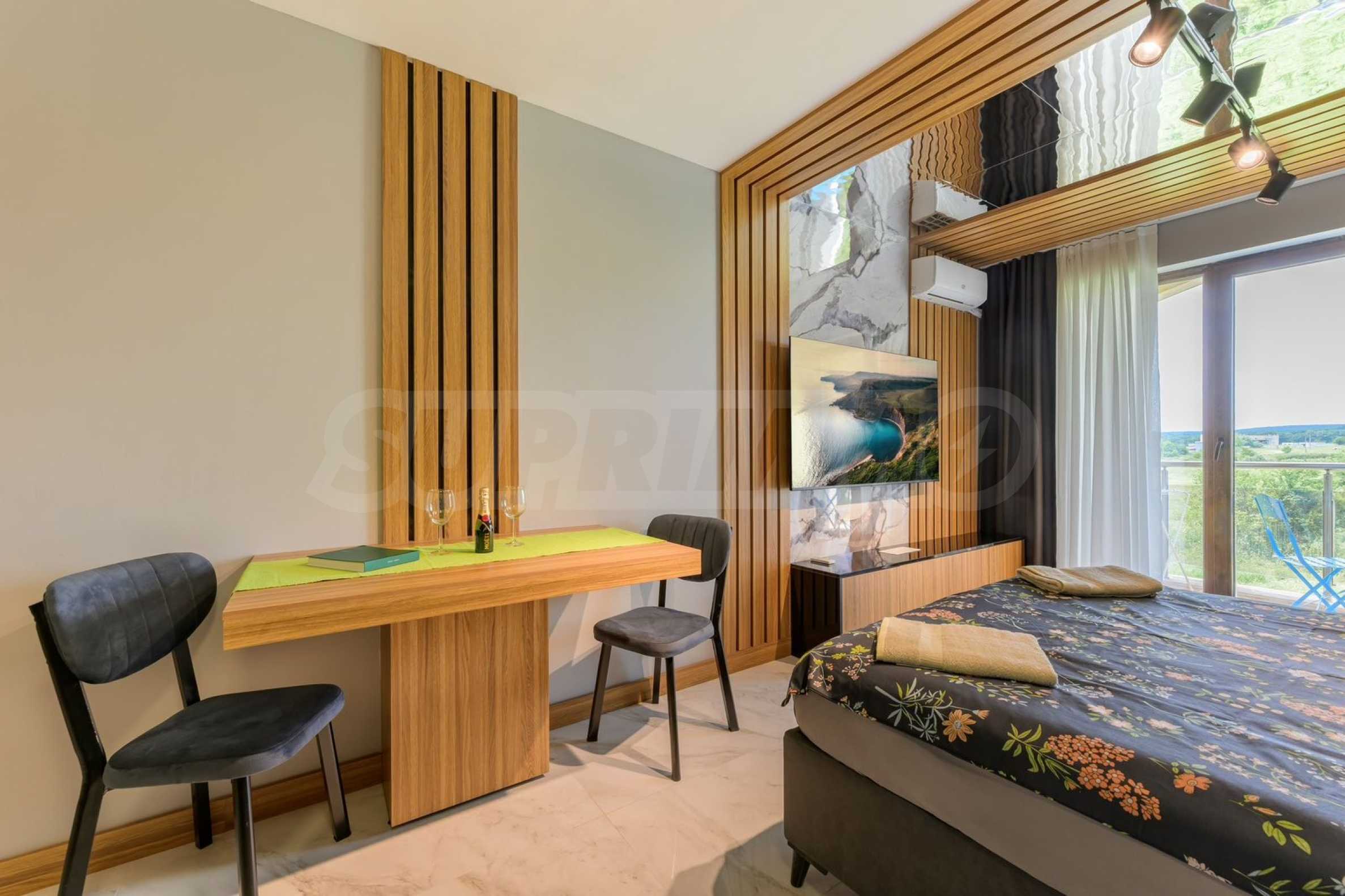 We are exclusively presenting for sale a luxuriously furnished one-bedroom apartment in a gated complex with a swimming pool in Shkorpilovtsi. The resort is a year-round destination and there are several shops, bars and a restaurant nearby.