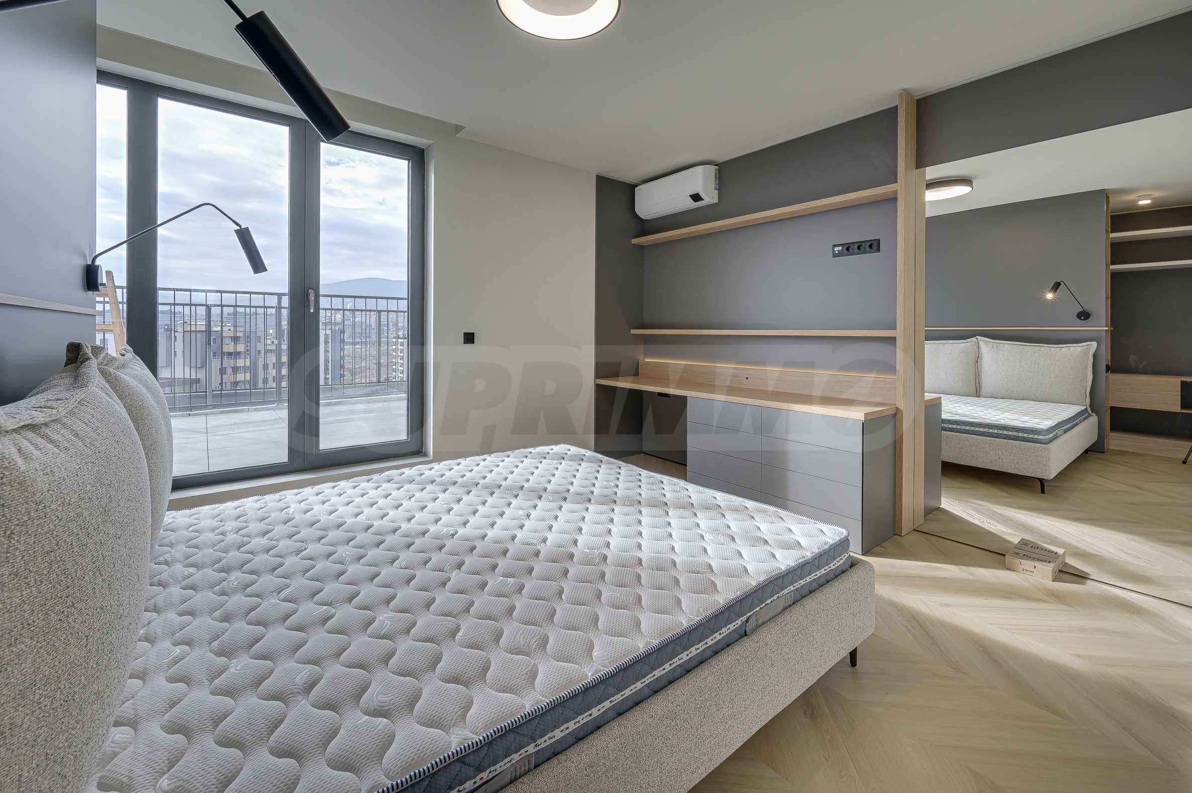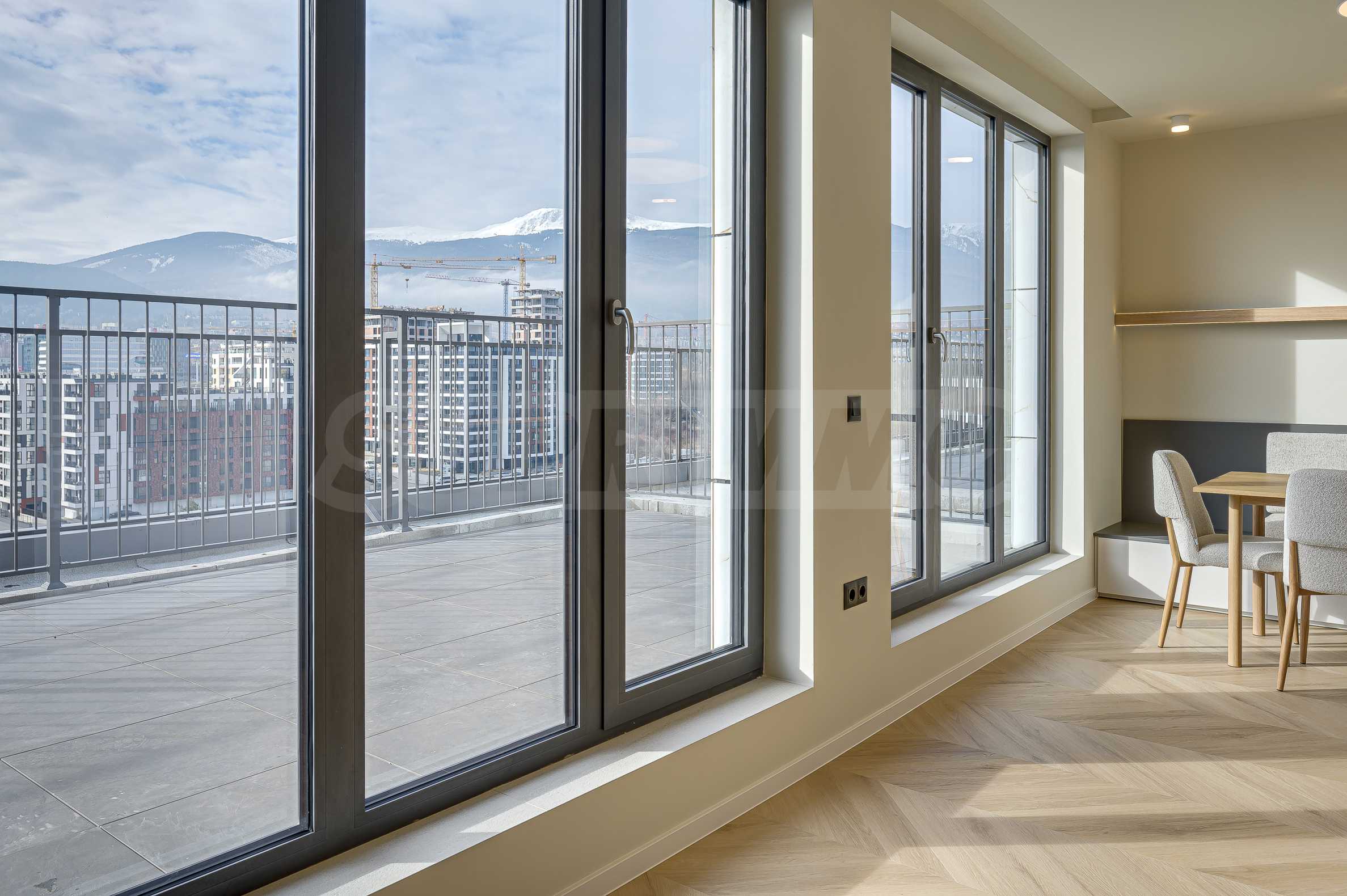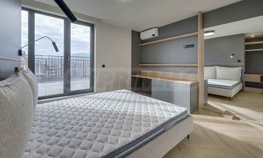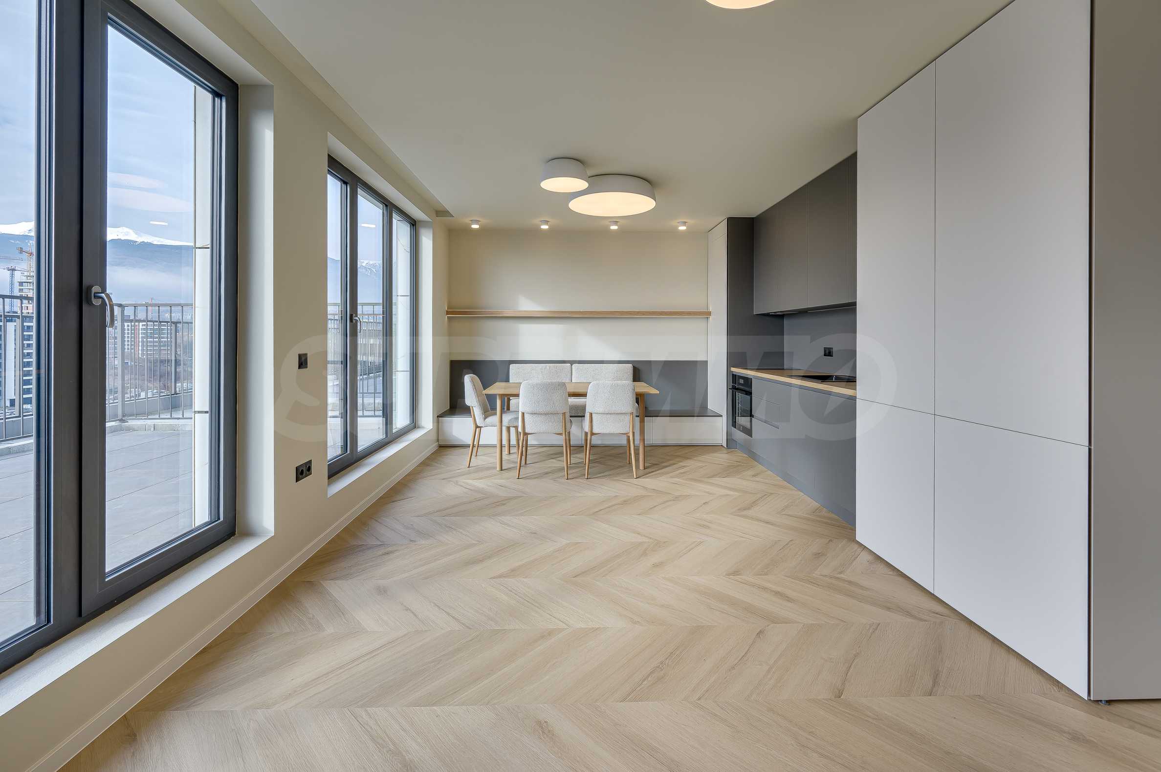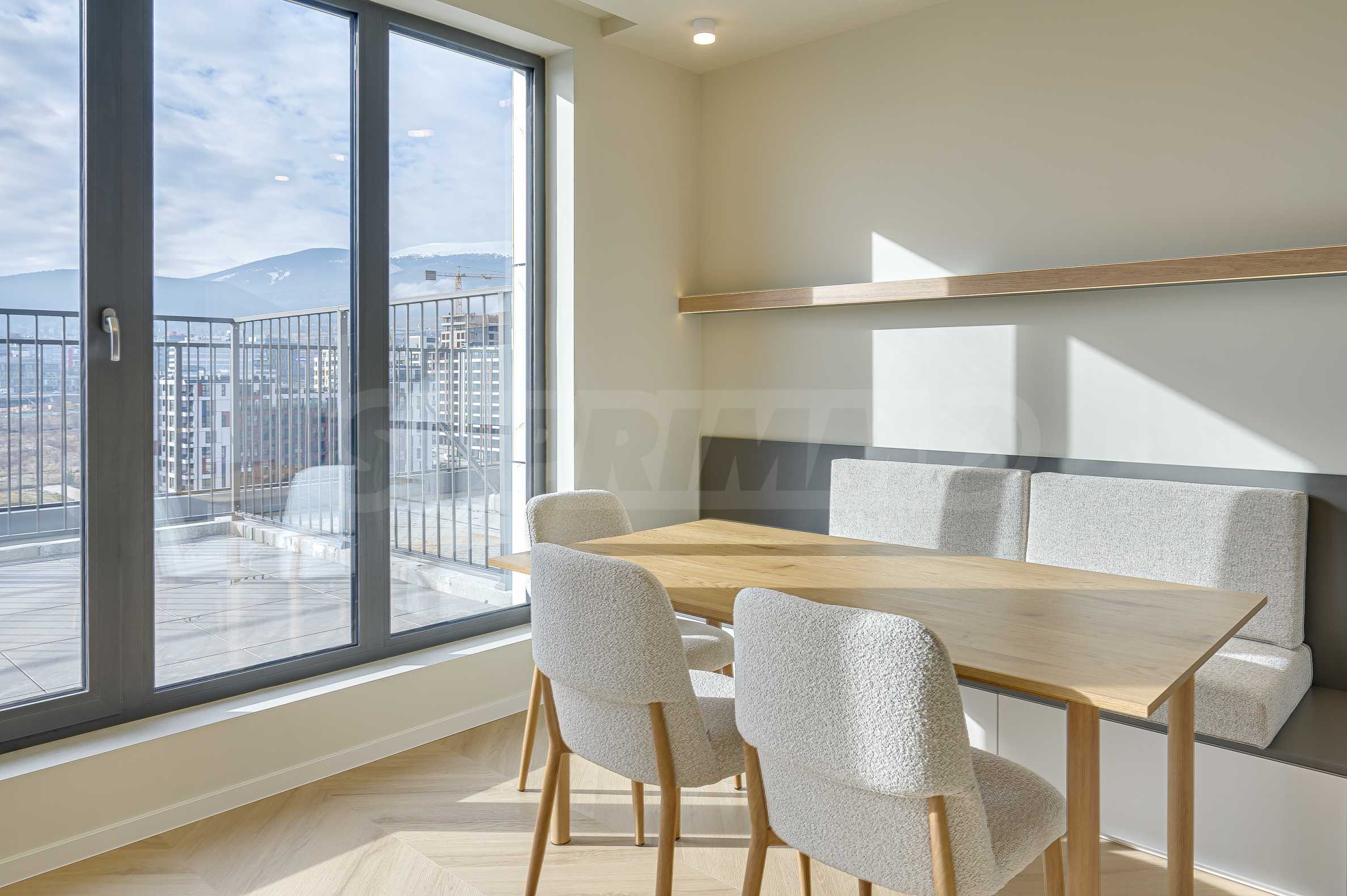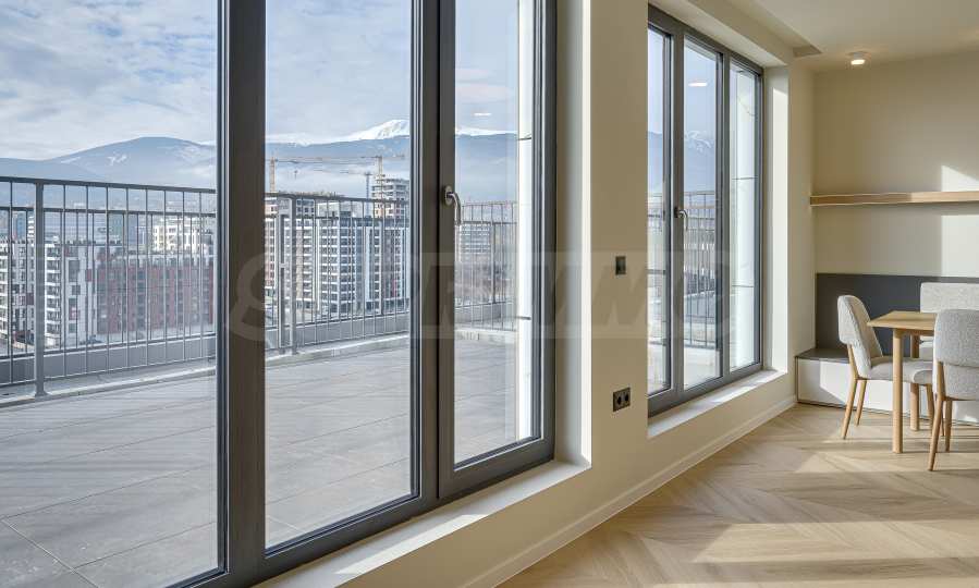 The apartment is located on the top, 10th floor and reveals an impressive, open view of Vitosha Mountain and the surrounding area - without traffic noise, with plenty of natural light throughout the day. The spacious panoramic terrace has an elegant pergola and the possibility of creating an outdoor dining area and greenery - a natural extension of the interior and the feeling of outdoor living.