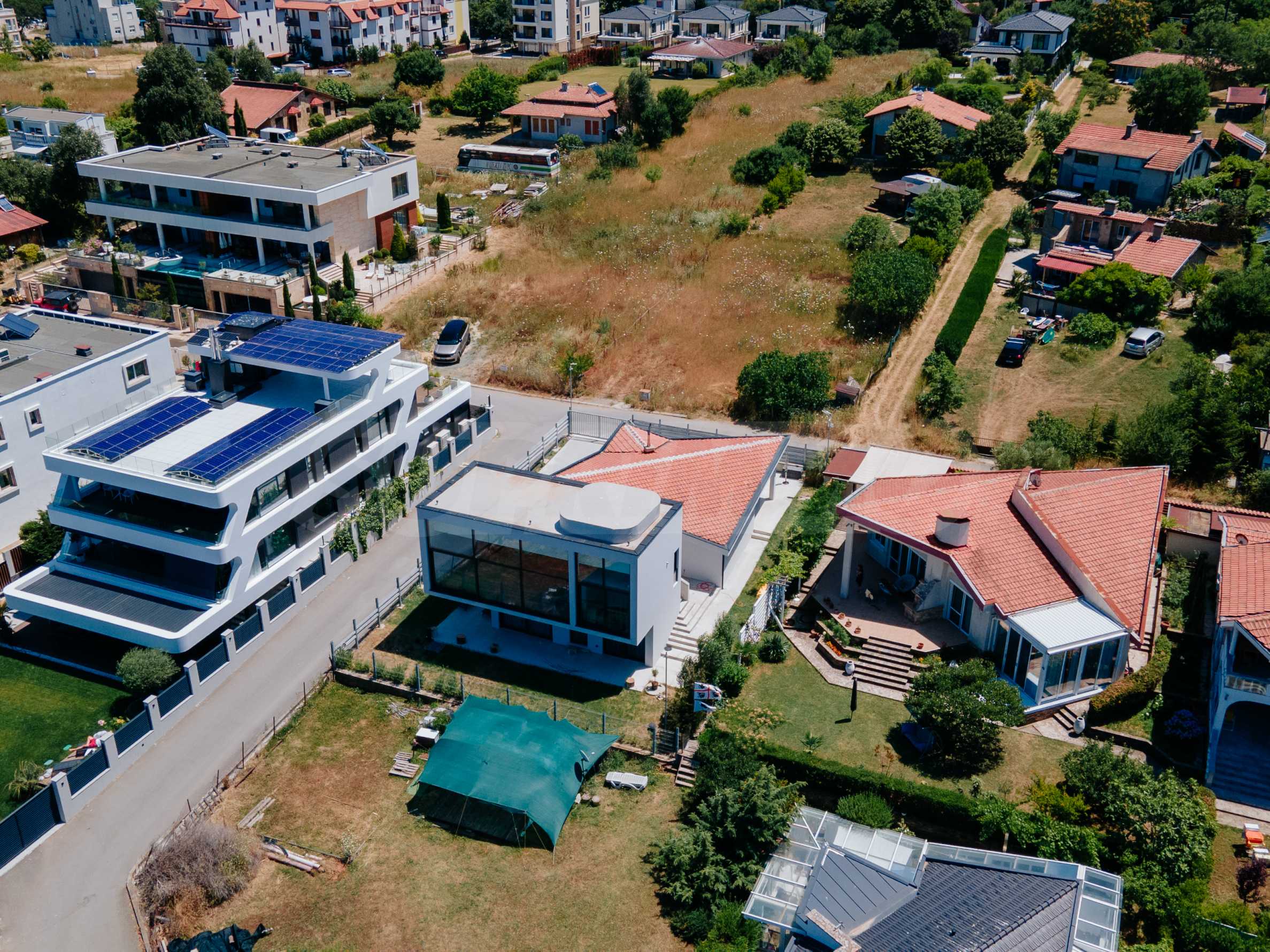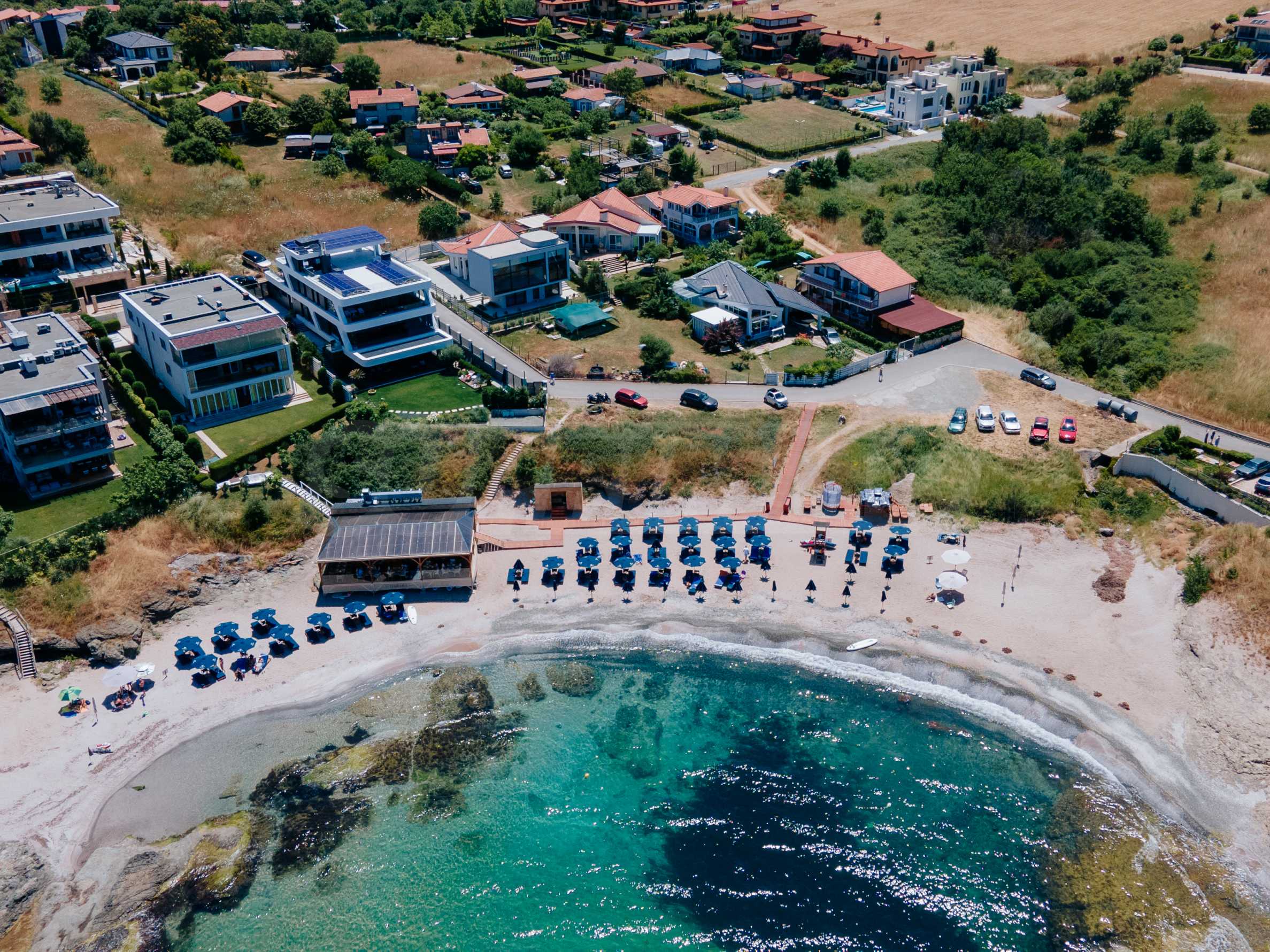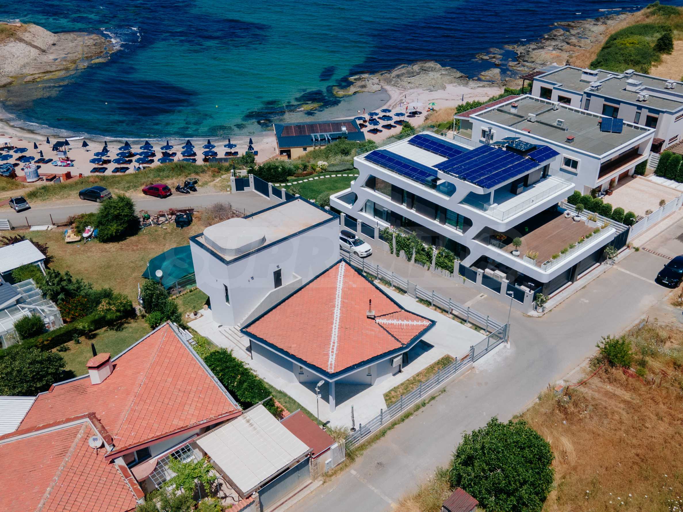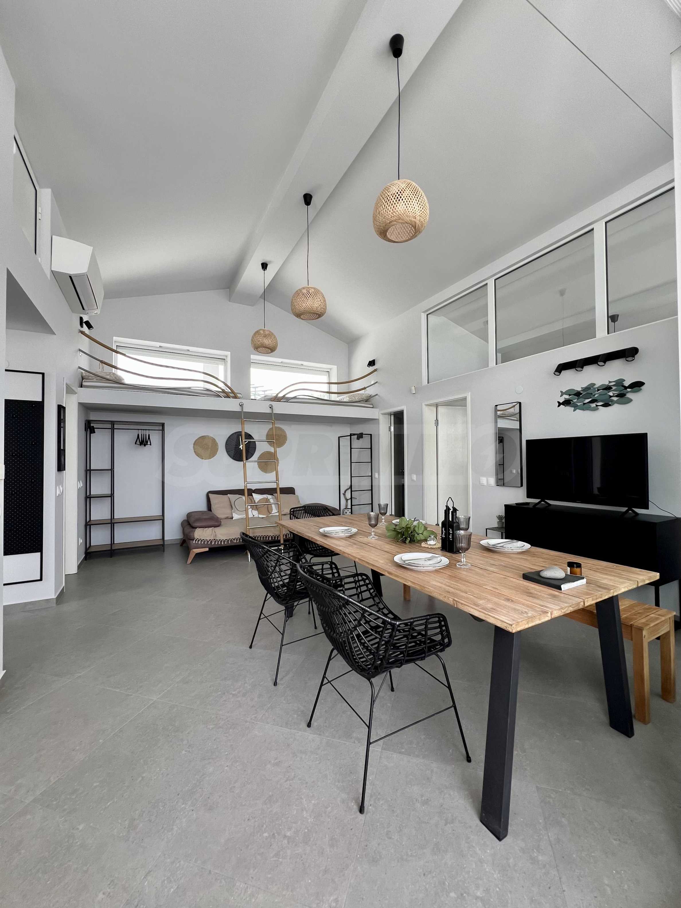 We present for sale two designer houses with panoramic sea views, located on a common plot of 532 sq m and an excellent location on the first line from the sea in Lozenets.