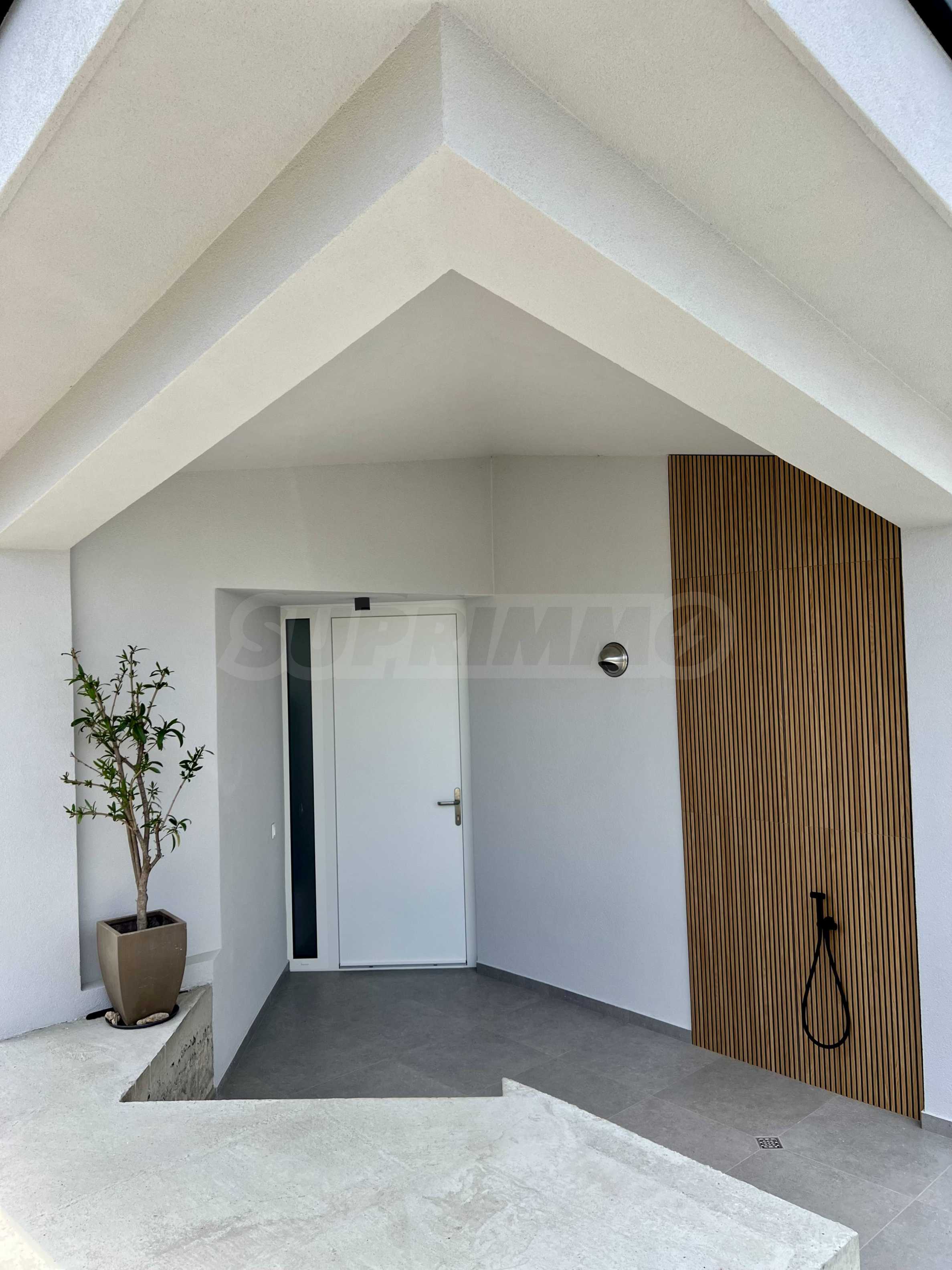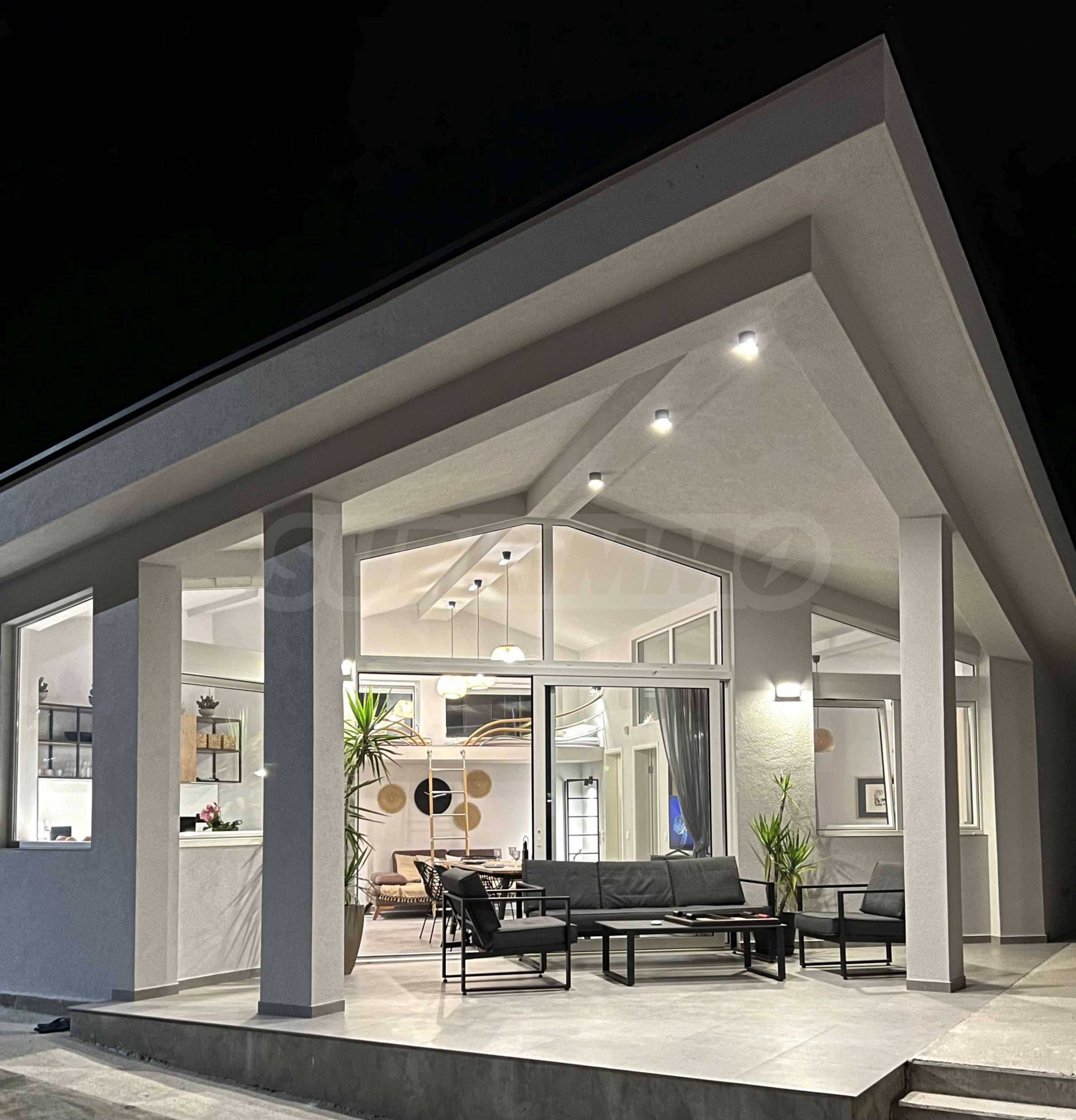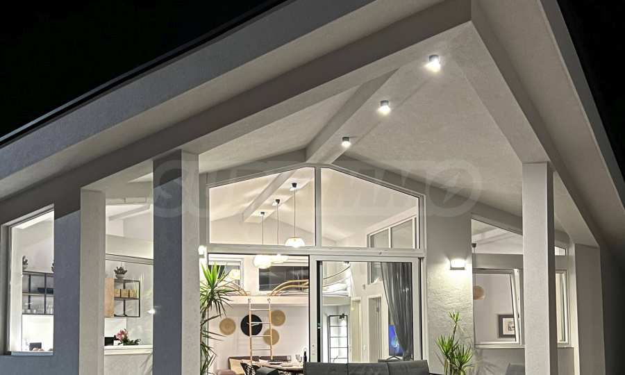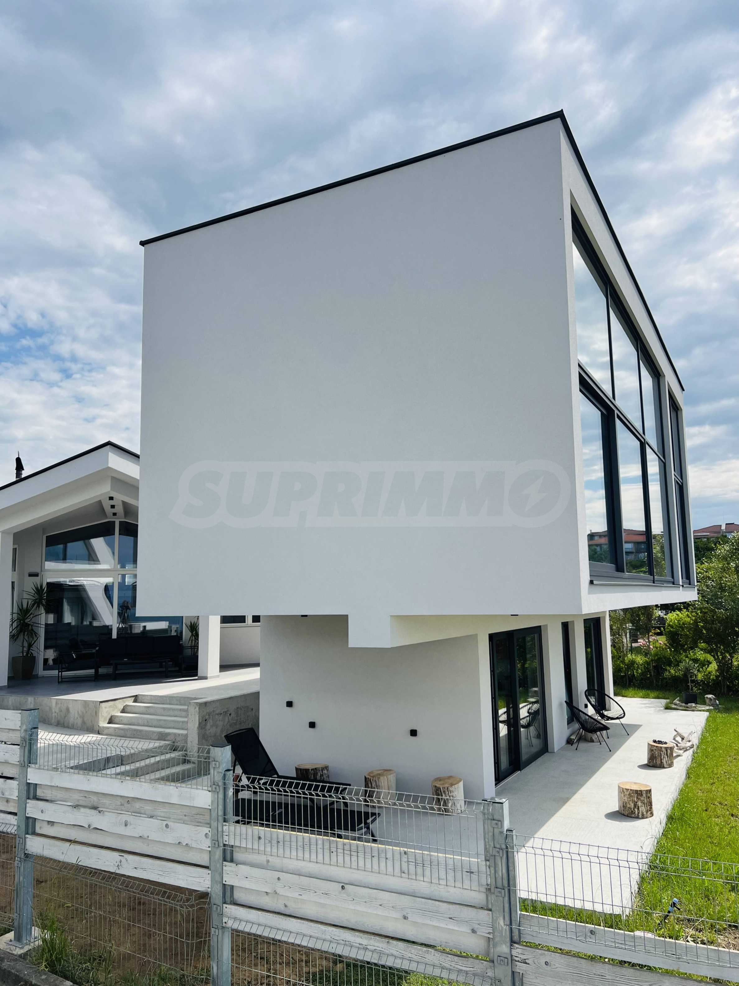 The highly recognizable facade impresses with contemporary minimalism and architectural boldness. The clean lines, the elegant white volume and the panoramic windows give a feeling of lightness and freedom. The contrast between the massiveness of the form and the transparency of the glass elements creates a visual balance between the modern and the natural. This is a home that is not just seen – it is remembered.