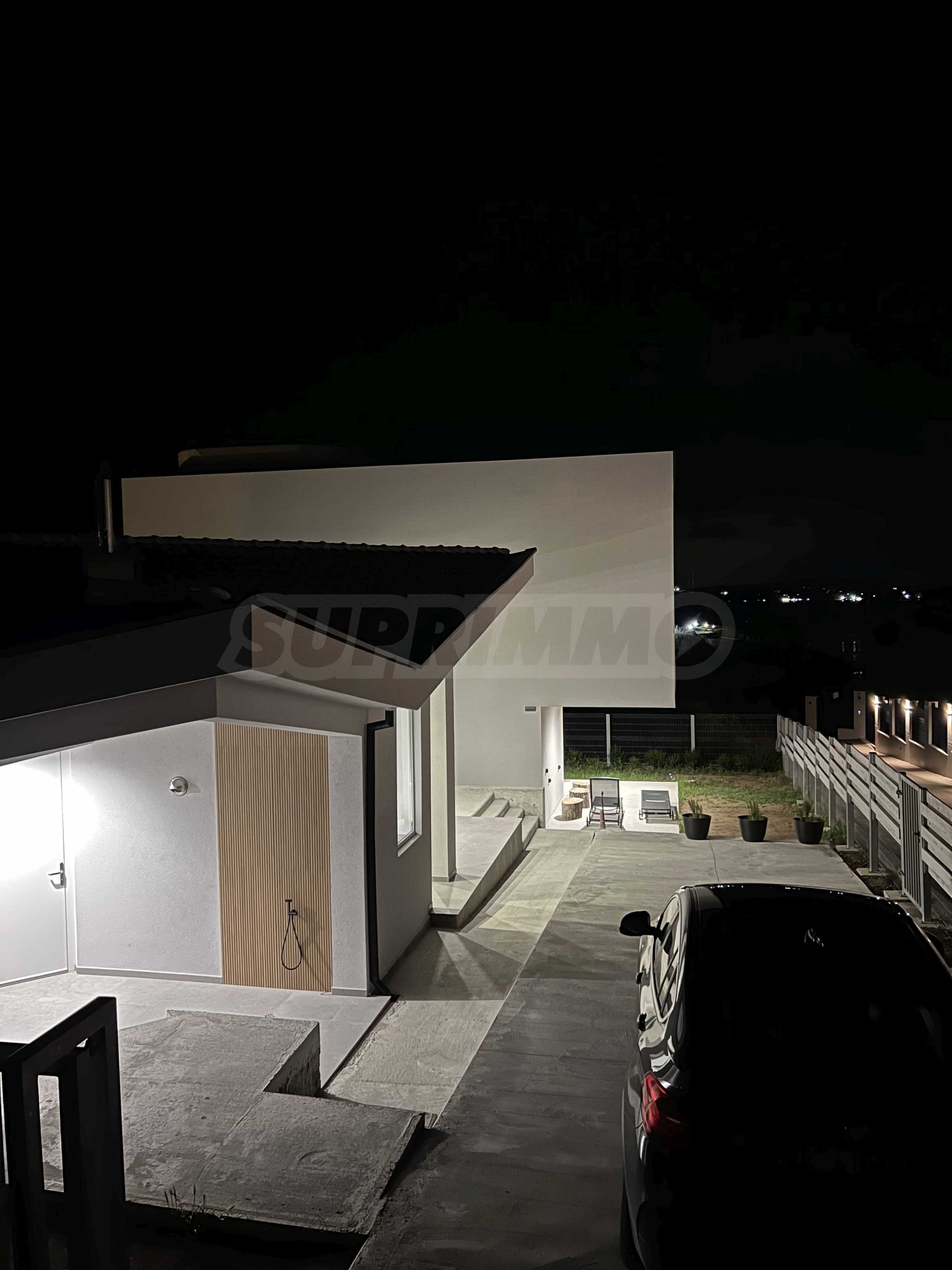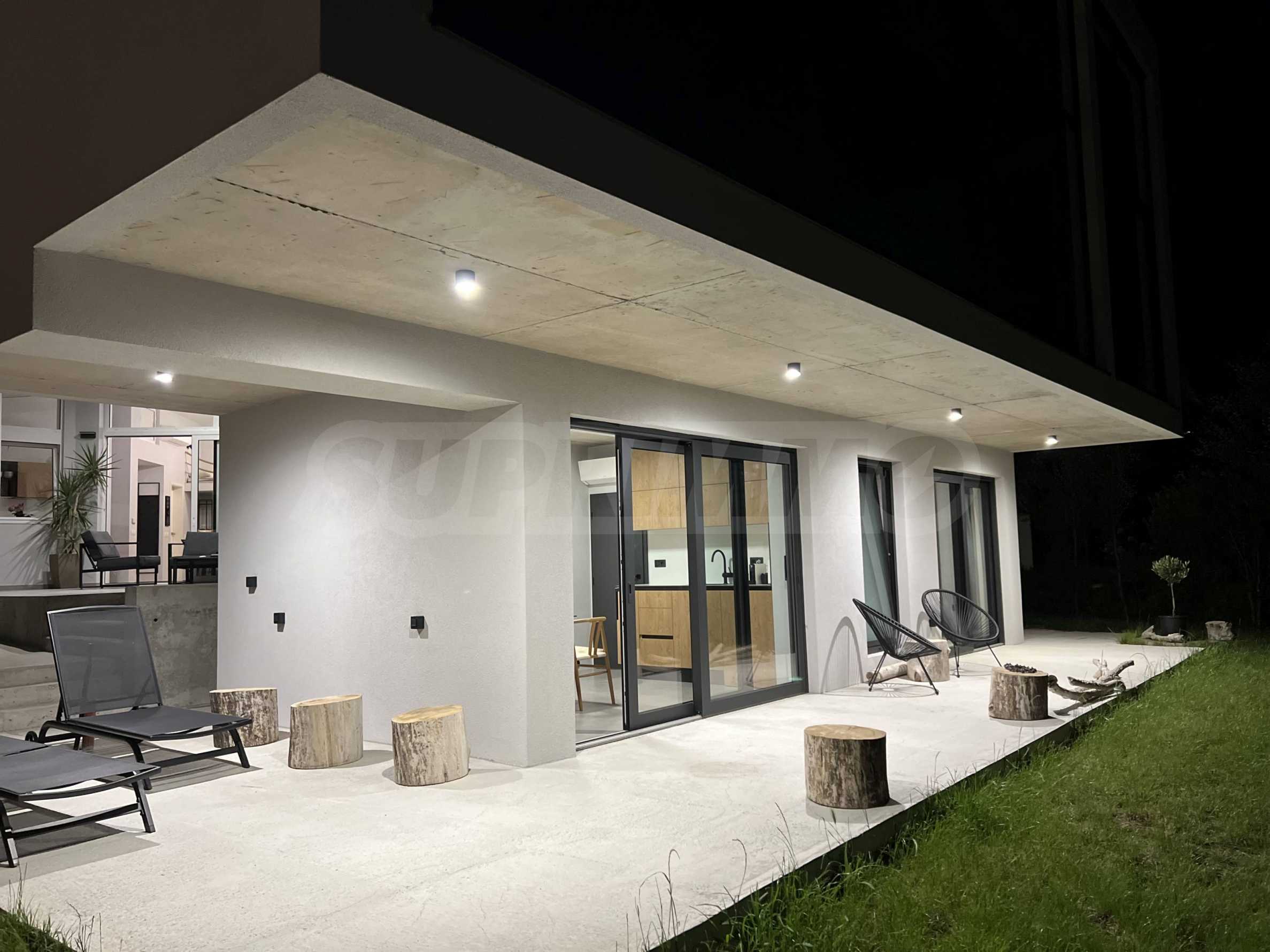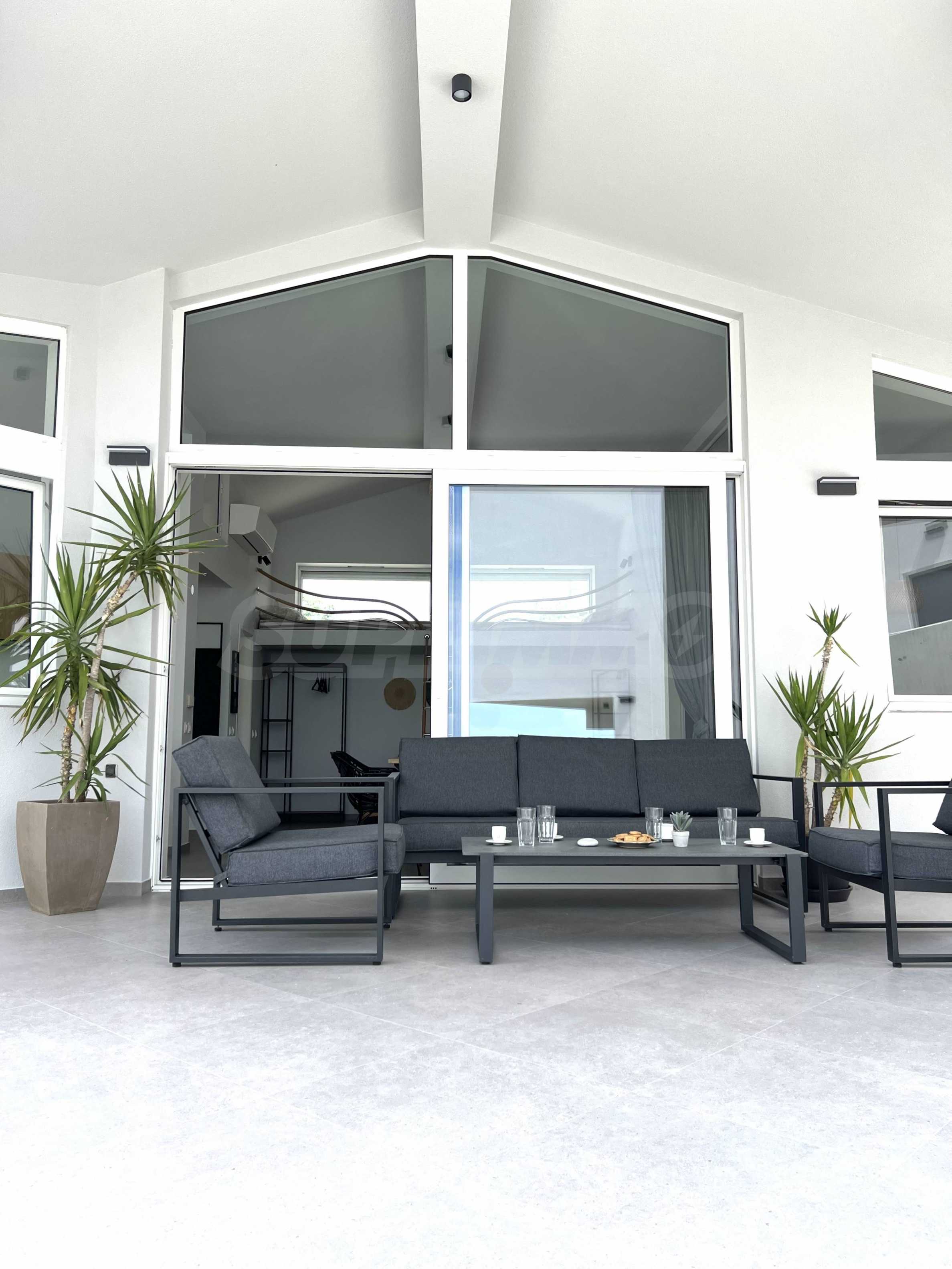 The highly recognizable facade impresses with contemporary minimalism and architectural boldness. The clean lines, the elegant white volume and the panoramic windows give a feeling of lightness and freedom. The contrast between the massiveness of the form and the transparency of the glass elements creates a visual balance between the modern and the natural. This is a home that is not just seen – it is remembered.