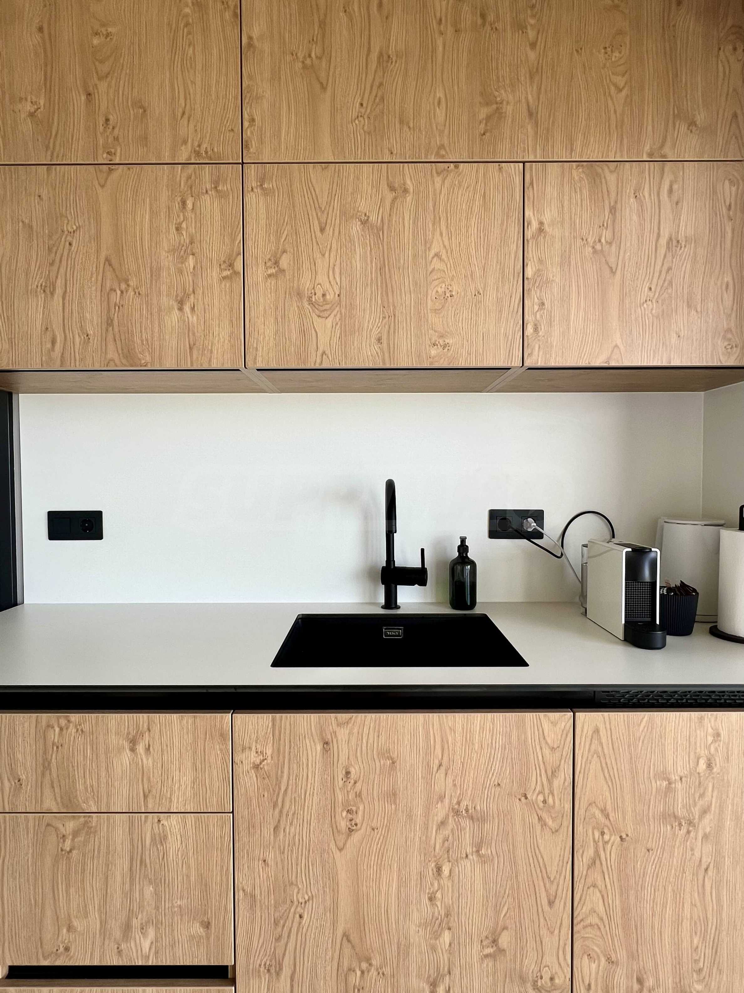 • ventilated facade with HPL cladding in wood color;