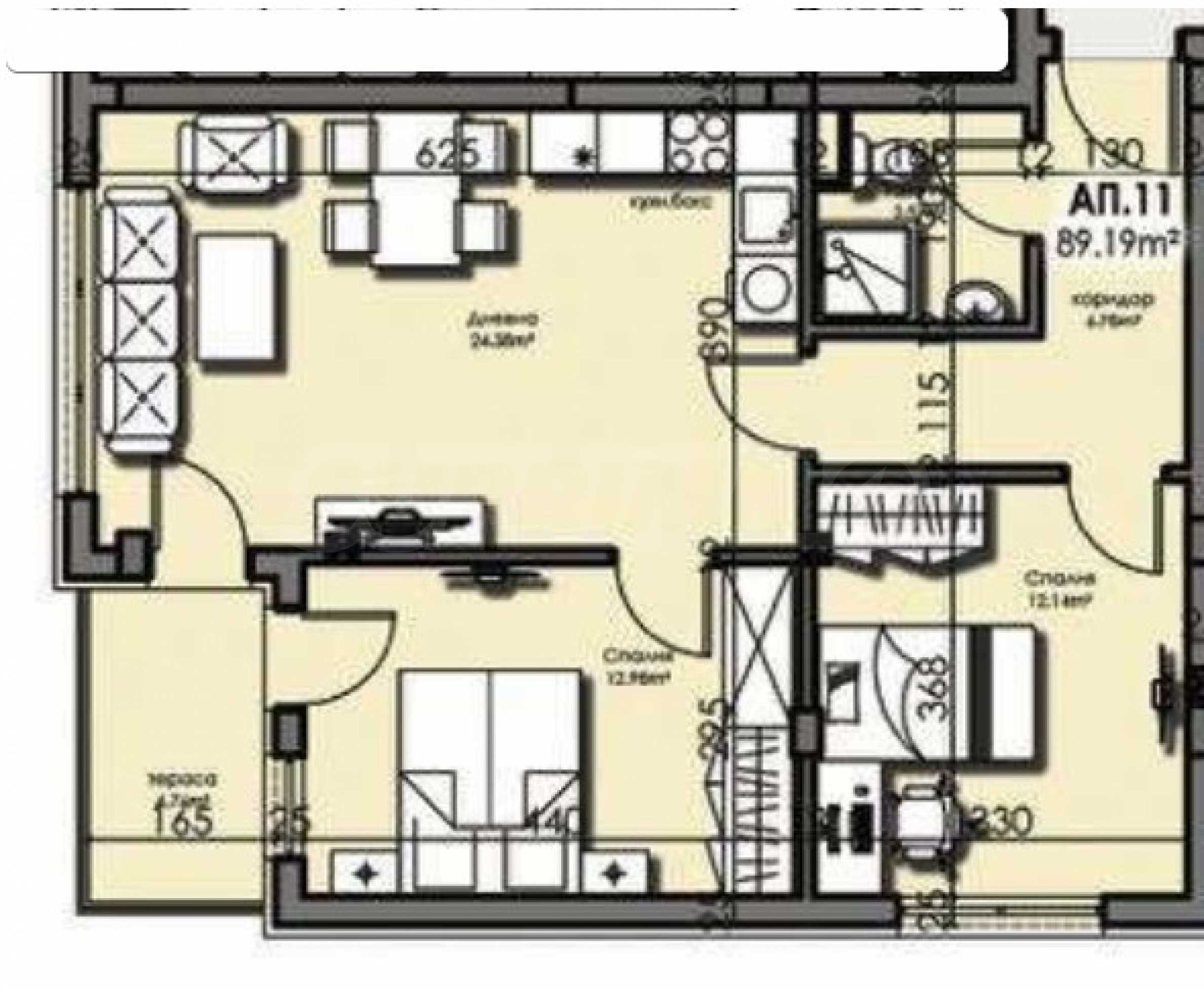 The apartment has a total area of 89.19 sq m, located on the 3rd floor and consists of: