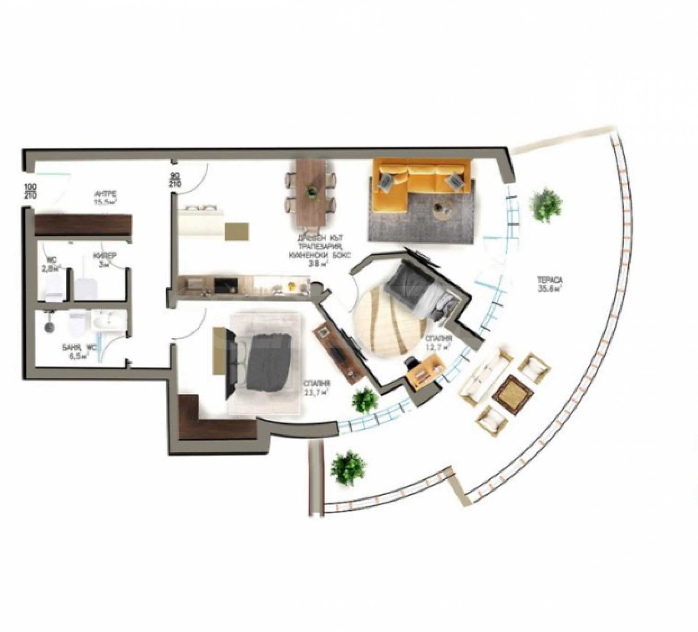 We present a two-bedroom apartment for sale in an elite gated complex, located on the seashore in the Kabakum district. 8 minutes from the center of Varna, with breathtaking views of the sea, the residential complex rises above the seashore to offer a lifestyle consistent with the latest and most desirable concepts. Residents here will enjoy spacious and modern apartments amidst fresh air, carried by the gentle sea breeze. Excellent location in close proximity to the VFU "Chernorizets Hrabar", the beach, restaurants, bars, shops, a public transport stop and other amenities.