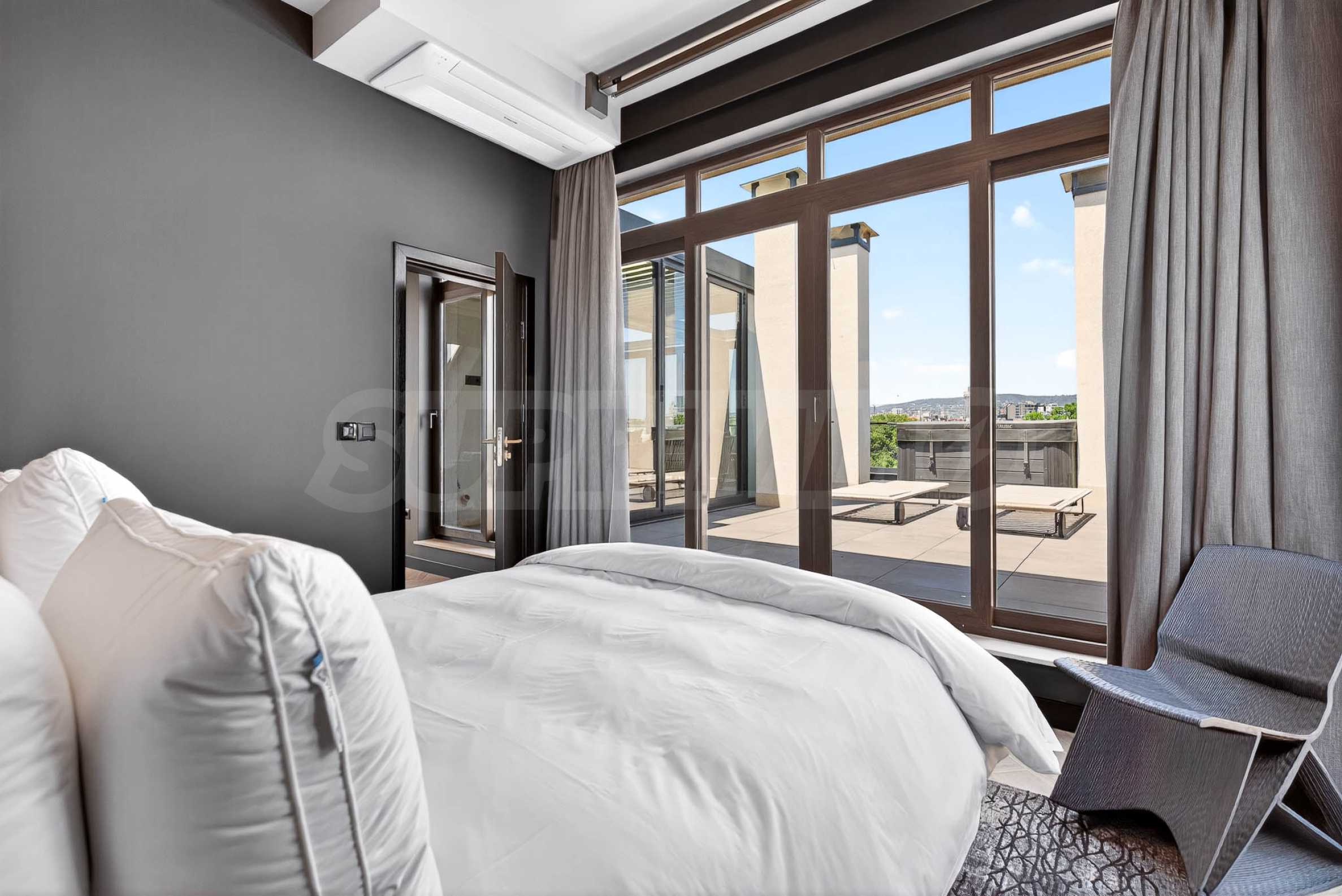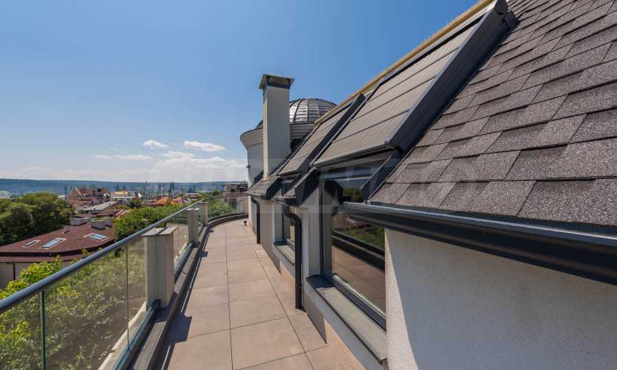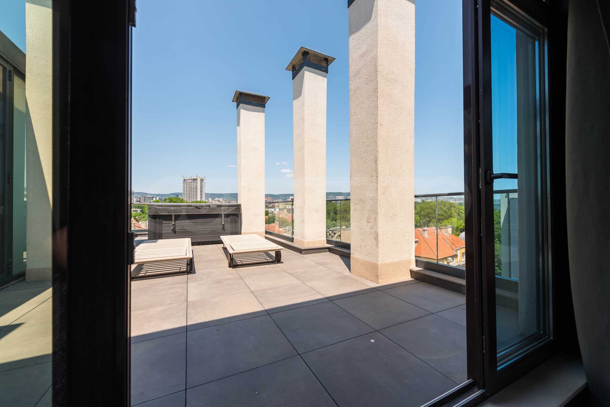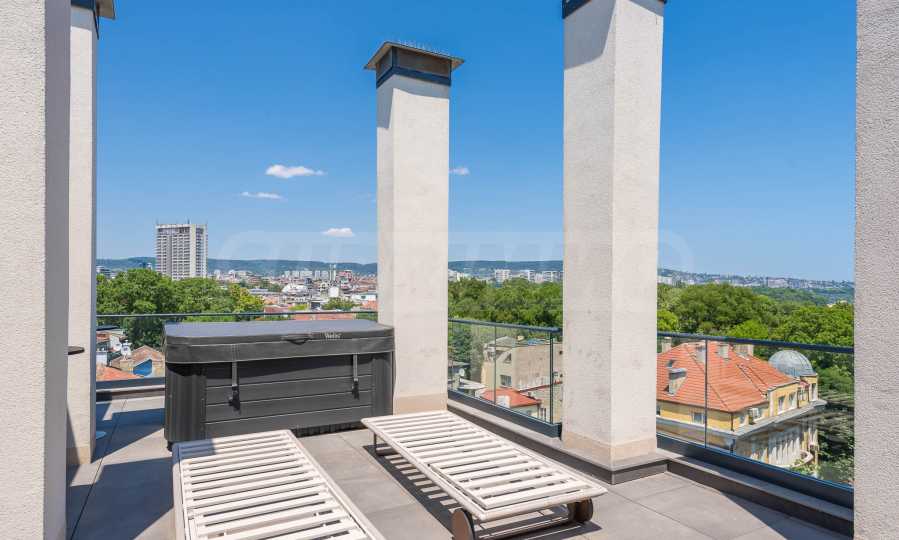 • Two terraces, one of which has a dining area, sun loungers and a 4 seasons outdoor jacuzzi under the stars, and the other - an intimate corner with a view of the historical part of Varna.