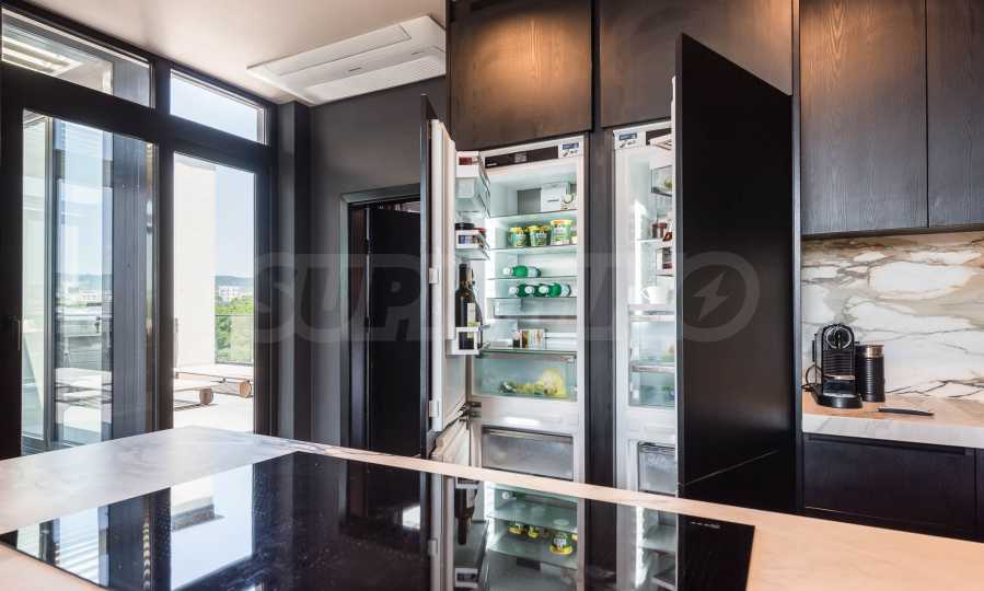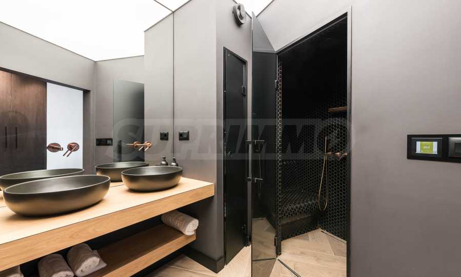 Premium equipment - whirlpool tub, capsule coffee machine, dishwasher, microwave, two refrigerators (including for wine), safe, washing machine, dryer, smart TV with streaming platforms, Harman Kardon sound system, underfloor heating and cooling throughout the apartment, Samsung air conditioning system, solar panels with battery on the roof and more.