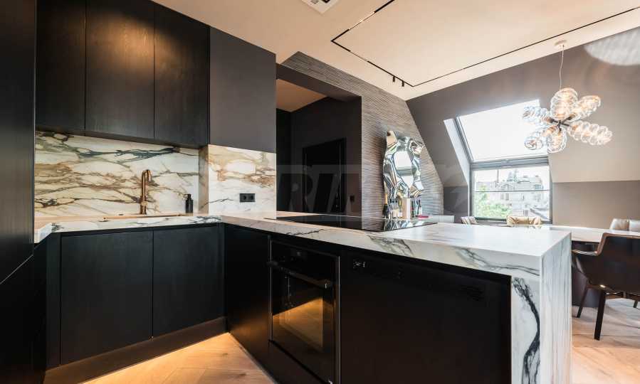 Every detail is tastefully selected, made of high-class materials and crafted with attention to the feeling of home. The property impresses with a sophisticated atmosphere, achieved through a palette of dark, deep tones that create a sense of luxury, intimacy and a perfect balance between comfort and style. Here, luxury is not ostentatious, but a carefully selected feeling - high-quality materials, designer furniture and a stylish dark vision that brings coziness and character. Every space in the penthouse exudes class and individuality - a color concept in dark tones, combined with precisely selected textures and uncompromising quality of execution.