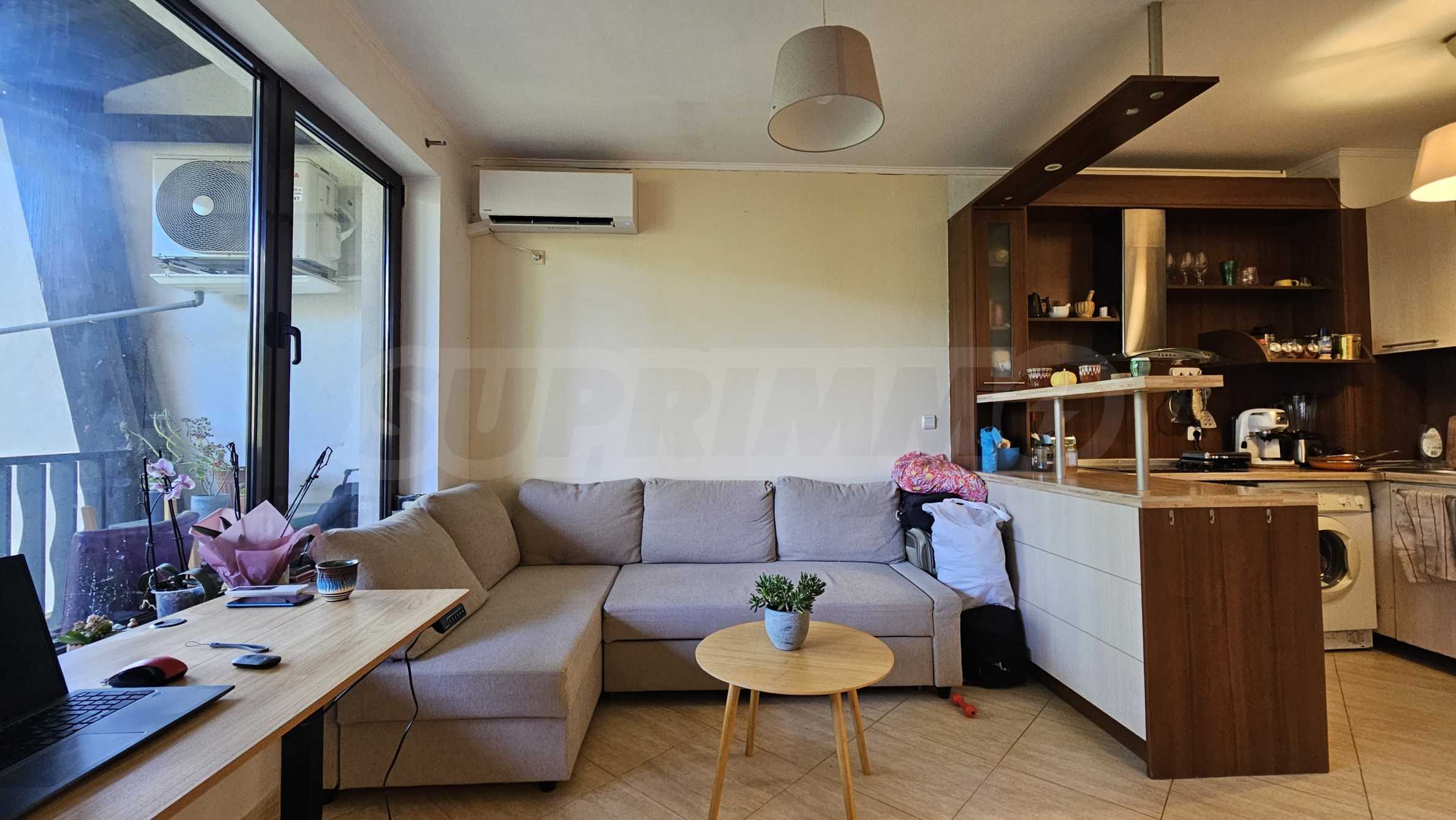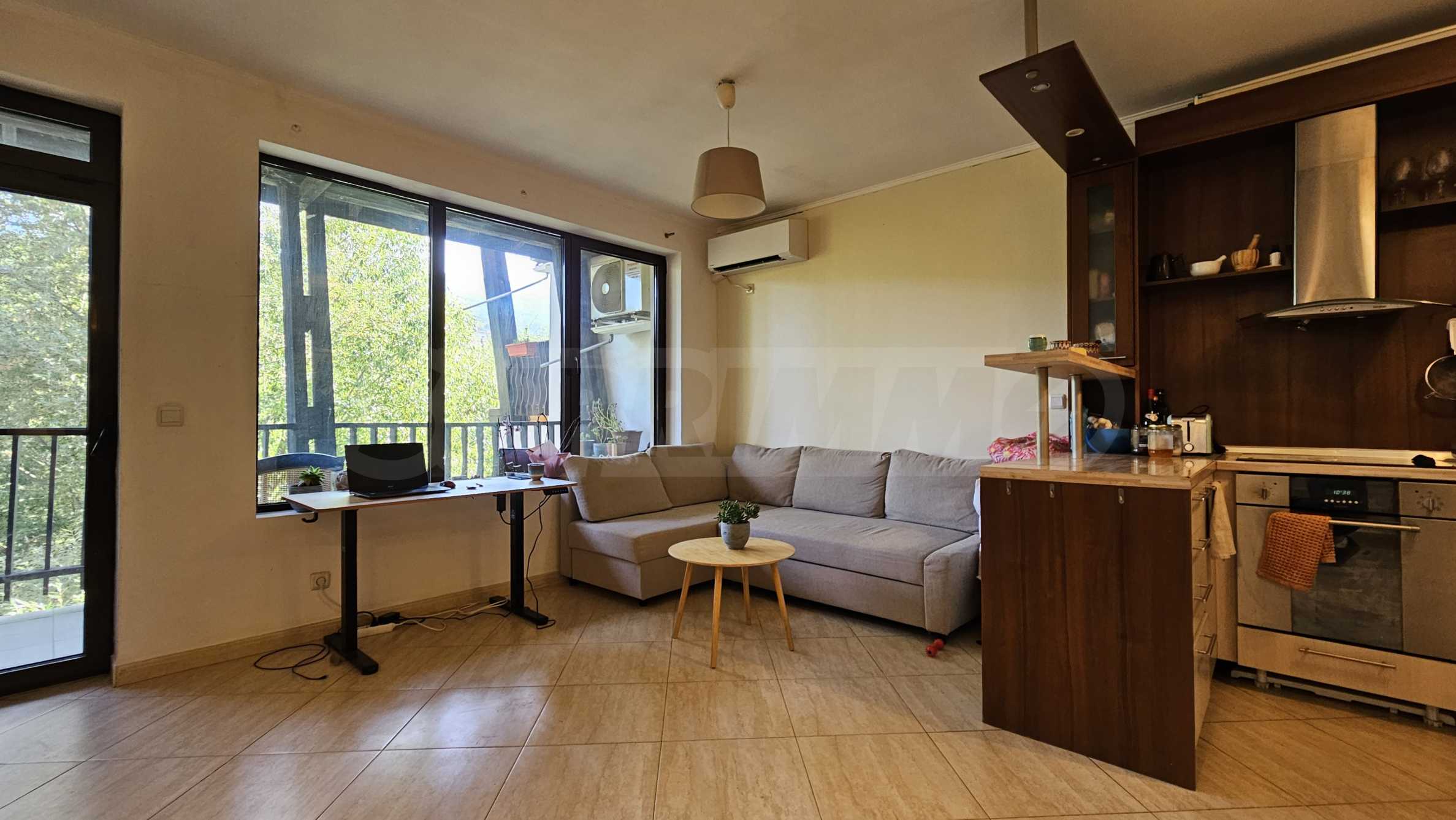 • living room with kitchen and access to a southern terrace with a view of Vitosha Mountain;