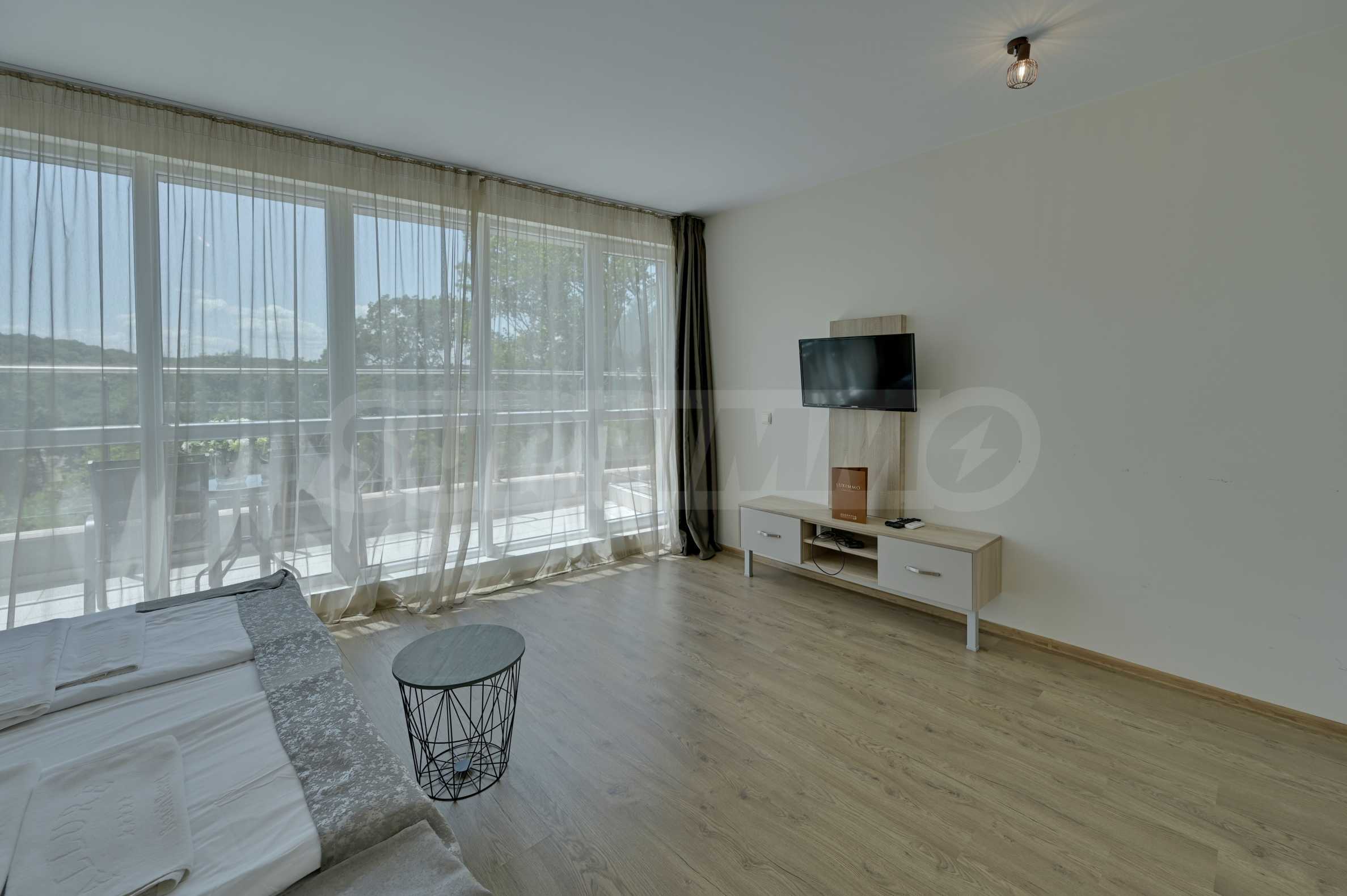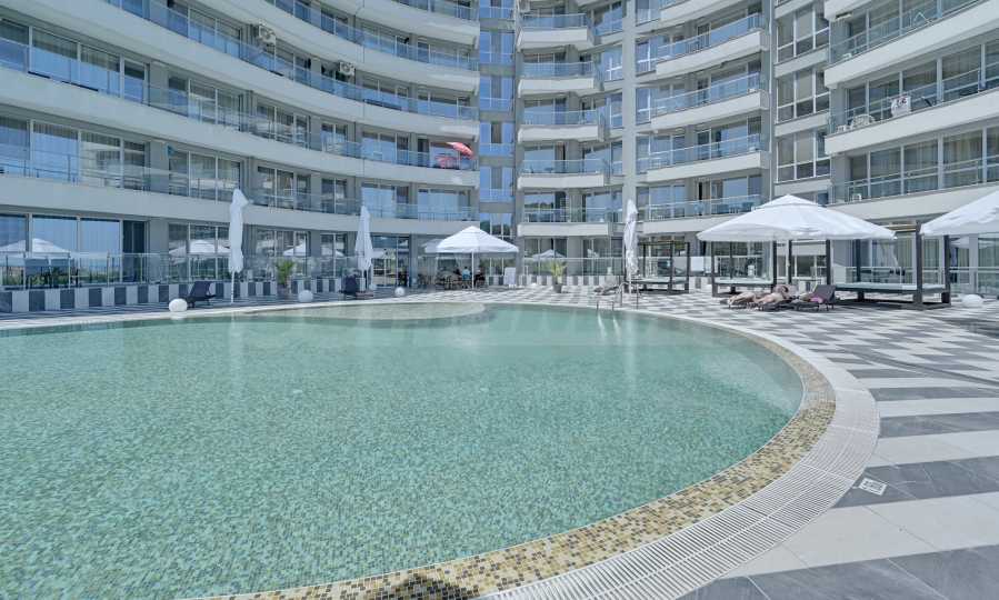 We present you an excellent studio with a sea view, located on the fourth floor of the four-star hotel in the town of Primorsko - on the first line with direct access to the beach.