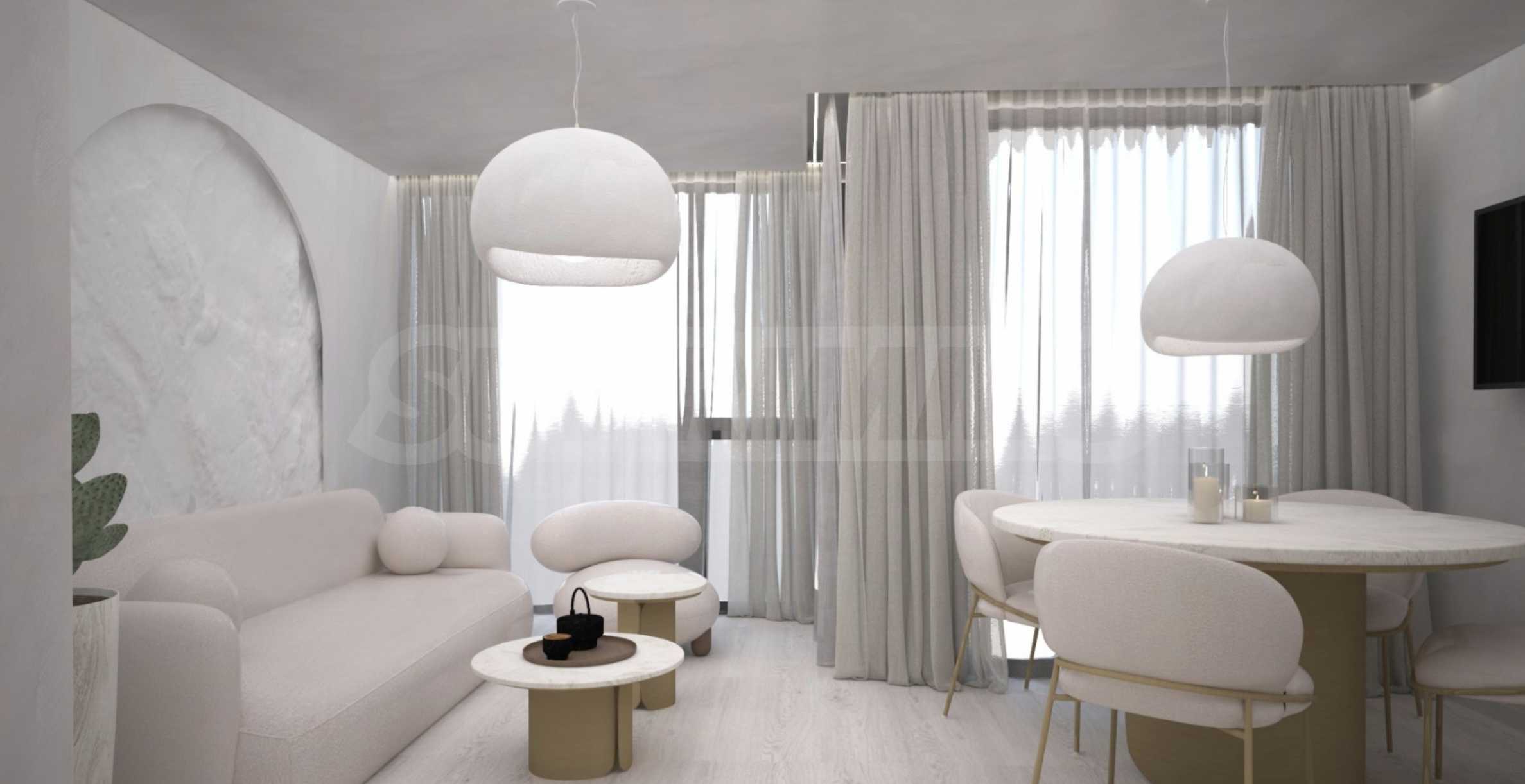 The facade, lobby and properties are selected in white, the investor has opted for light colors and ethereal fabrics - a synergy of clean lines and natural materials, combined with a touch of luxury and comfort. White is the color of sincerity, ideal, imagination and dreams, a symbol of truth. An opportunity to be part of a project that will ignite your imagination and make your dreams come true, giving a feeling of peace and comfort!