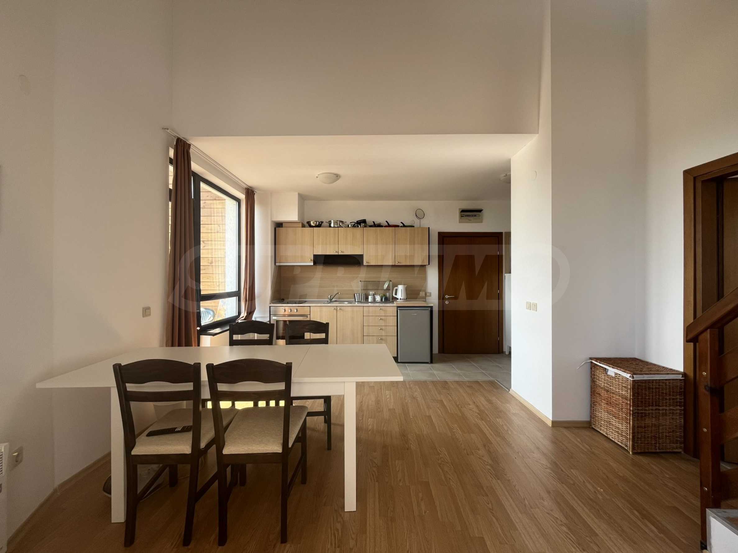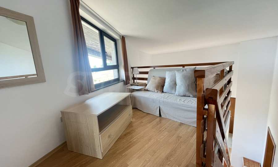 We present a spacious and fully furnished duplex penthouse in the gated complex Aspen Valley, located between Razlog and Bansko, just a 10-minute drive from the ski lift.