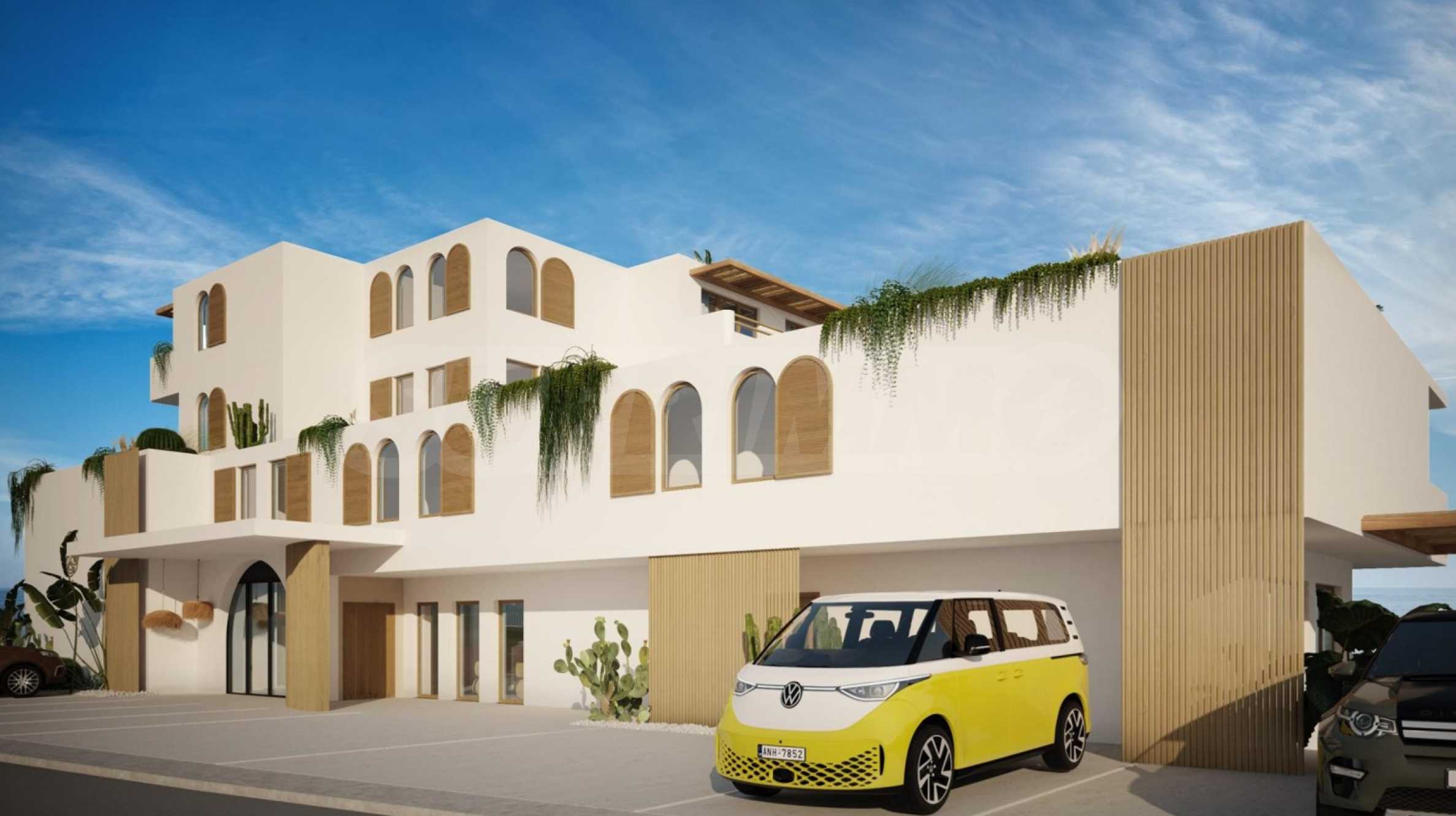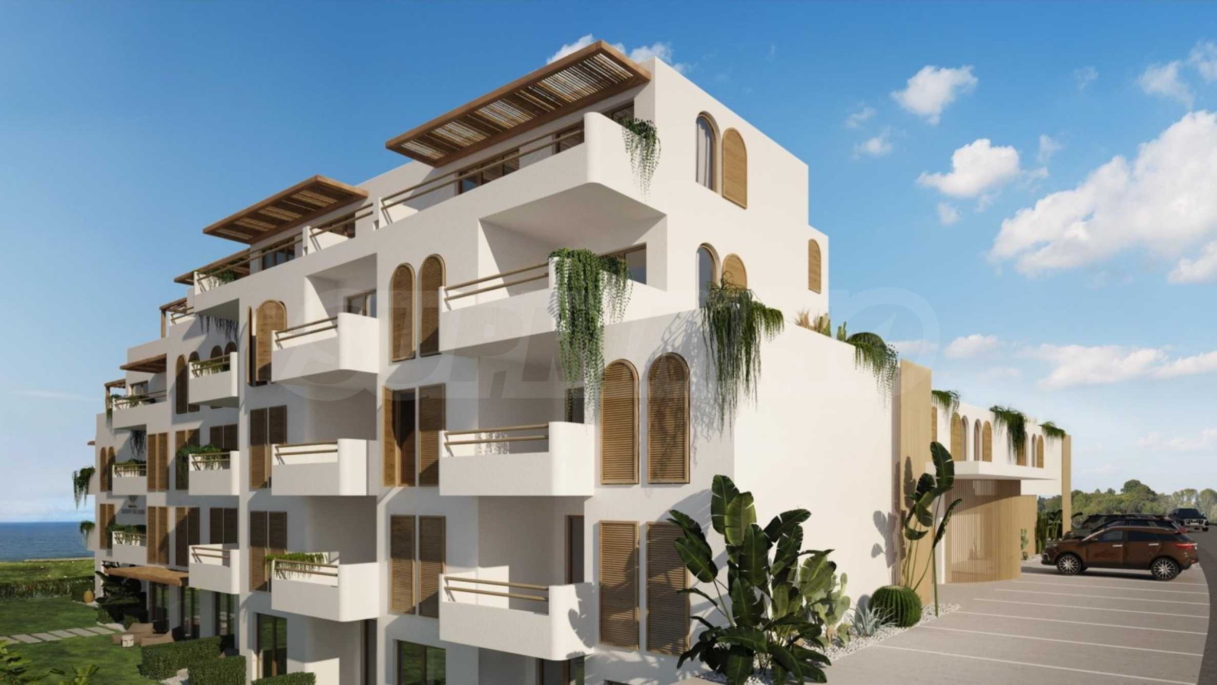 The complex is designed to combine luxury and bohemian ease, radiating elegance, warmth and a sense of freedom. It has 35 one-, two- and three-bedroom apartments, with an area of 66 to 160 sq m. Each property has a functional layout and offers space, light, comfort and a captivating view of the sea and the island of "St. Ivan".