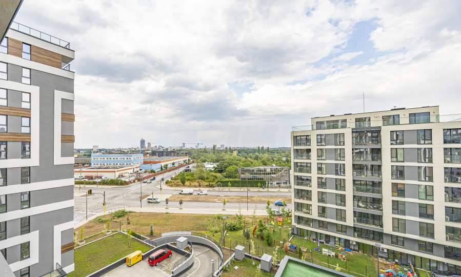 The building is designed with care for energy efficiency and environmental friendliness, with optimal energy characteristics that allow the use of less energy and its optimization in the best possible way. On the roof are located photovoltaic power plants that will produce more than 110,000 kWh of clean energy per year, which fully covers the consumption of all energy consumers in the common areas of the building. It is planned to install solar parametric street and park lighting in the areas around the building, which will not draw energy from the grid.
