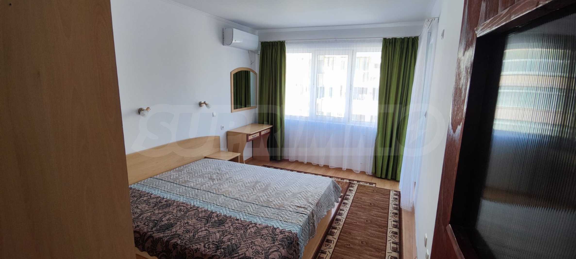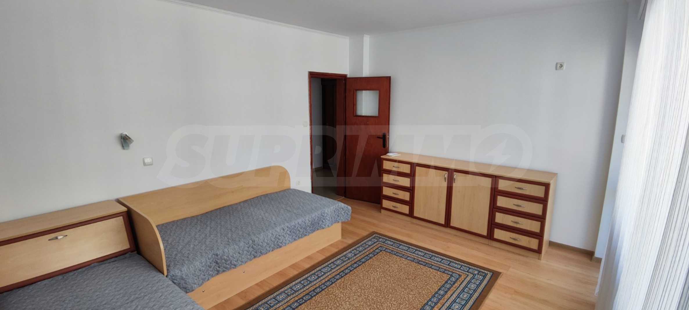 We present a furnished two-bedroom apartment for rent, in a residential building in the "Lazur" district, within walking distance of the beach and the center of Burgas.