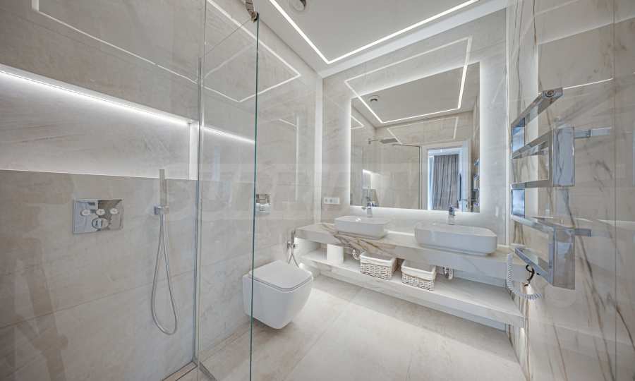 The 101 sq m apartment is located on the 2nd floor, with panoramic views of the city and Vitosha Mountain. The property is bright, offers a modern design vision and an interior with clean lines. The large windows contribute to spaciousness and abundance of light, and the quality materials and refined furniture - to coziness and elegance.