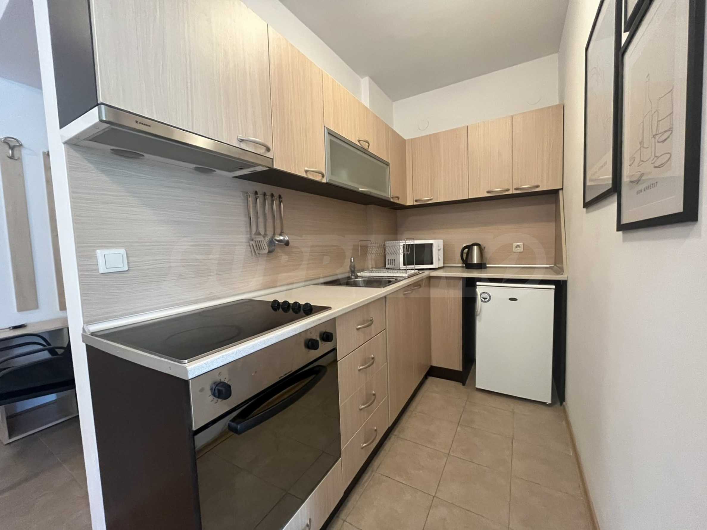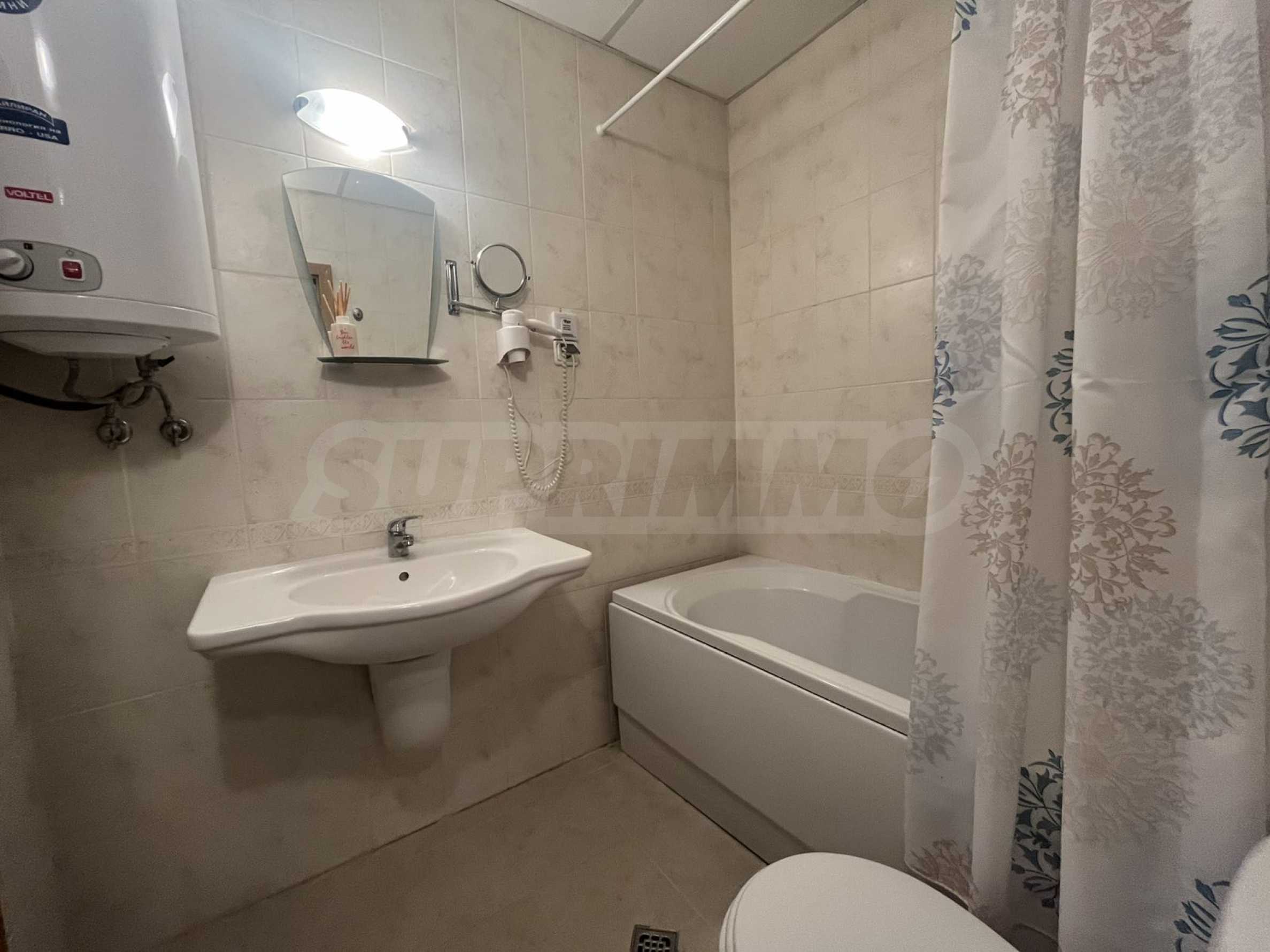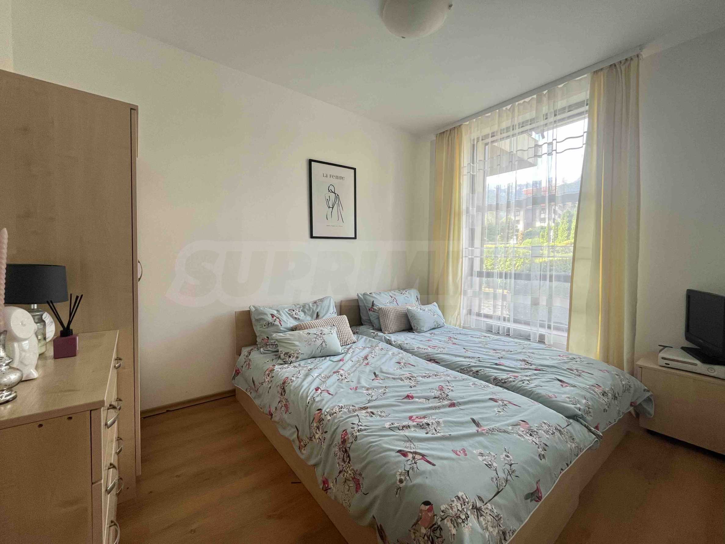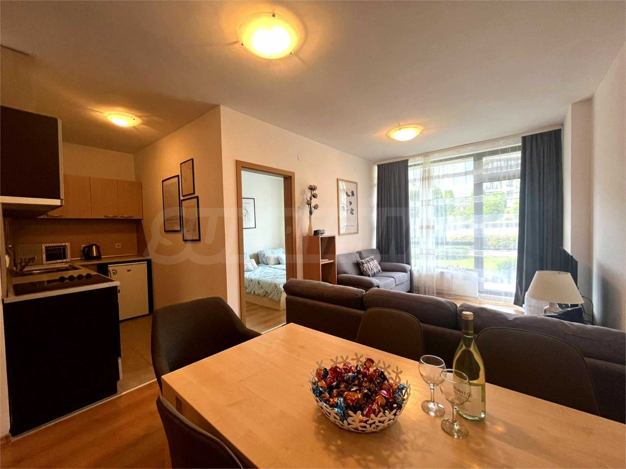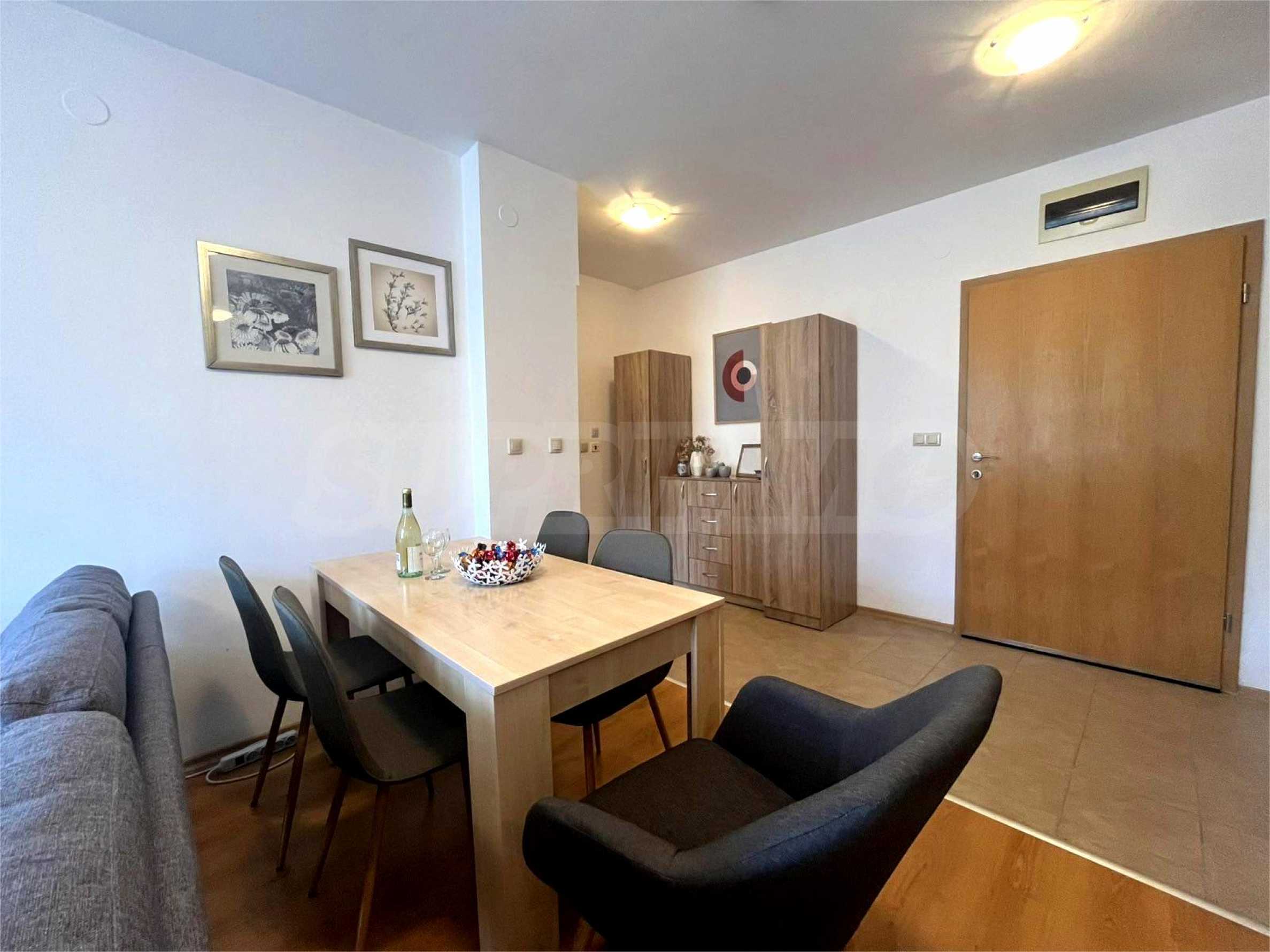 We present a fully furnished two-bedroom apartment for sale in the Aspen Golf Resort complex. The complex is located in the Pirin Golf and Country Club area.