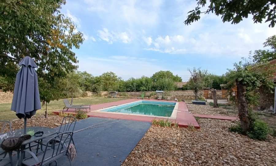 In the yard there is a new and fully equipped swimming pool, fruit trees, a well and a large shed, suitable for creating additional rooms or service areas. The property also has a large garage.
