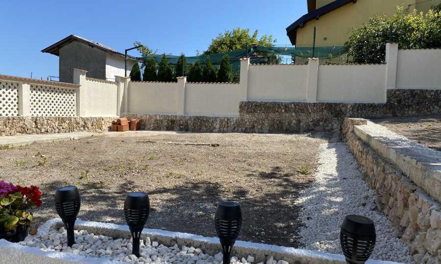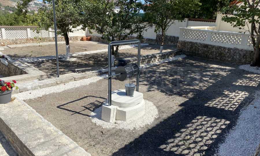 The house with a total area of 168 sq.m has a terraced yard with an area of 500 sq.m, parking spaces, a well and a basement of 50 sq.m.