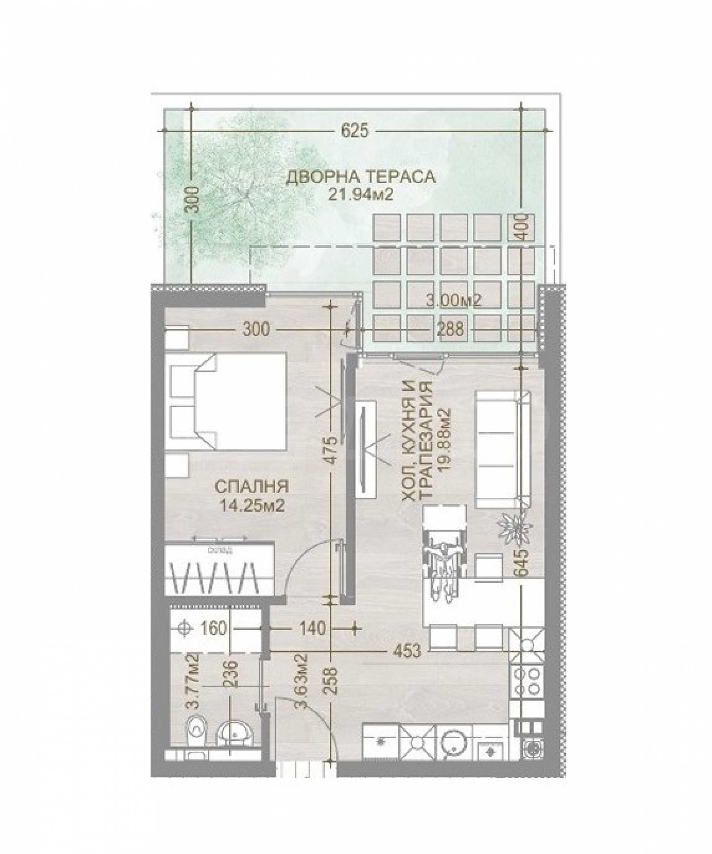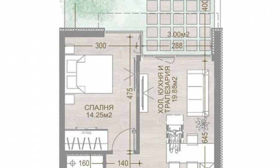 We present a one-bedroom apartment in a new gated residential complex with richly landscaped areas in the "Manastirski Livadi - Iztok" quarter. The location is in the southern and sunniest part of the neighborhood, near a future river park. The complex has been designed with attention and care, ready to provide its residents with a peaceful living environment in a quiet and green environment.