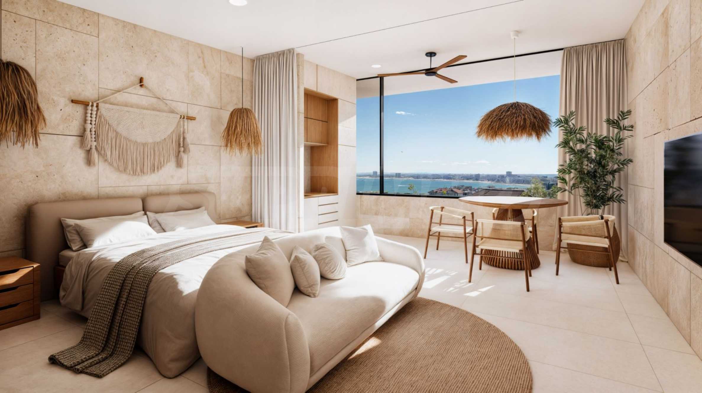 We present for sale a one-bedroom apartment in a new complex with an elegant vision between Sunny Beach and Sveti Vlas, which will be located on a hill with the best southwest orientation, with breathtaking sunsets and panoramic views of the entire bay.