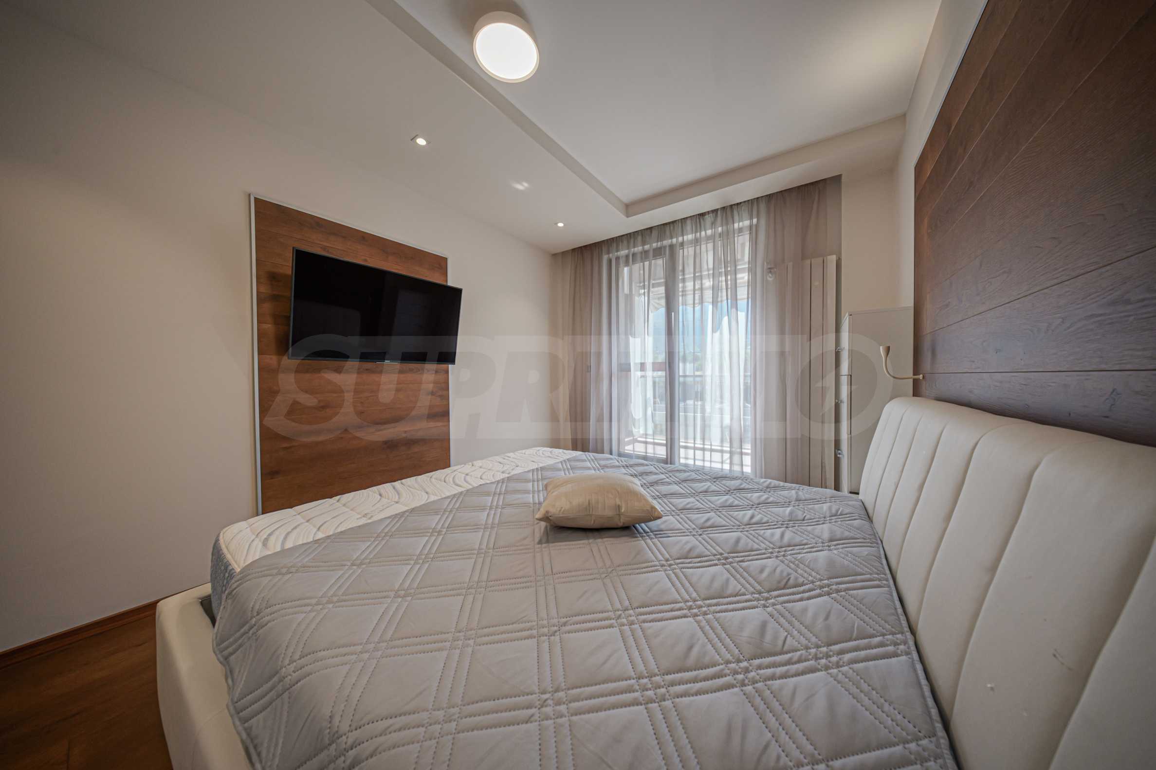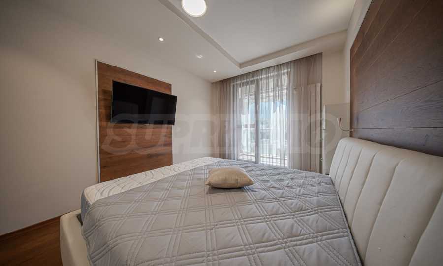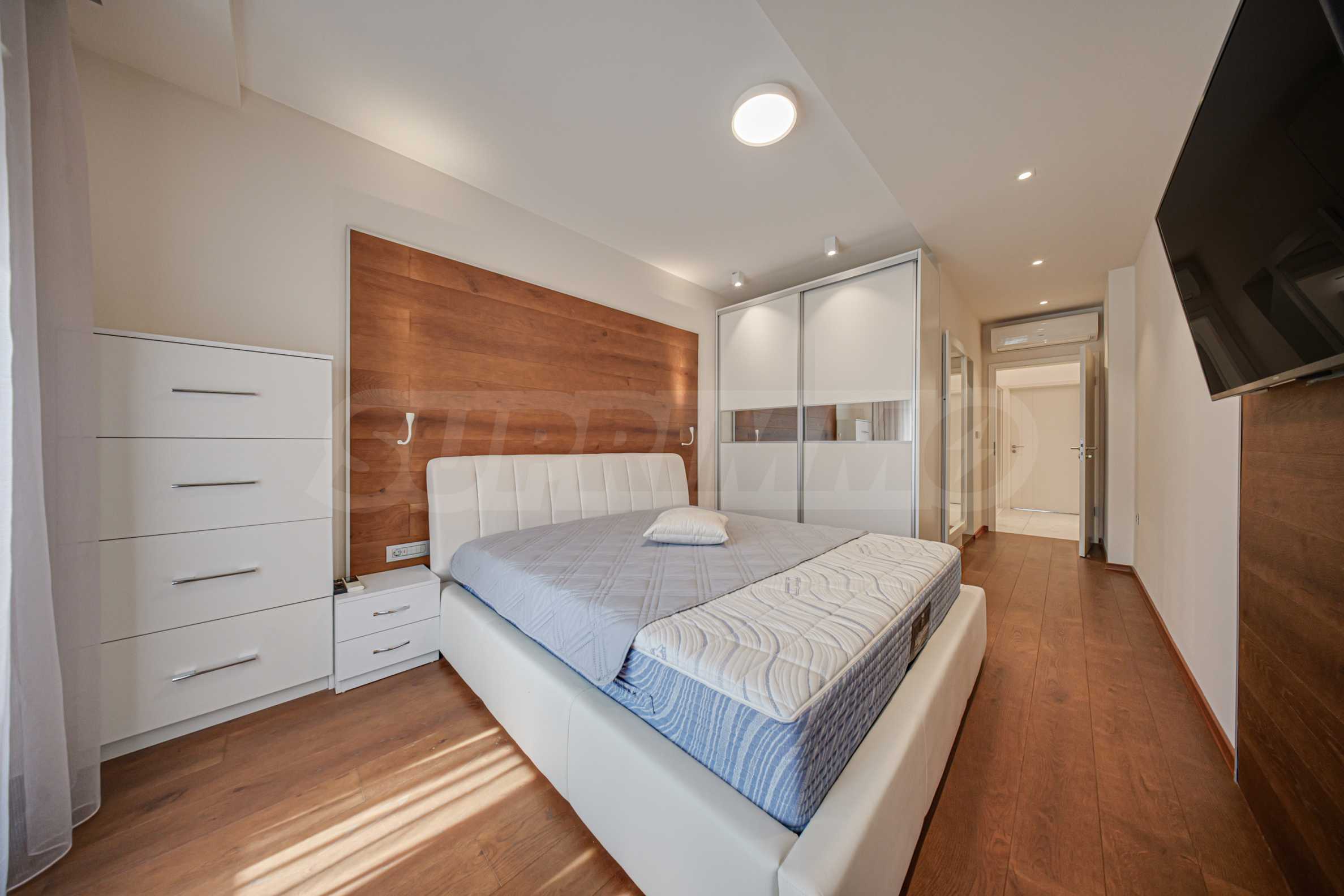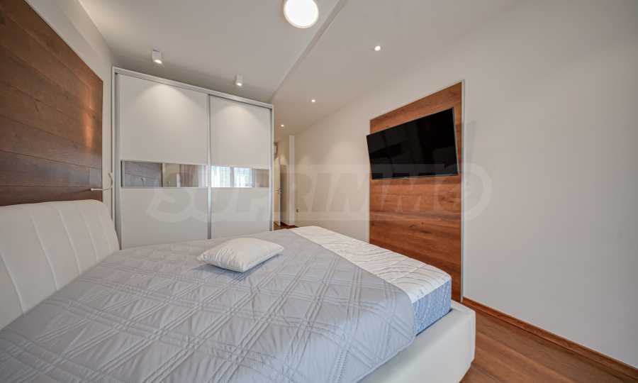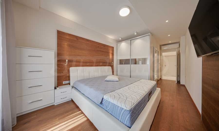 • master bedroom with a 180x200 cm bed with a Magniflex Comfort Dual mattress, hydraulic mechanism and under-mattress space, custom-made wardrobe and chest of drawers with Blum mechanisms, Sony 49" TV, adjoining bathroom with built-in shower with massage jets, handset and intimate shower, glass door, sink with cabinet made of high-quality PVC;