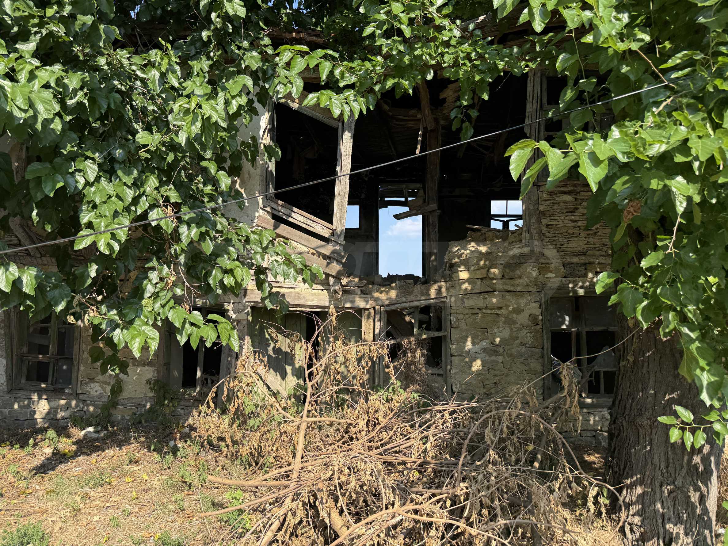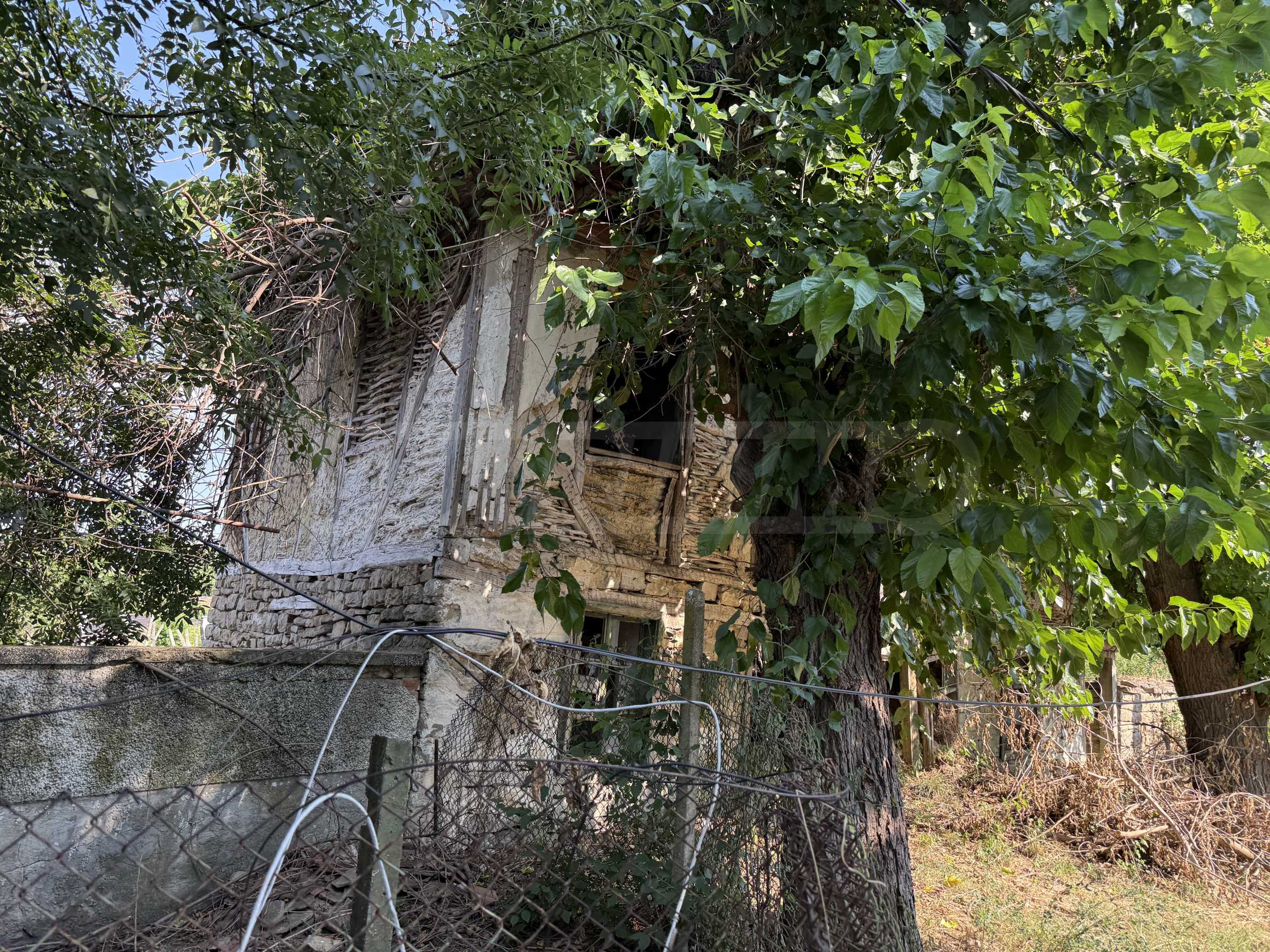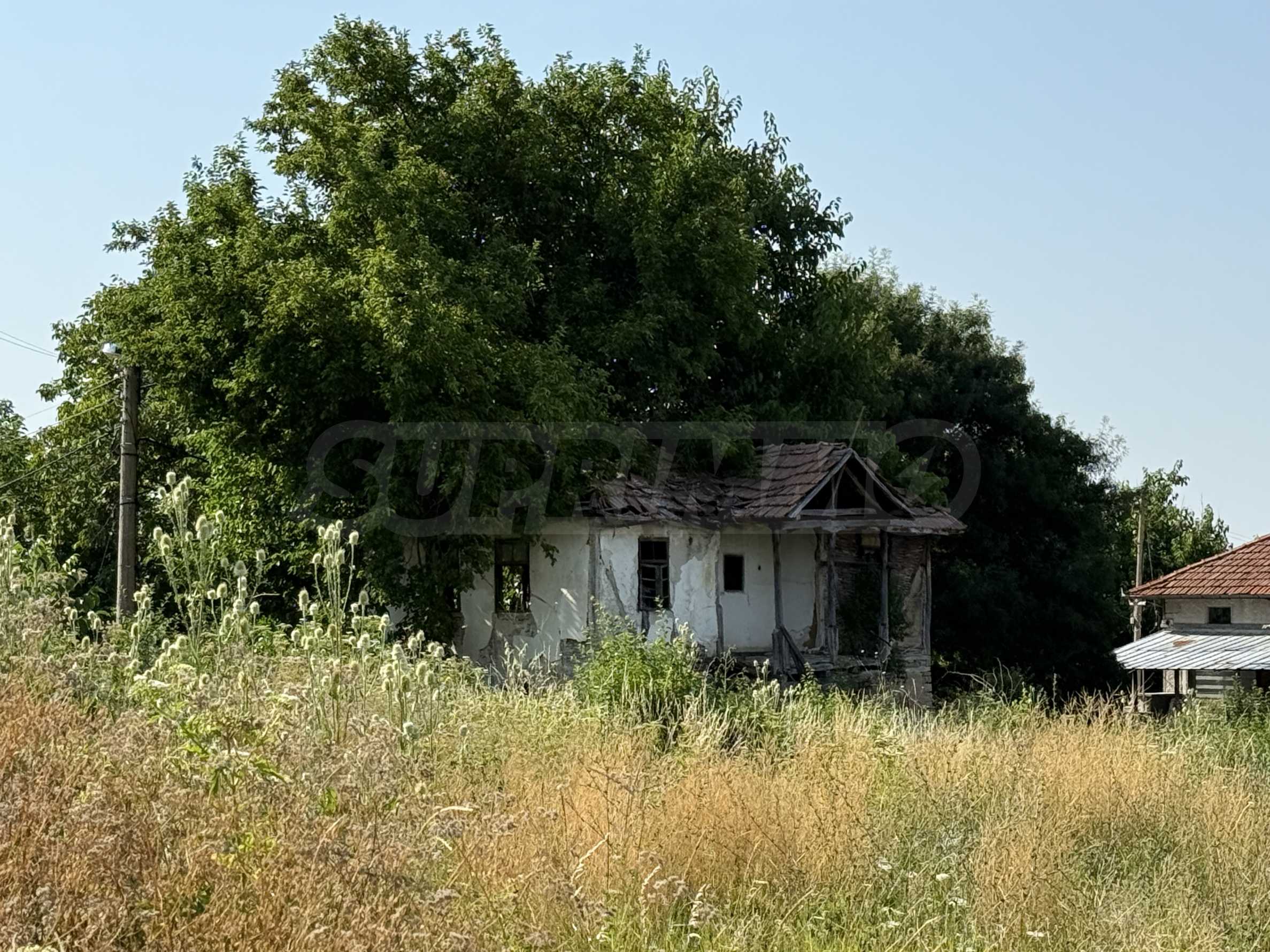 The property has an old, half-demolished house that can be restored or removed for new construction. Electricity and water are available, which facilitates future investments.