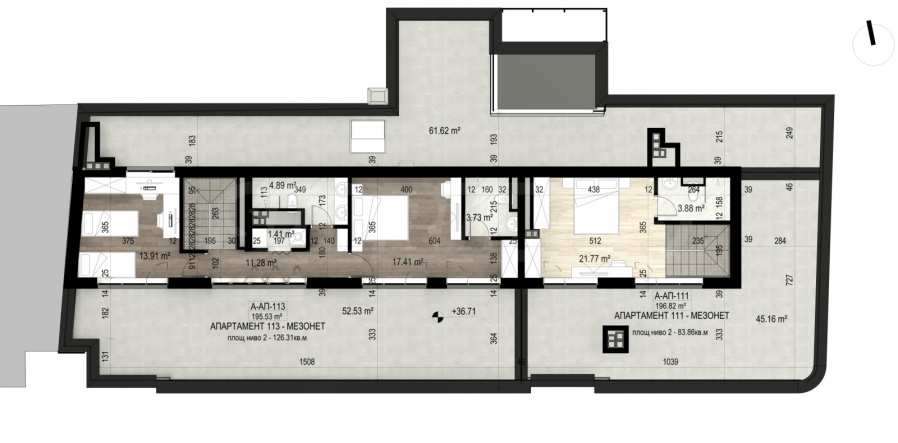 • Second level – 126.31 m2 (of which 52.53 m2 - terrace with views of Sofia and the mountain);