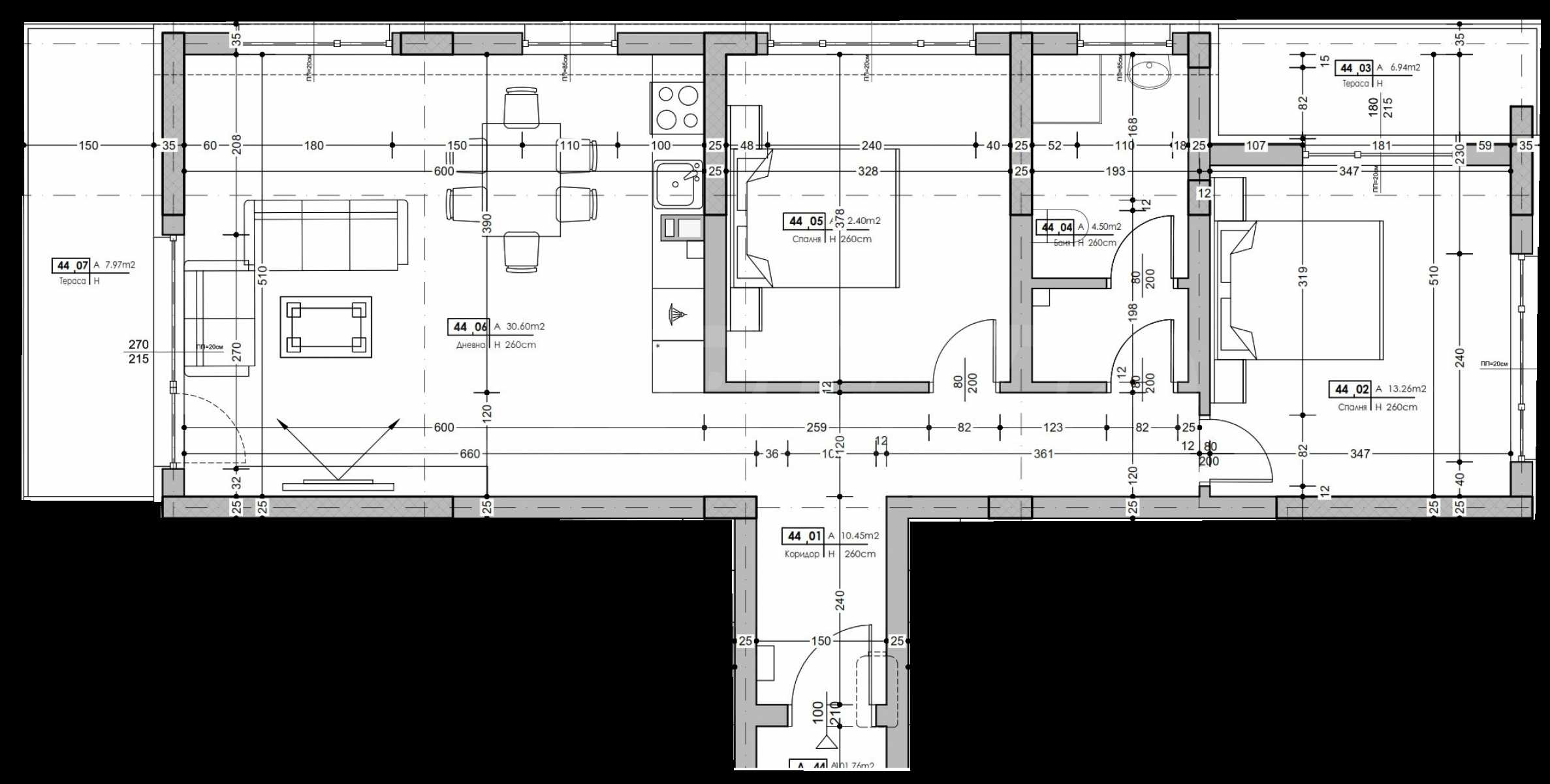 The apartments are handed over in a degree of completion according to the Bulgarian Civil Code:
