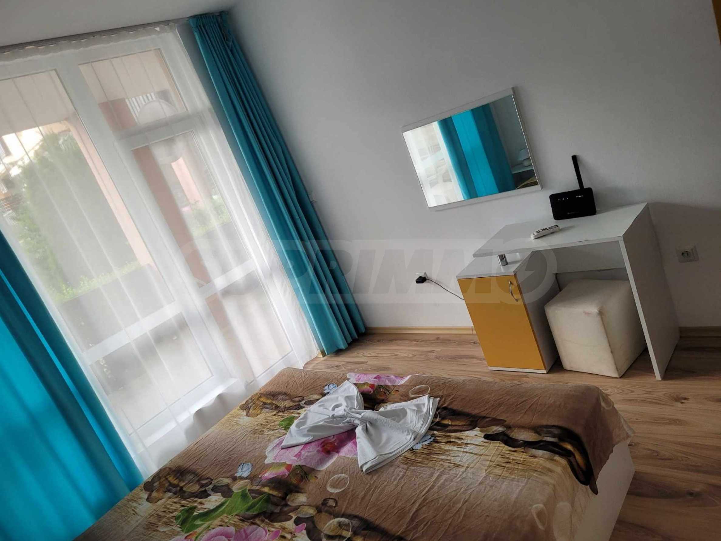 It is located only 7 km from the beautiful museum town of Nessebar, 20 km from the international airport in Burgas, 25 km from the city itself and 10 km from the large resort of Sunny Beach.
