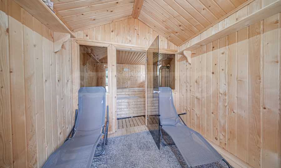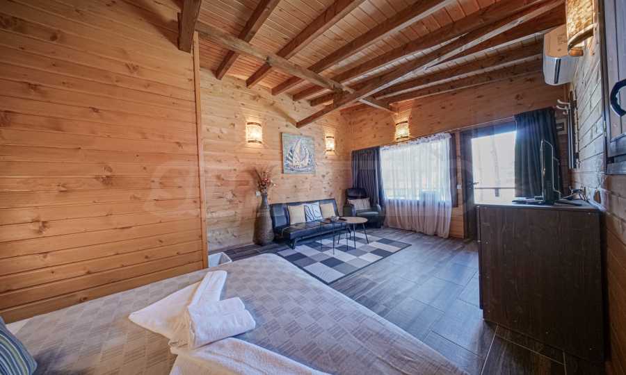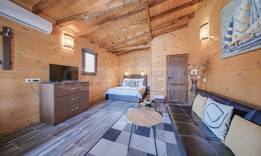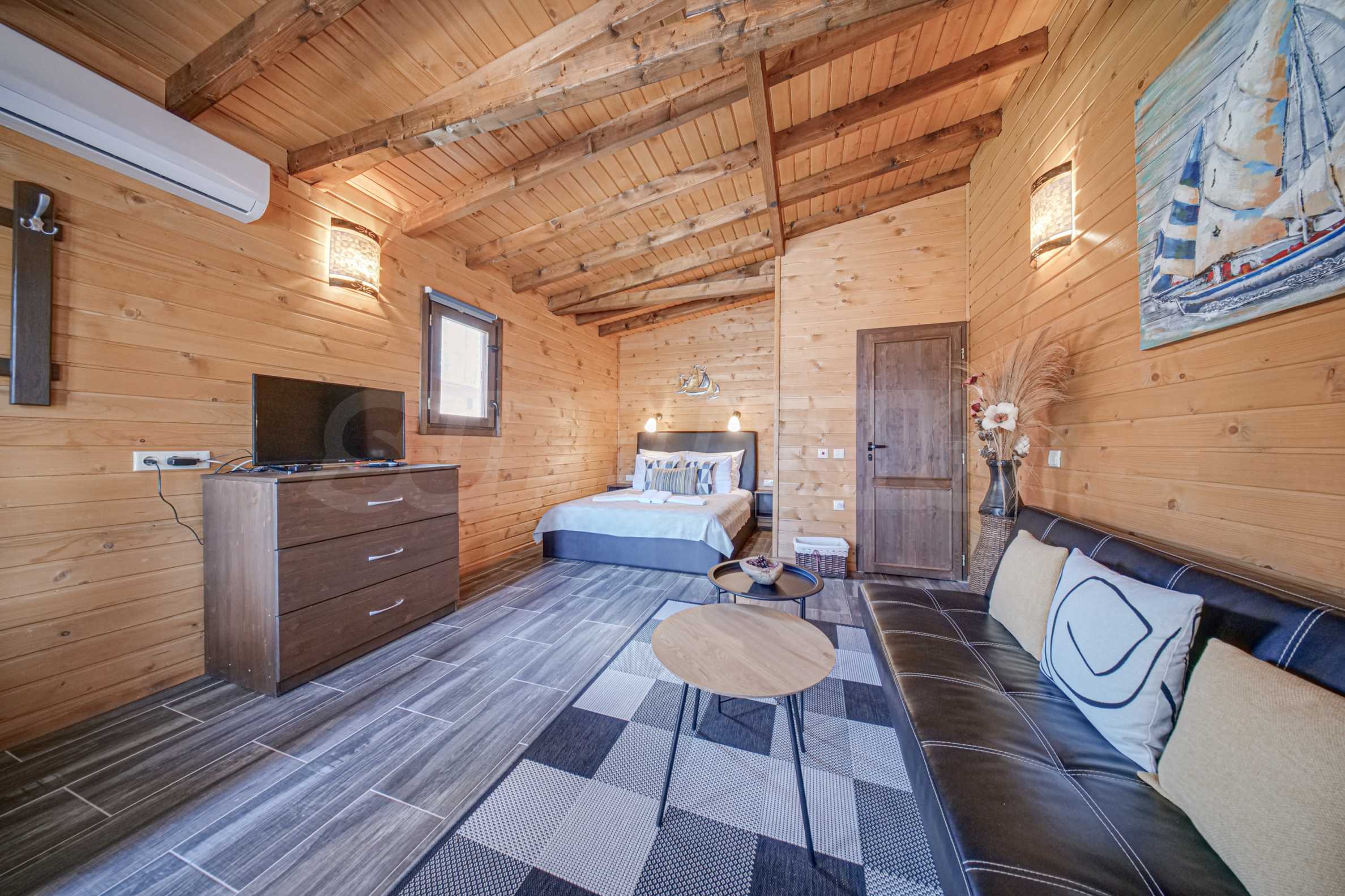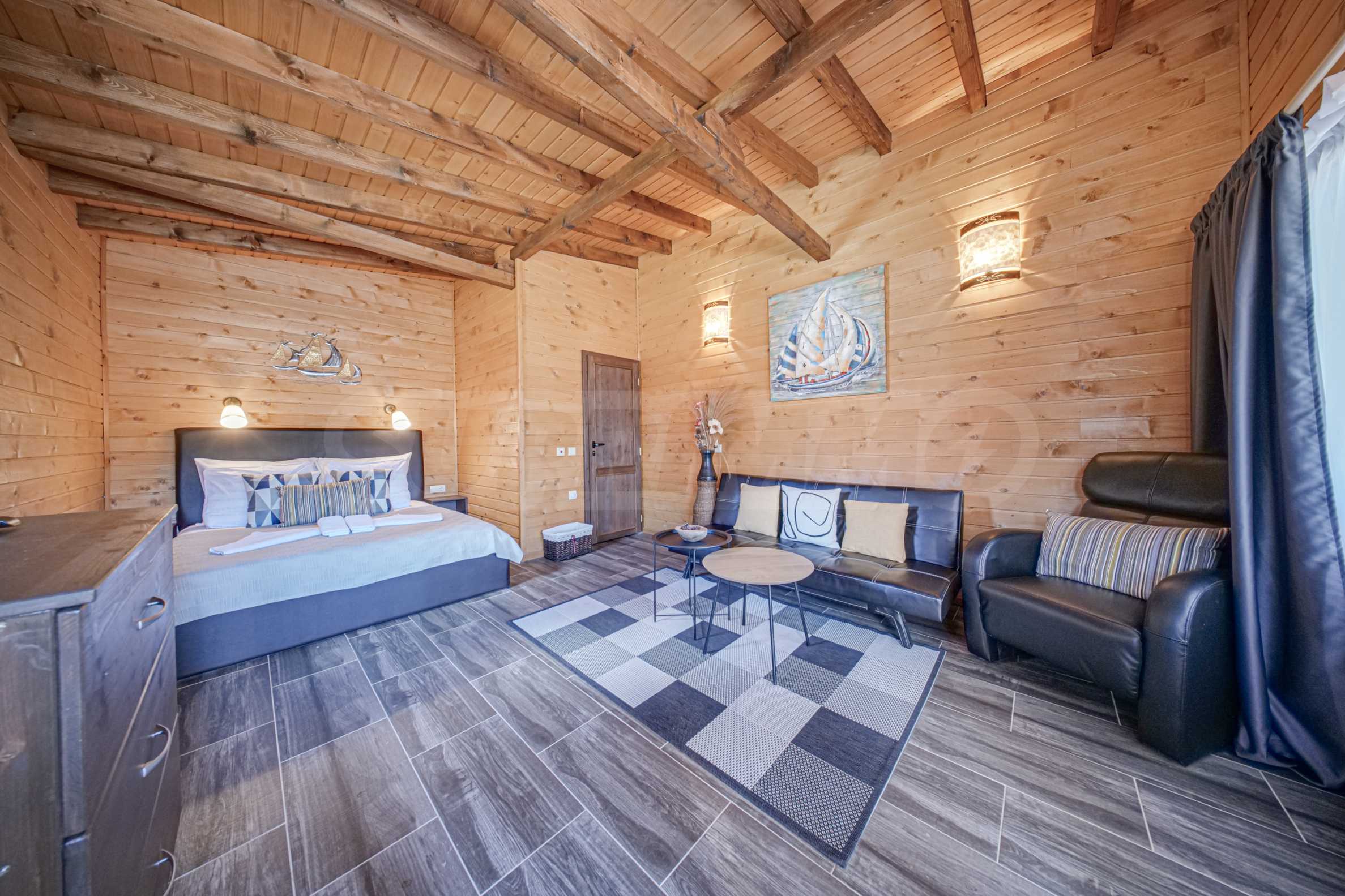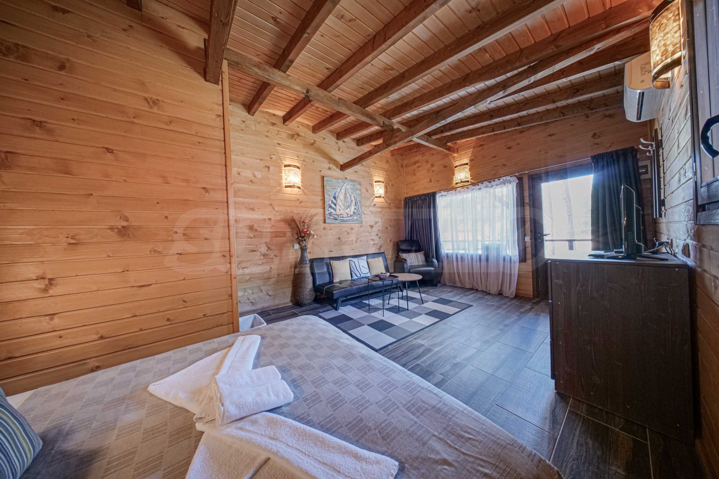 • Three separate wooden houses – each with two double rooms, a private bathroom and a cozy living room;