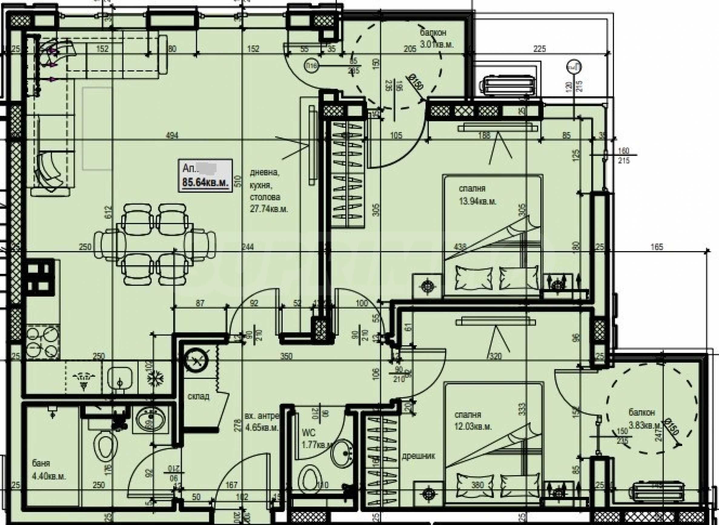 The properties are of the type of two-bedroom, three-bedroom and apartments with a veranda. They are sold in a degree of completion according to the Bulgarian Construction Code (on putty and screed). There is also an additional opportunity to take advantage of ready-made projects for the apartments and for the finishing work on the project from the Investor.