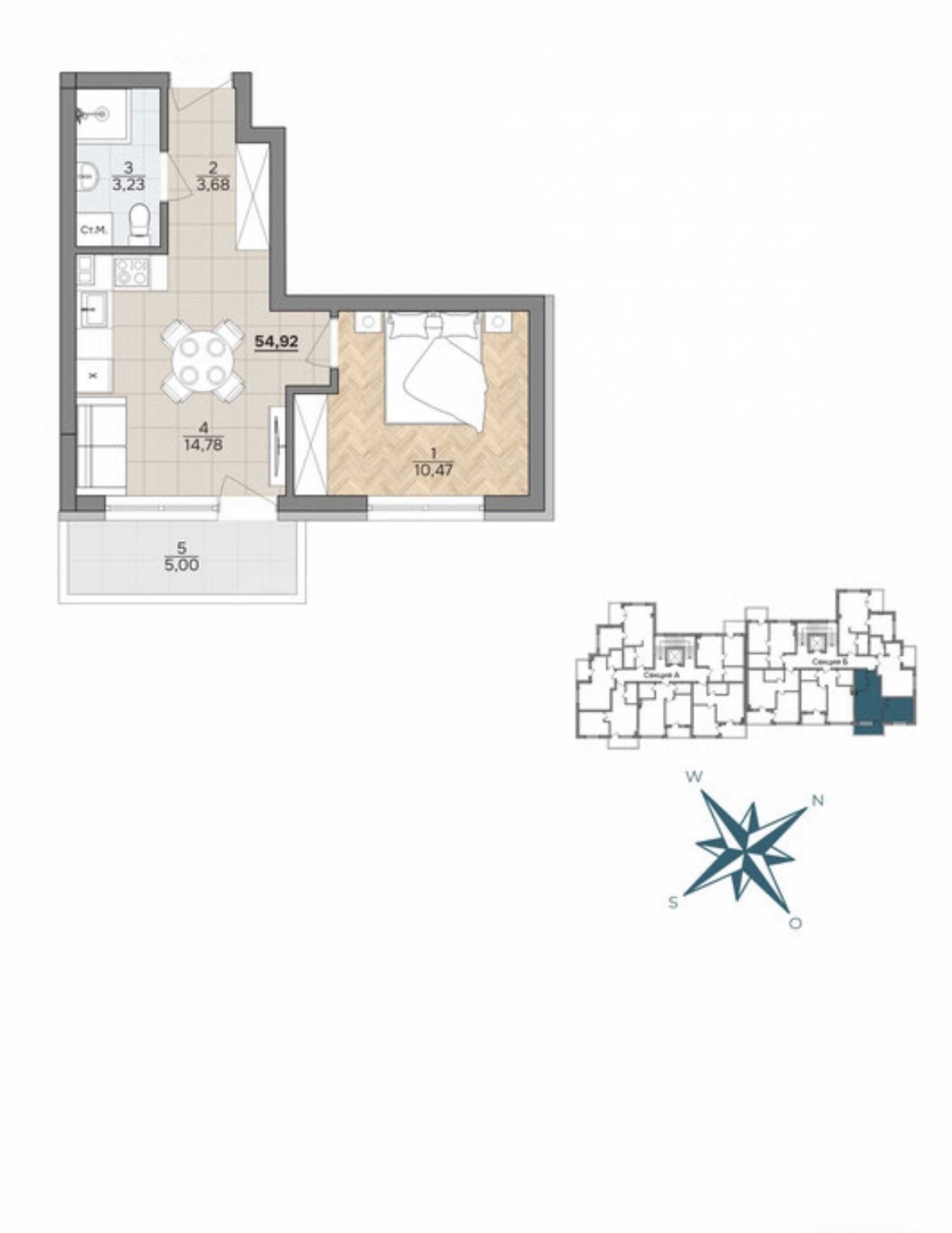 The apartment with a total area of 54 sq.m is located on the 3rd floor of 6.