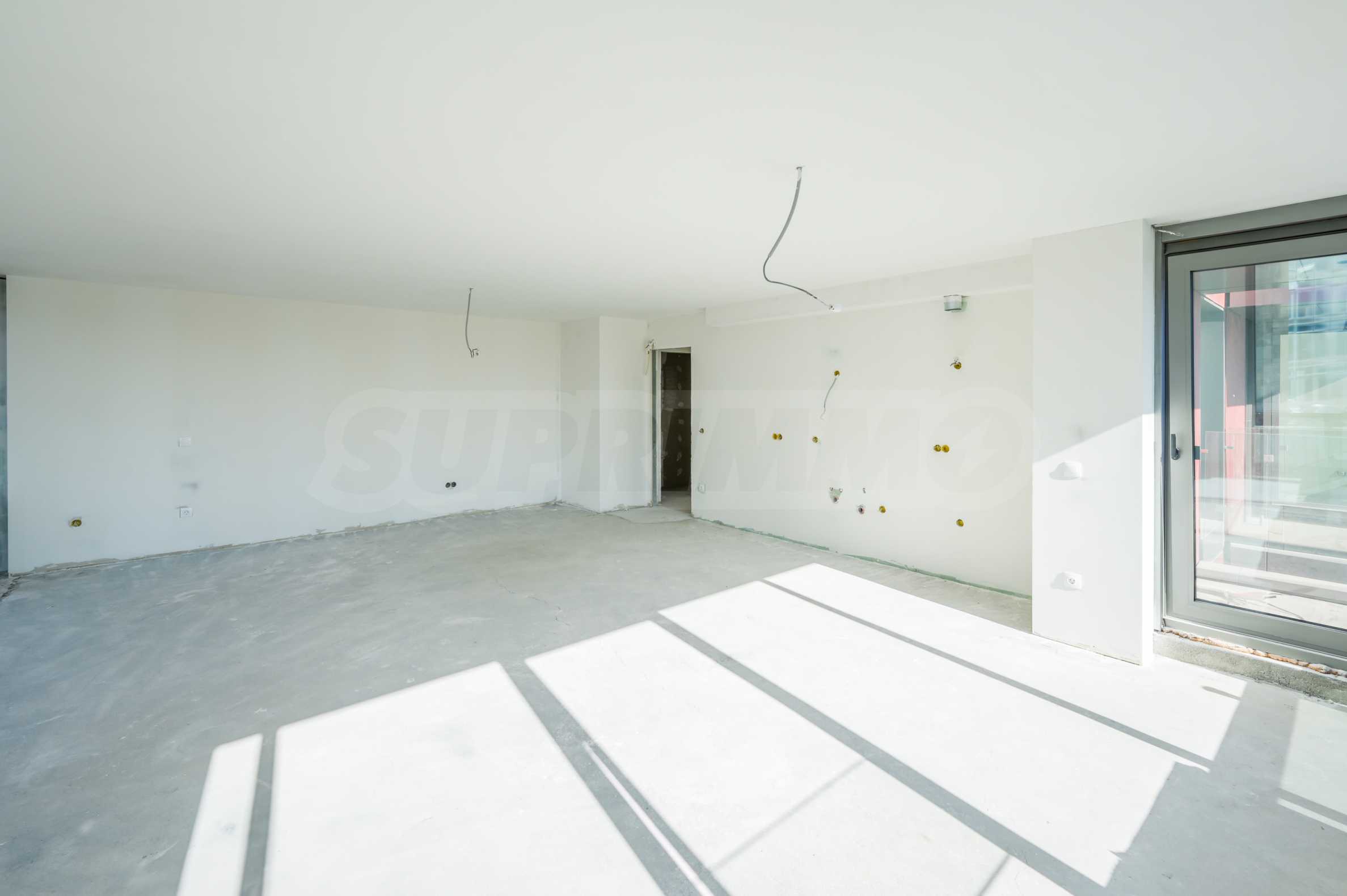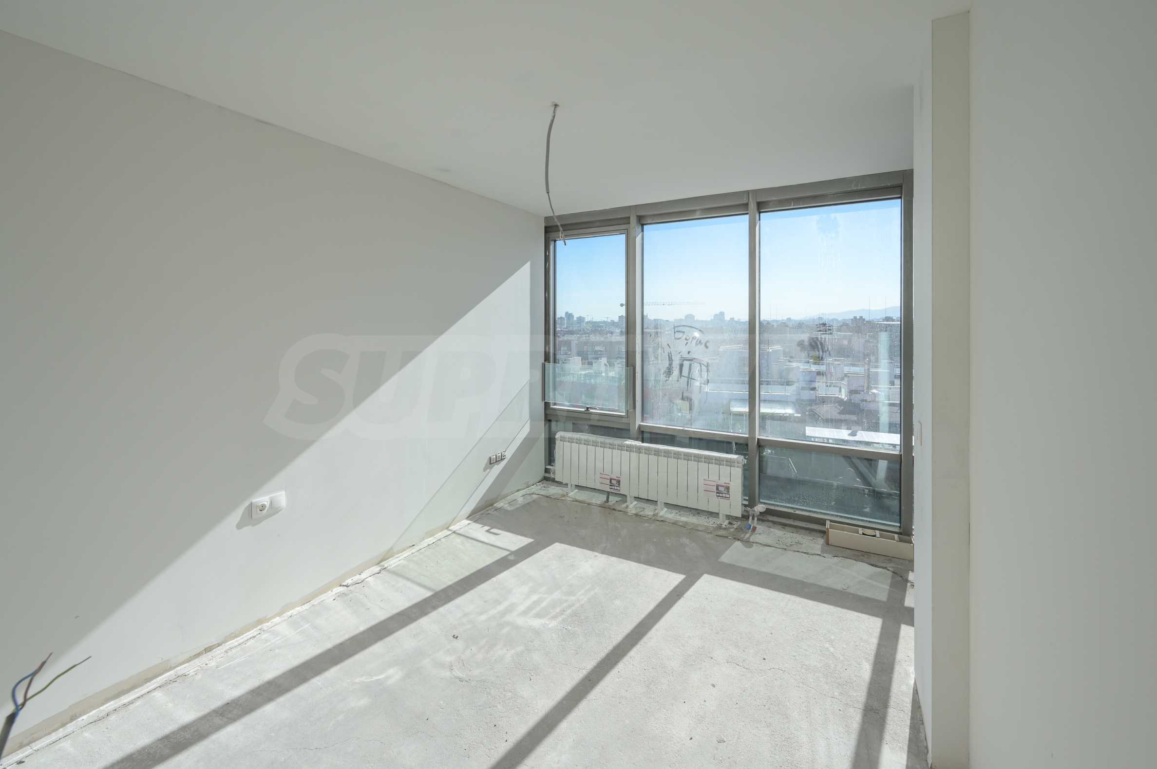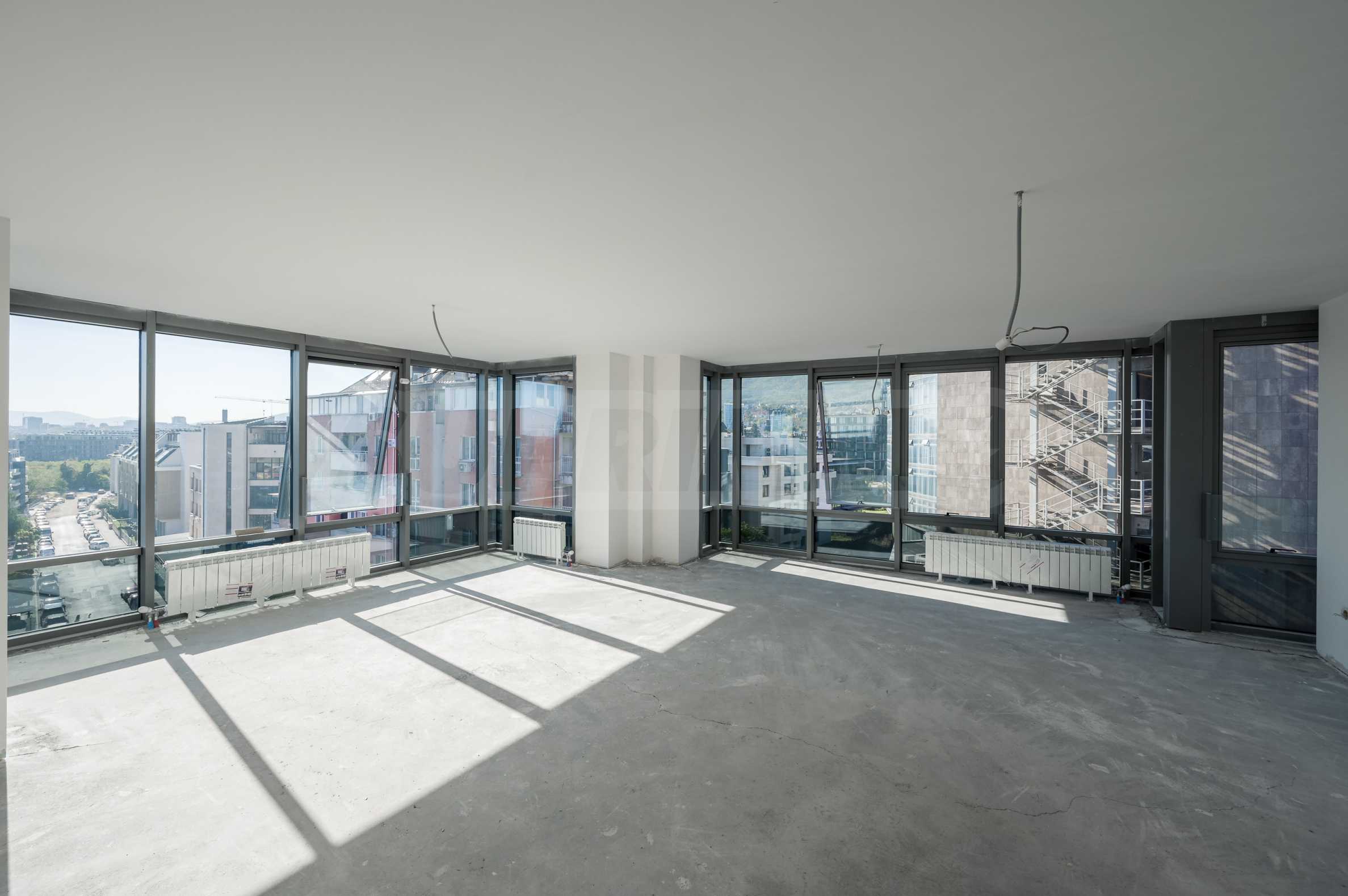The apartment with a total area of 190.69 m2., of which 159 m2. is a built-up area and is located on the 6th floor. It is sold with high-quality finishing according to the Bulgarian State Standards. It consists of three bedrooms, a study, a living room with a dining area and a kitchenette (40 m2), two bathrooms, a separate toilet, a laundry room and three terraces with views of Vitosha Mountain and the city. The heating is gas, with the possibility of installing air conditioners.