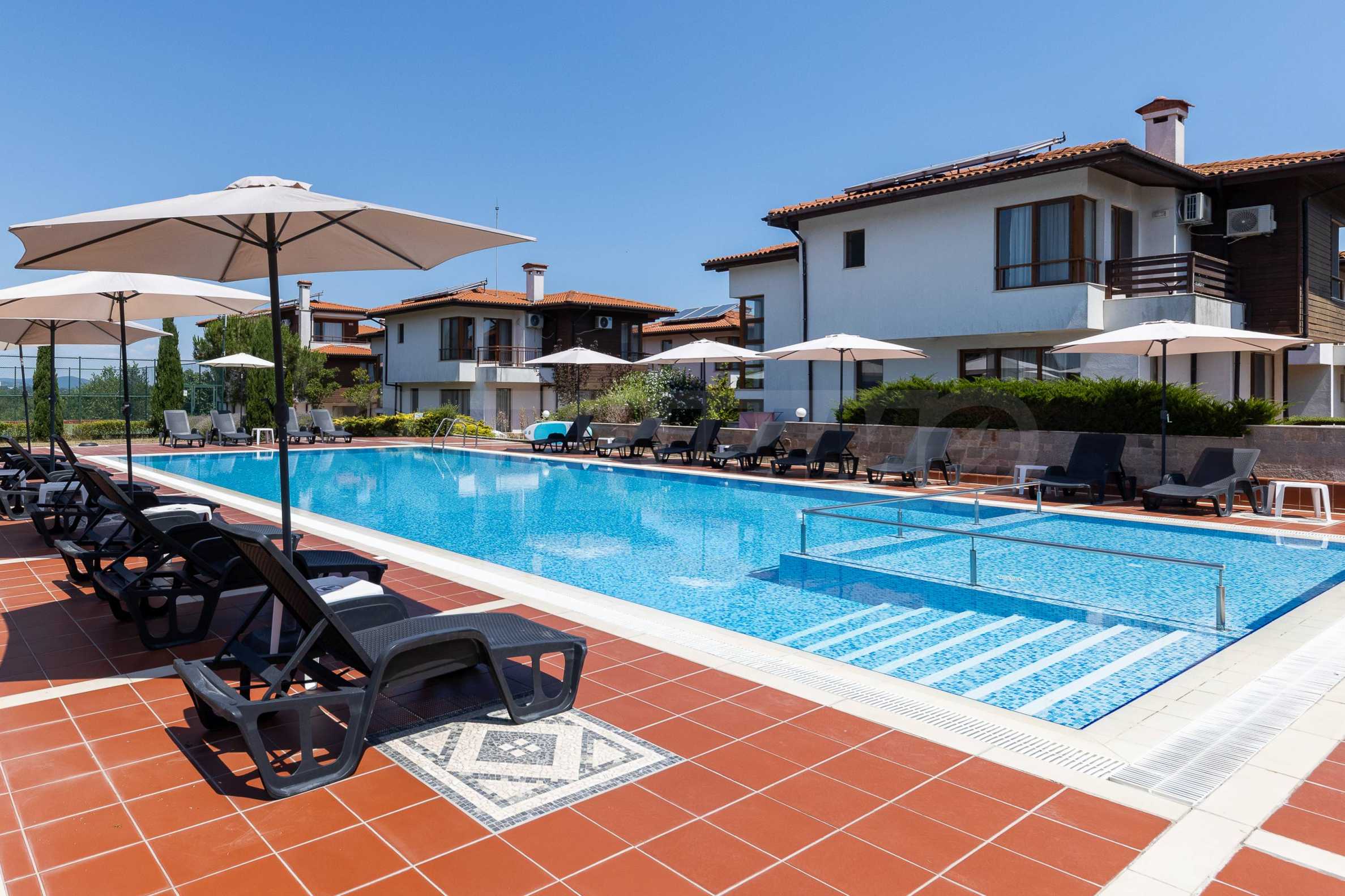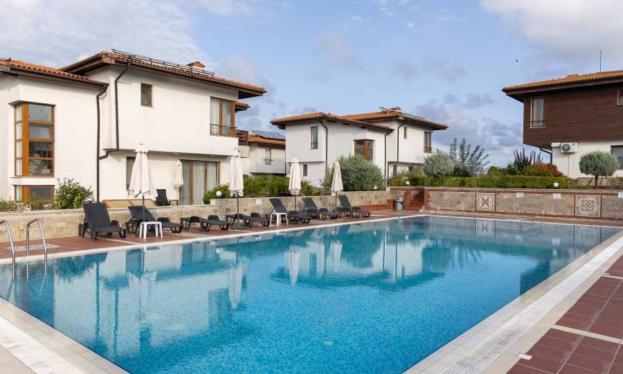 The complex consists of 13 villas, located on an area of 6670 m2, providing space, tranquility and a beautiful sea view. Located in close proximity to the most picturesque sandy beaches of our Southern Black Sea Coast - "Mechata Dupka" at 250 m, "Koral" at 300 m and the Central Beach at 500 m.